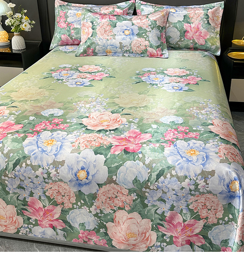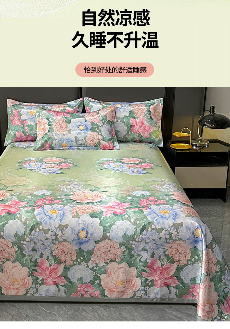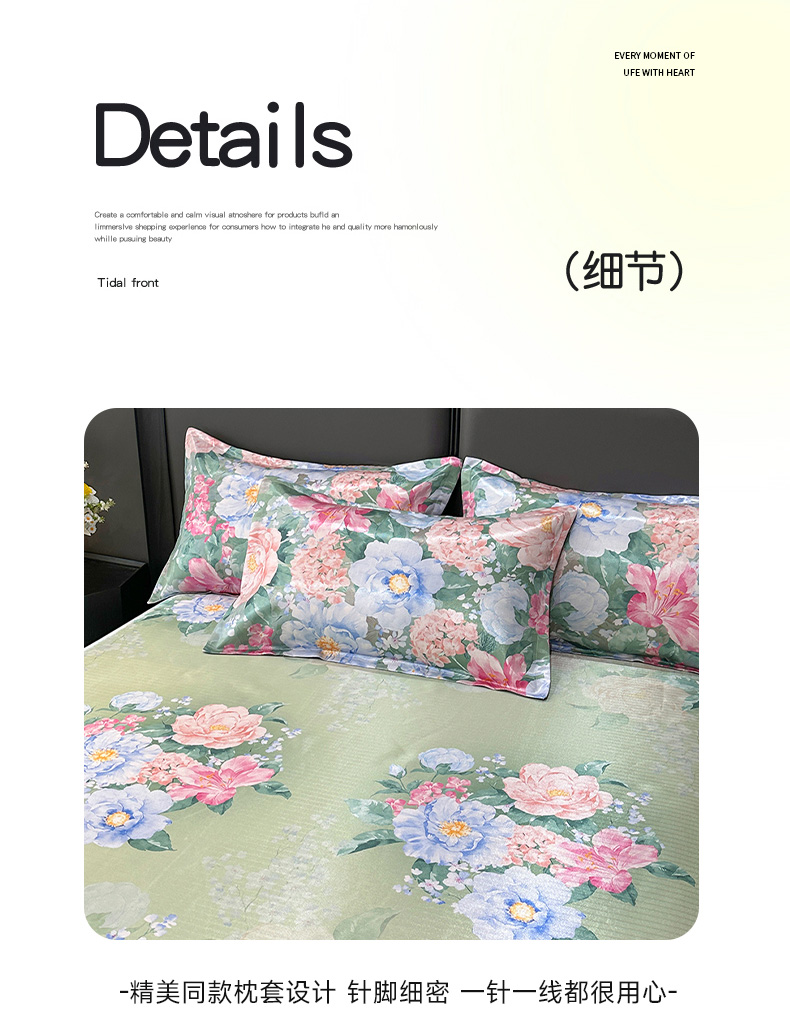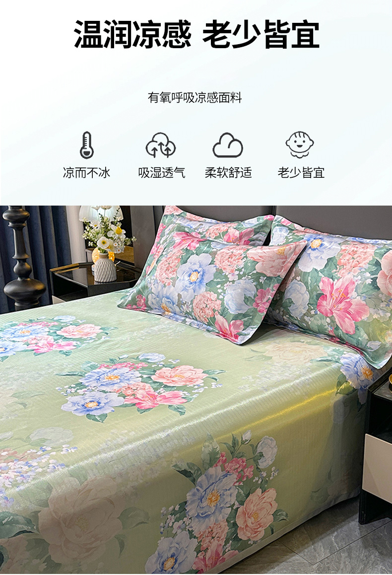 许林 2025新款冰丝凉席床单款凉席三件套-繁花,繁花