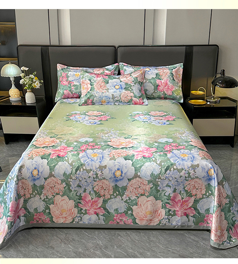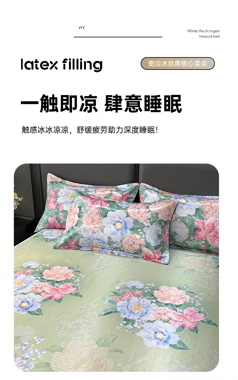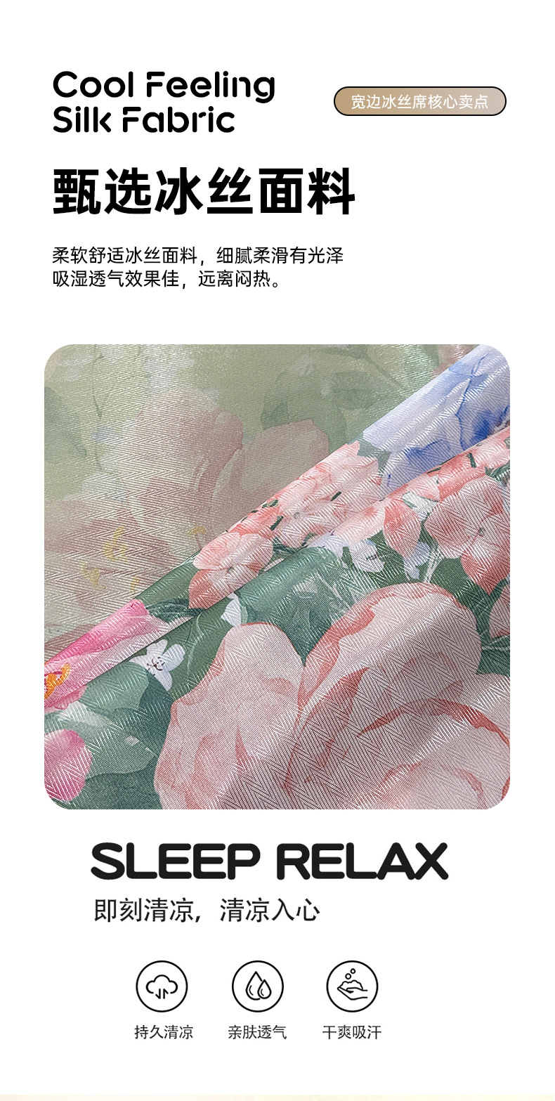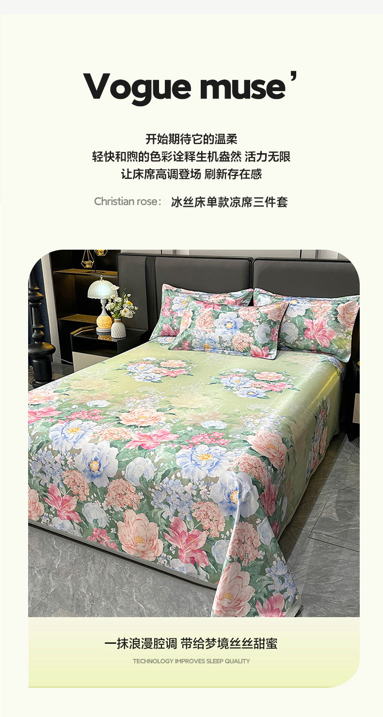 许林 2025新款冰丝凉席床单款凉席三件套-繁花,繁花