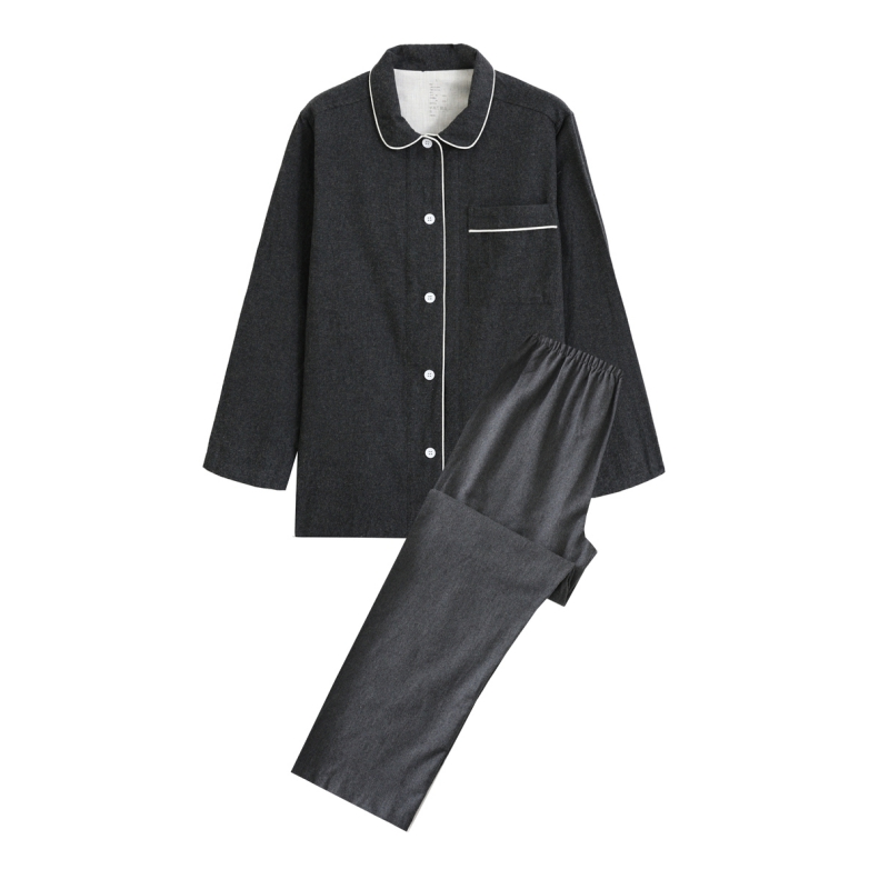 商品名称:伊嫚家居 2025新款无印日式双股全棉法兰绒家居服良品睡衣女纯棉直播秋冬款情侣睡衣 纯碳灰女
