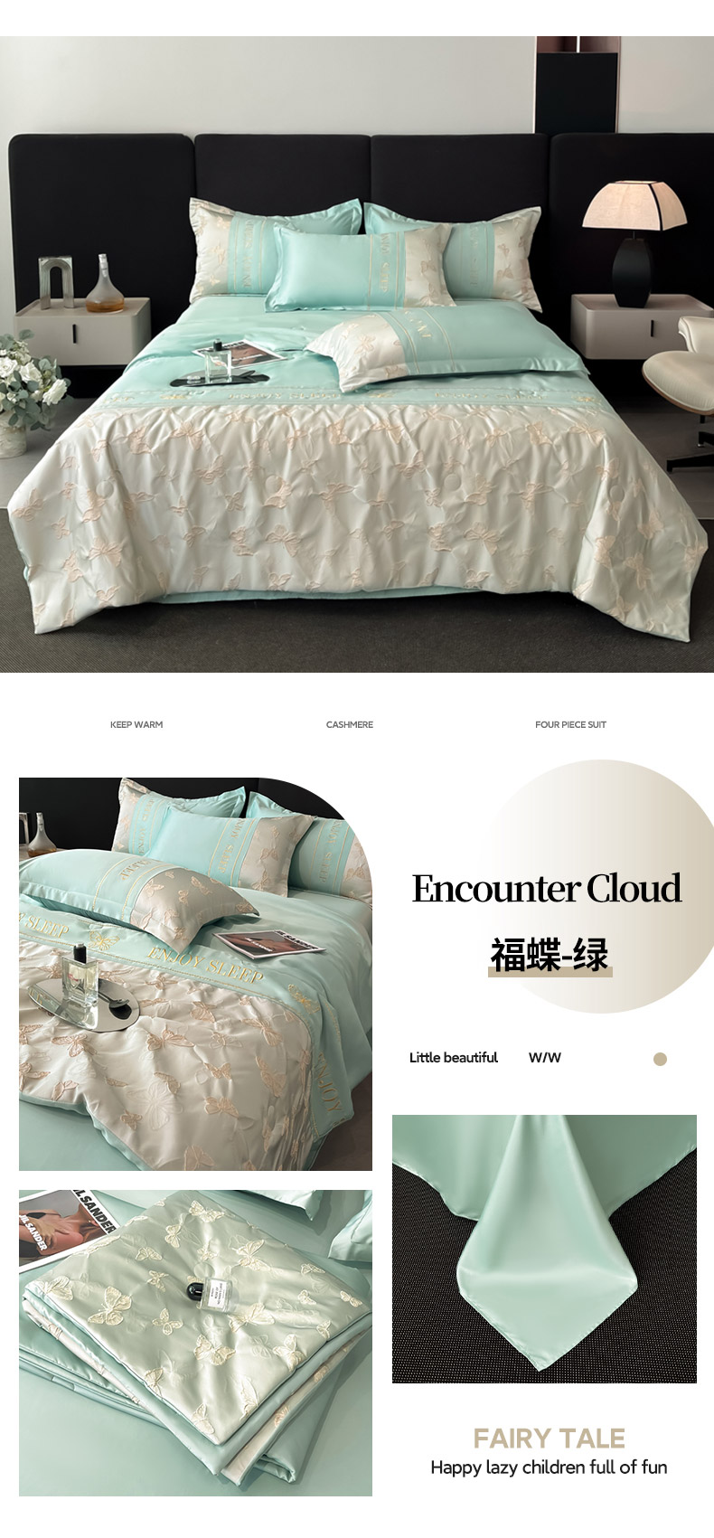 金阳光家纺 2025新款金丝提花浮雕水洗天丝夏被四件套 福蝶-绿