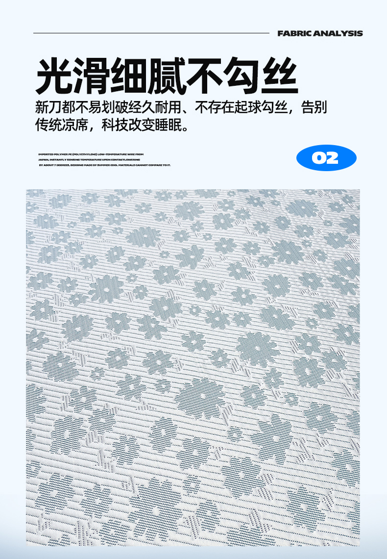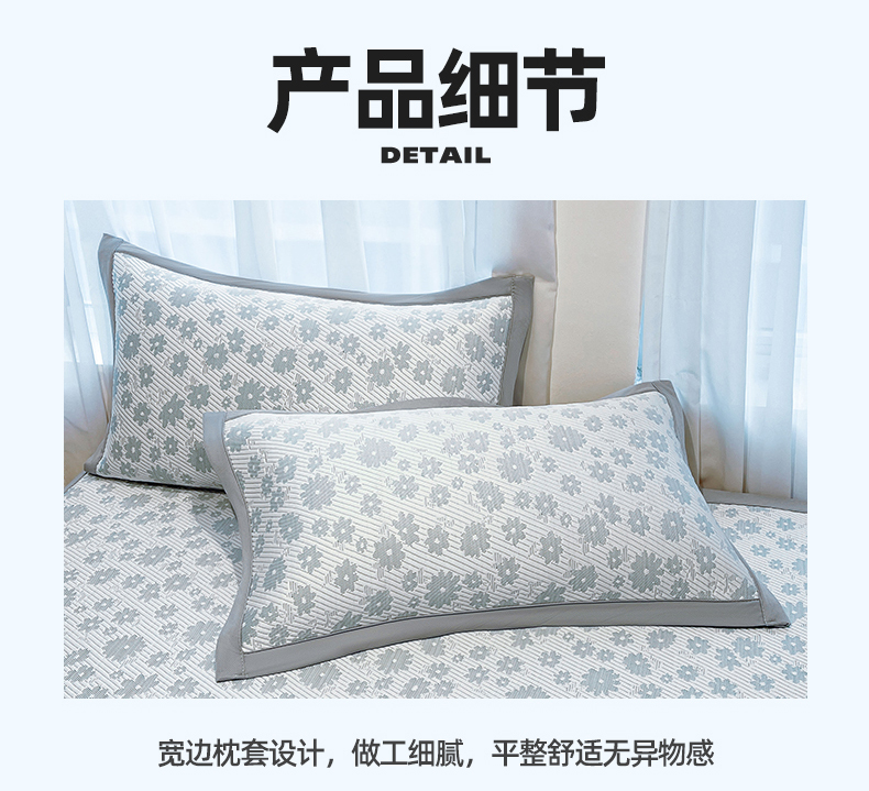 商品名称:雯豆家纺 2025夏季新款PE中分子凉感凉席三件套凉感提花平铺绑带席子 繁花-烟灰