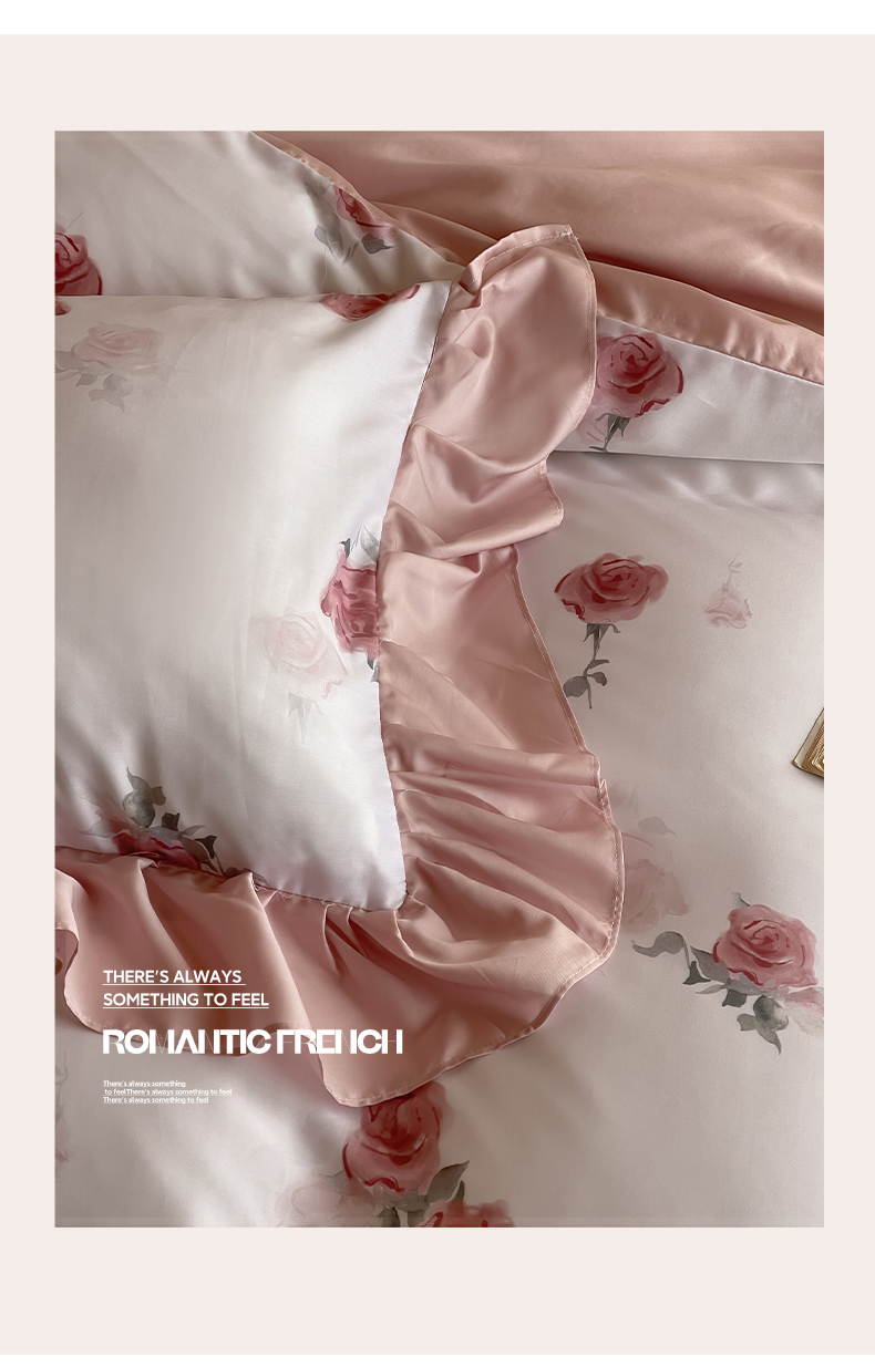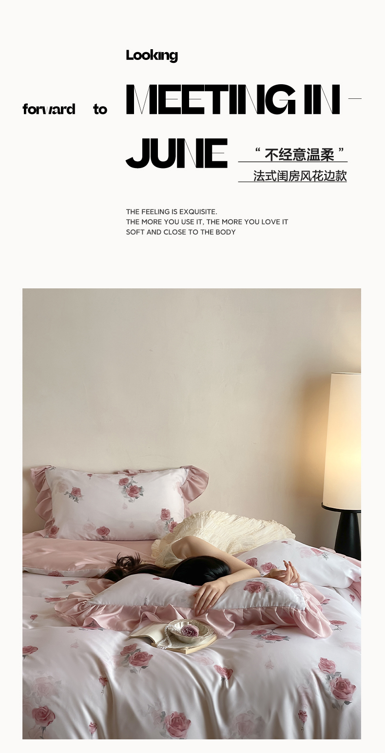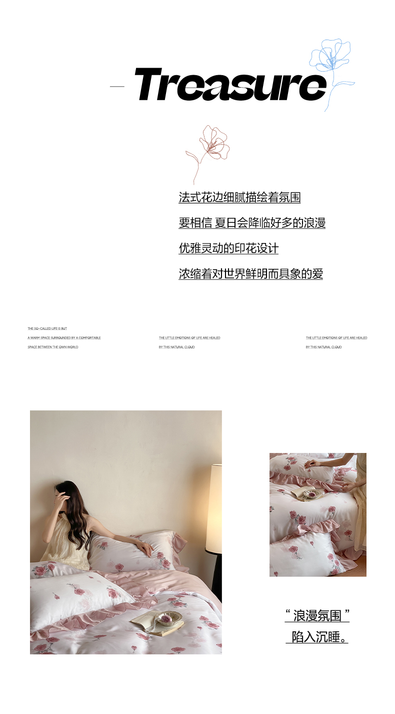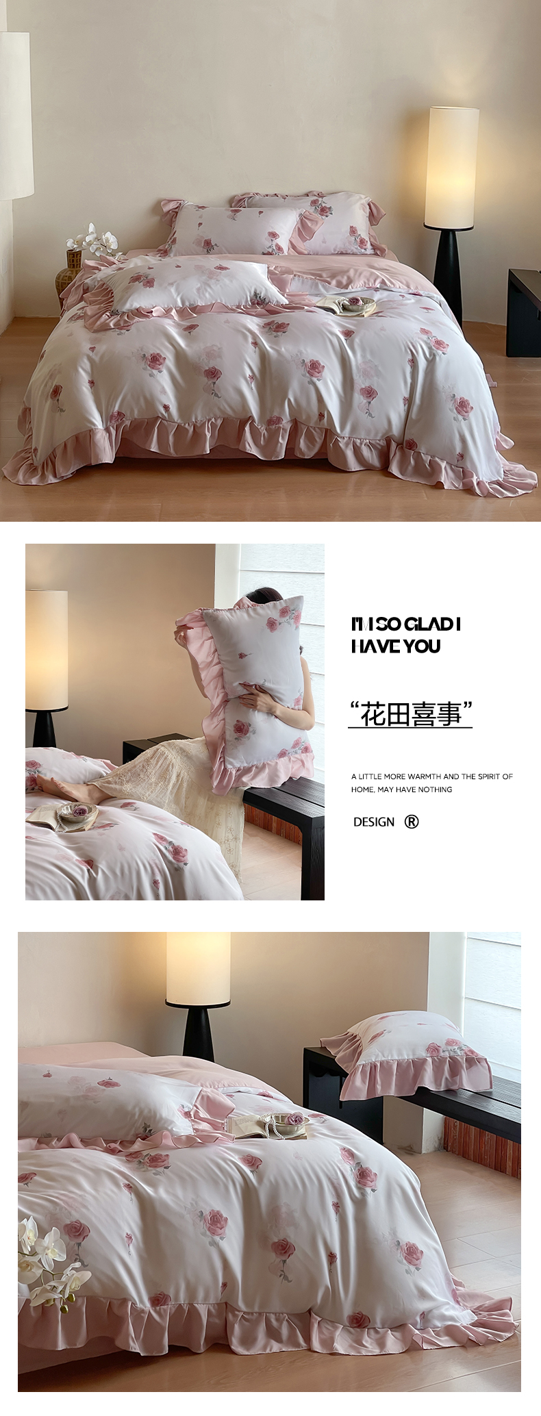 卡巴伦家纺 2025新款天丝四件套-法式闺房风花边款【不得低于(店铺折后/券后)标准:249元】 花田喜事