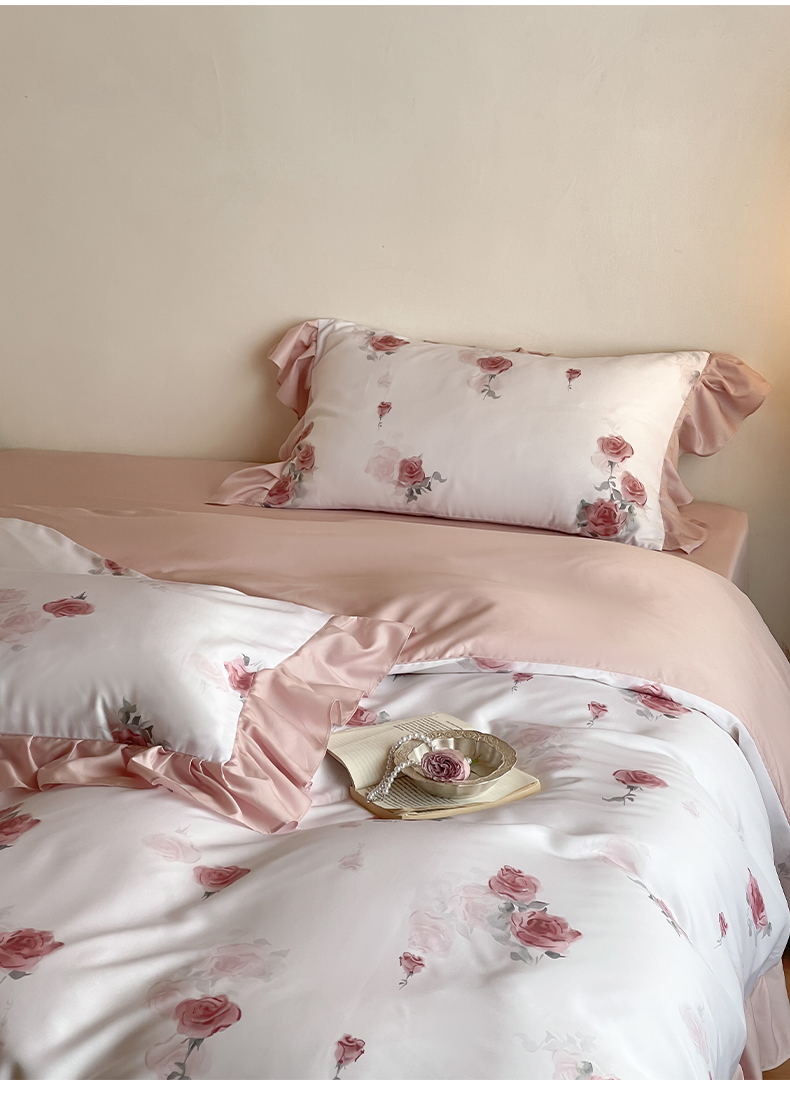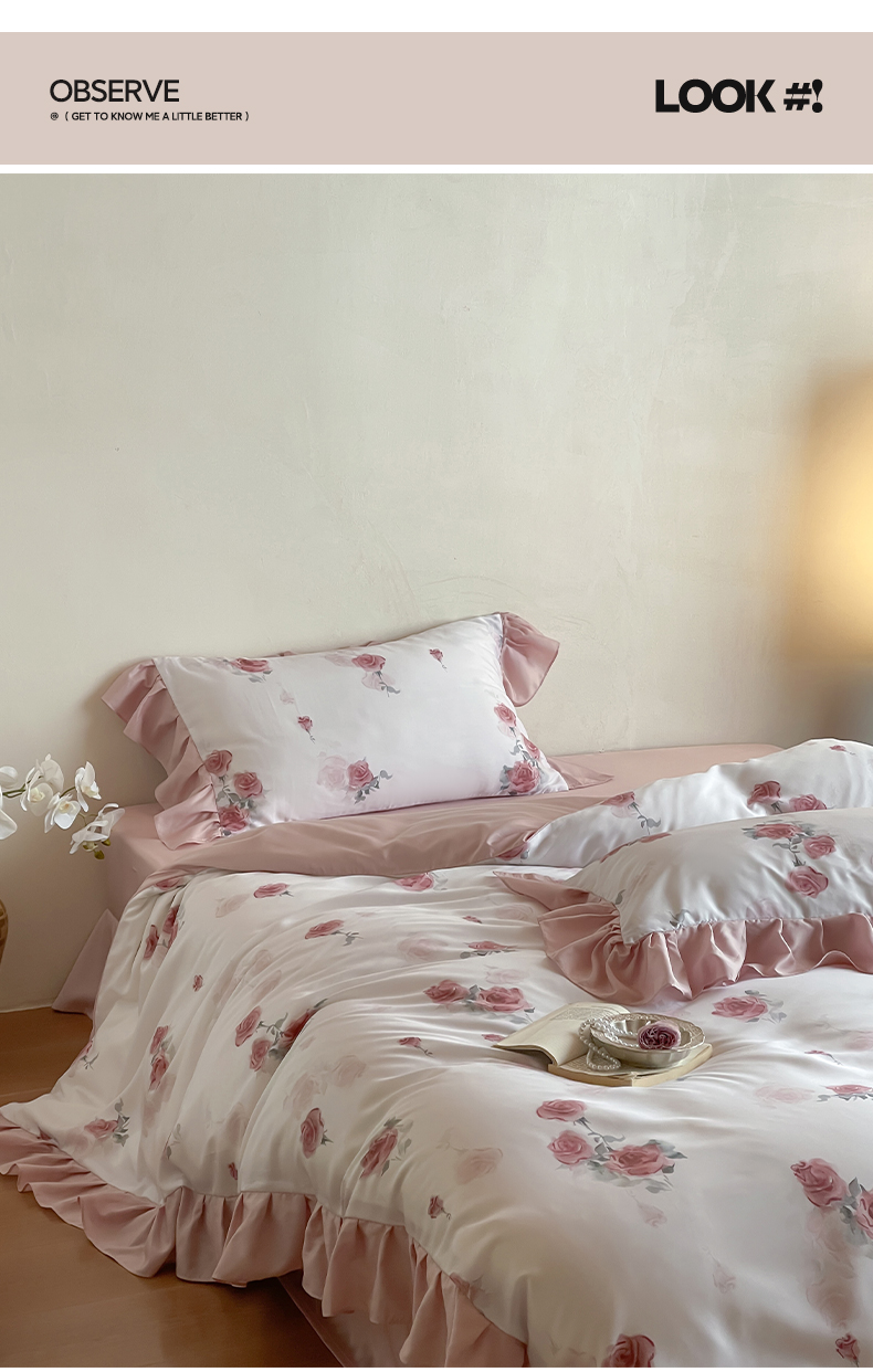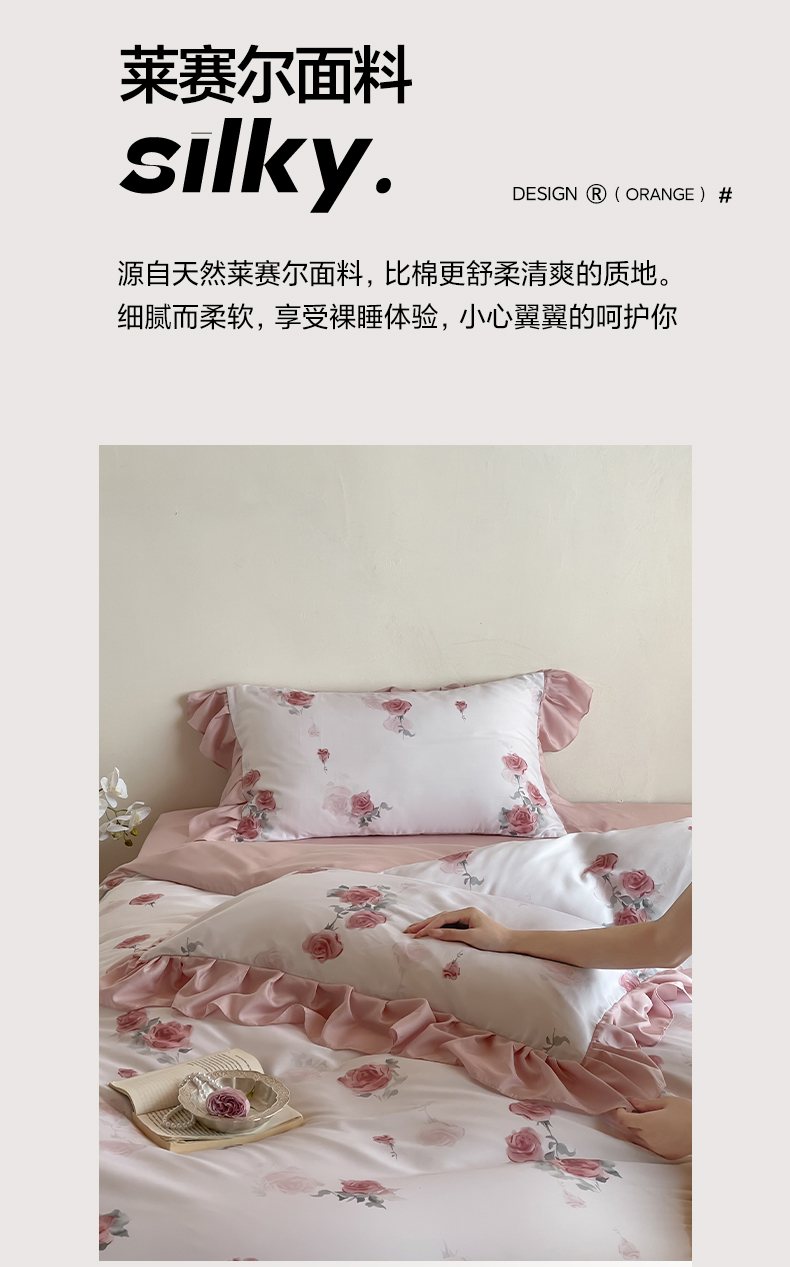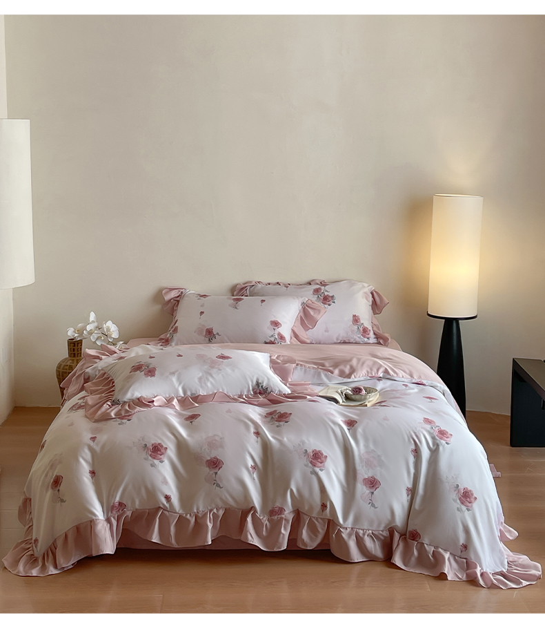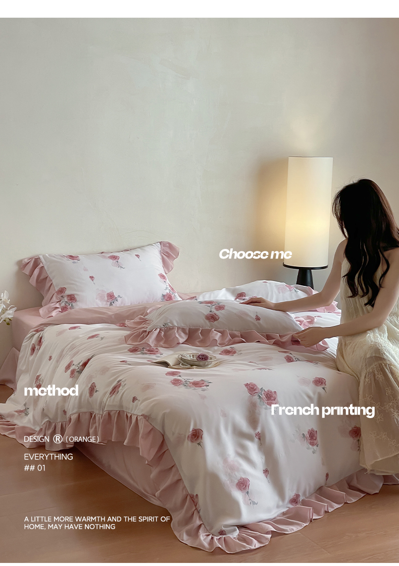 卡巴伦家纺 2025新款天丝四件套-法式闺房风花边款【不得低于(店铺折后/券后)标准:249元】 花田喜事