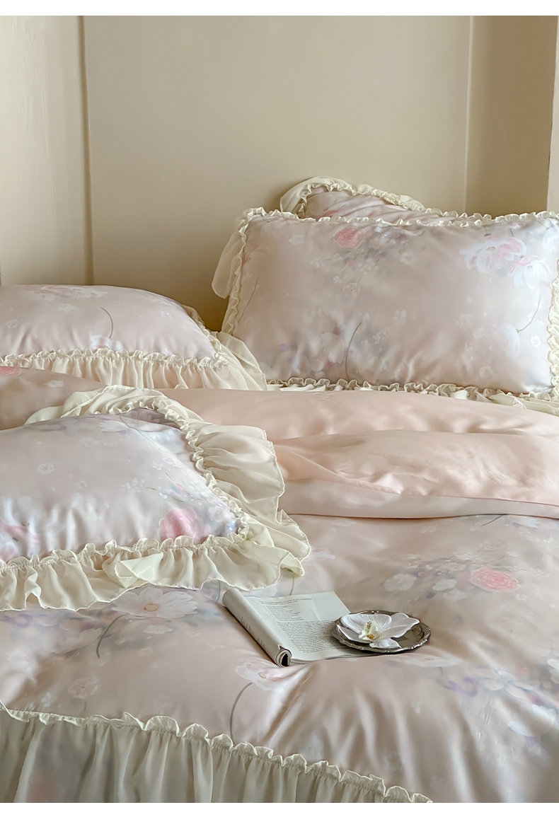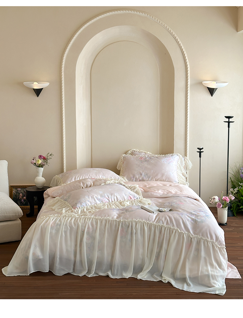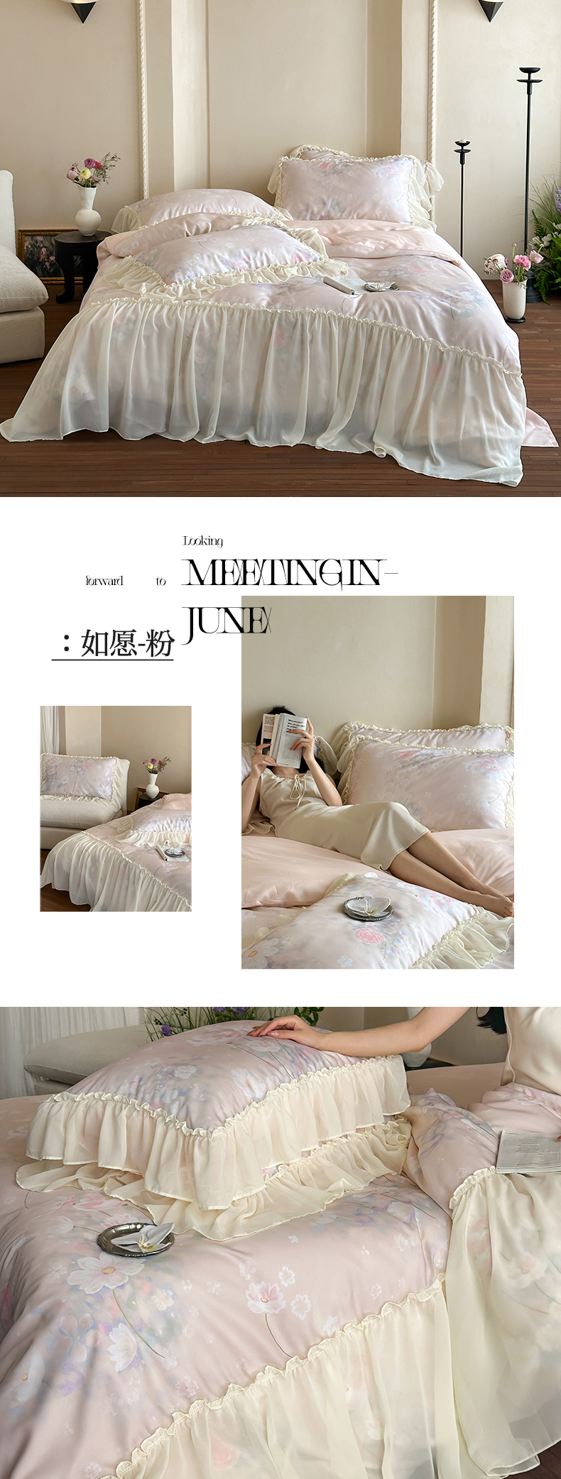 卡巴伦家纺 2025新款天丝四件套-法式闺房风雪纺花边款【不得低于(店铺折后/券后) 标准:249元】 如愿-粉