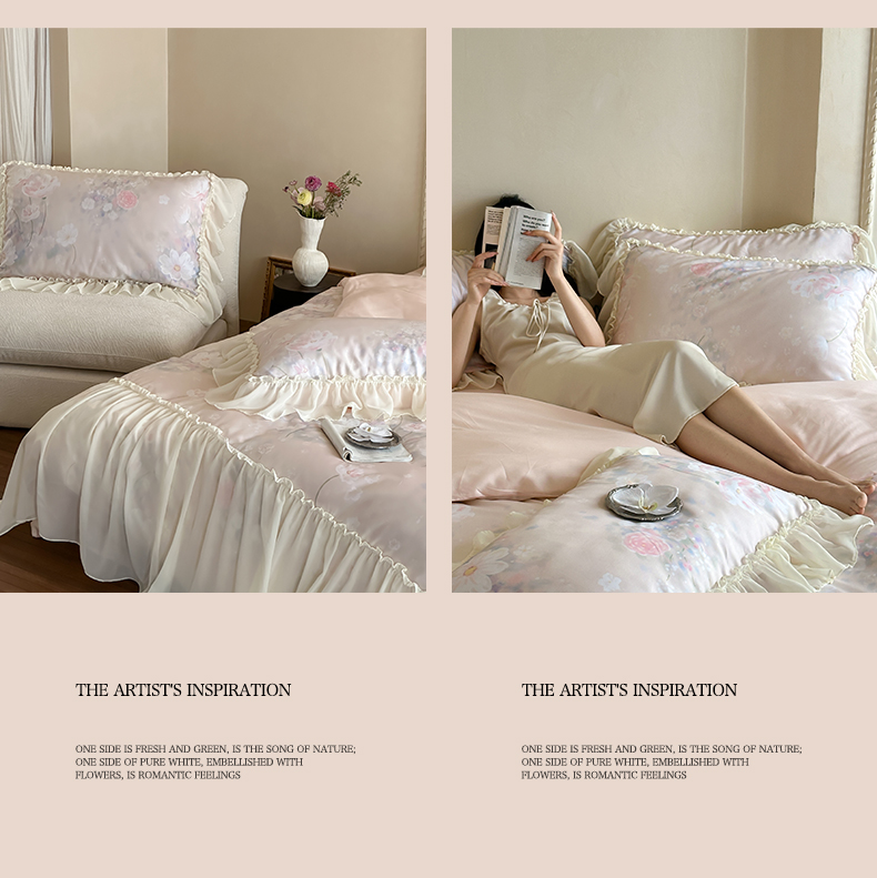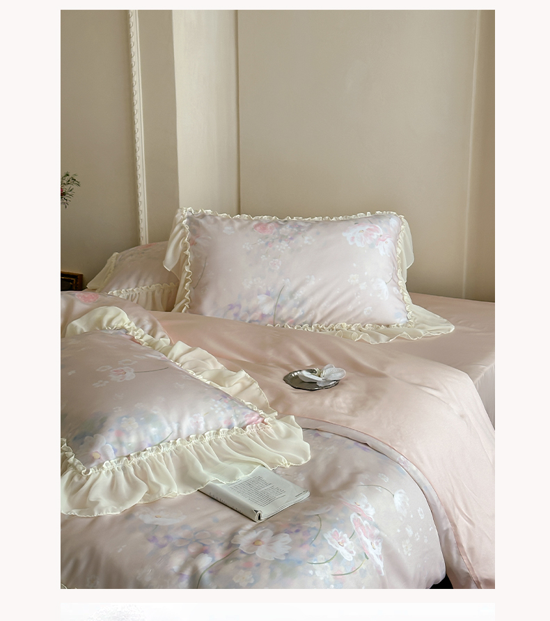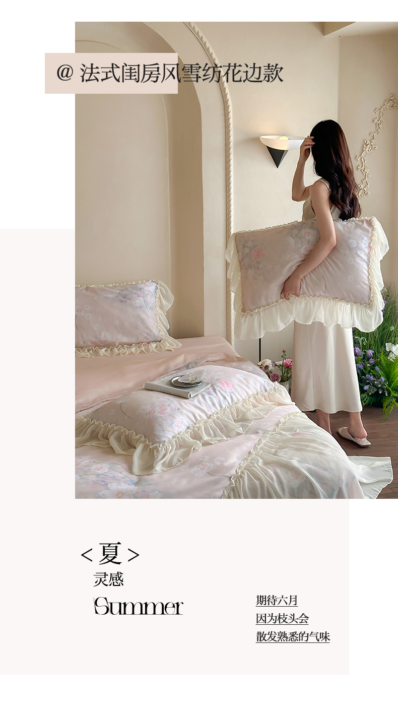 (总)卡巴伦家纺 2025新款天丝四件套-法式闺房风雪纺花边款【不得低于(店铺折后/券后) 标准:249元】,赫本,清风玉露,如愿-粉,如愿-兰,奢香-粉,奢香-兰