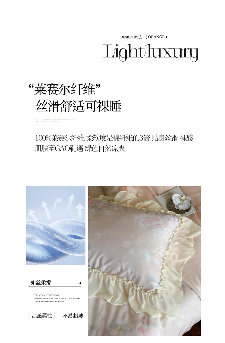 (总)卡巴伦2025新款60兰精天丝夏被四件套,晨露花园粉,晨露花园蓝
