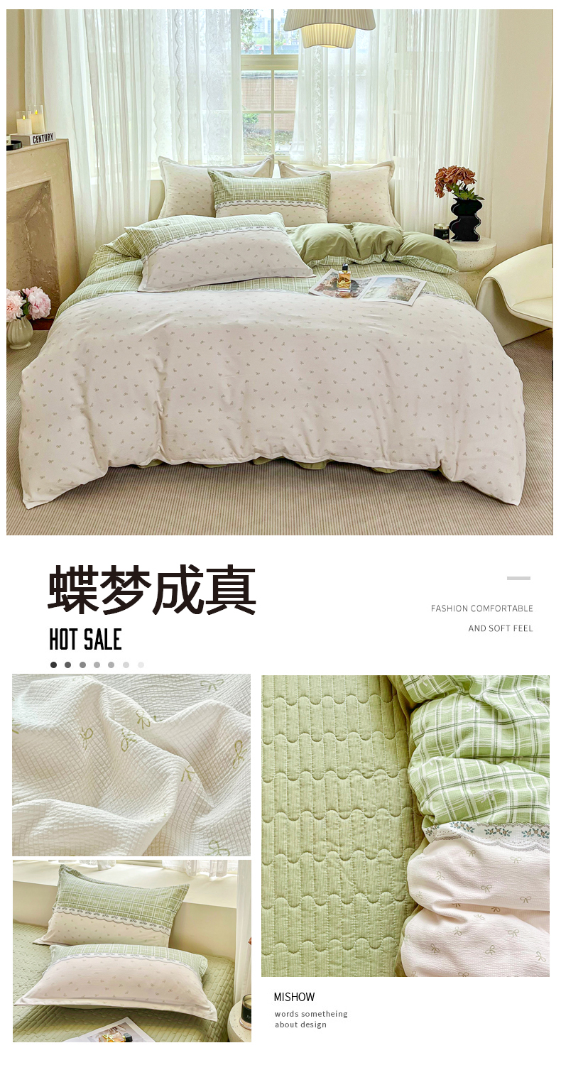 商品名称:2026春夏新款拼色提花双层纱古法水洗床盖四件套提花云感棉 蝶梦成真