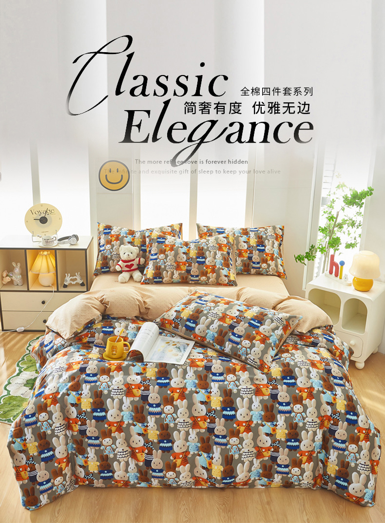 当前位置: 91家纺网 > 商品网购 > 床品套件 > 四件套 > 全棉普通四件套 > 黛妮雅 2025新款AB版全棉印花床单款全棉四件套 送买家秀 幸运兔