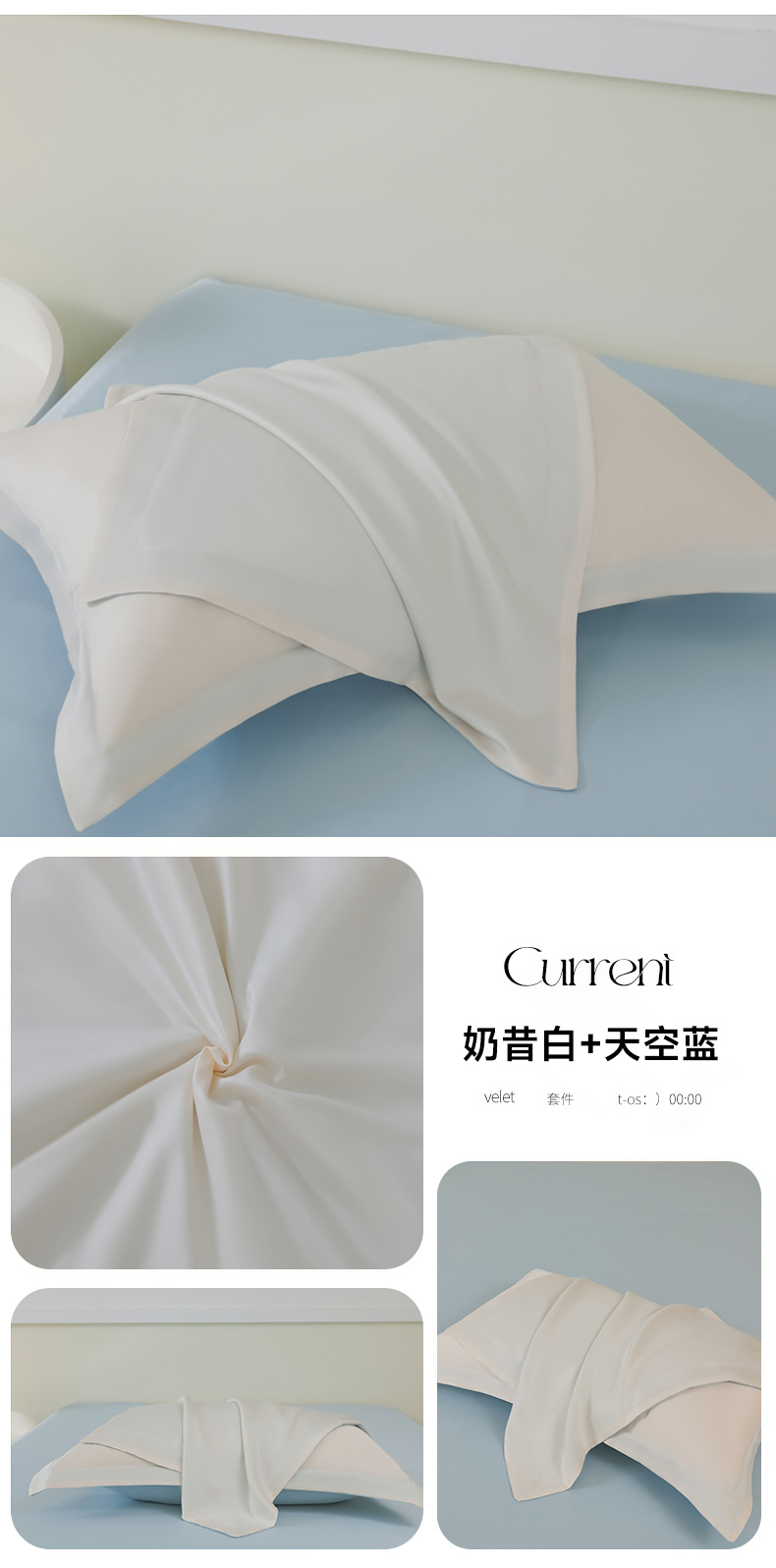 商品名称:(总)多乐家纺 2025新款水洗冰丝真丝纯色双拼枕套