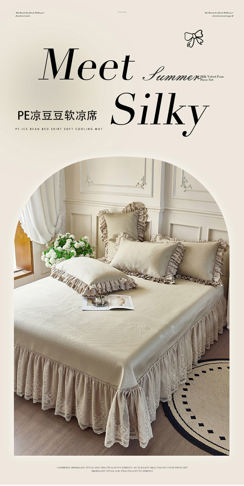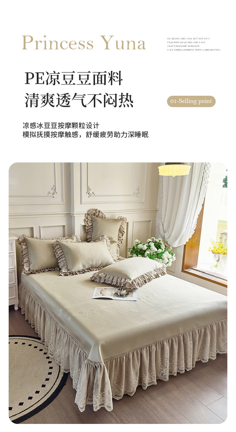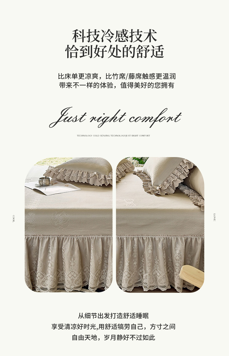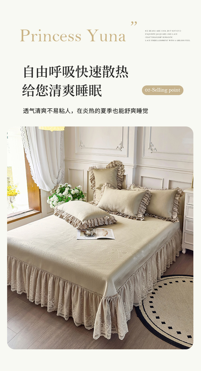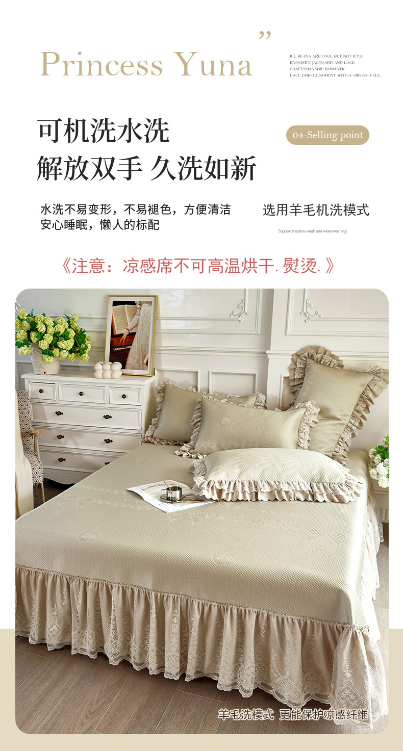 (总)乐朵家居 2025新款洛丽塔系列A类凉感席三件套,洛丽塔-豆沙,洛丽塔-蓝,洛丽塔-绿,洛丽塔-奶白,洛丽塔-玉