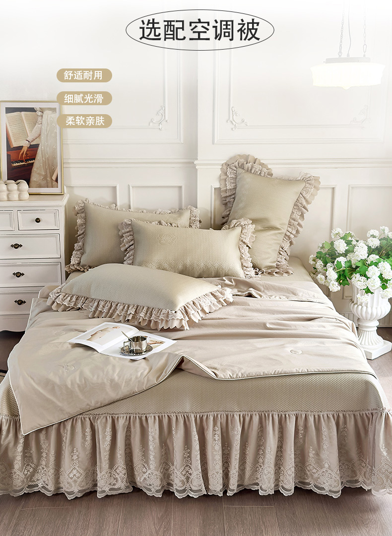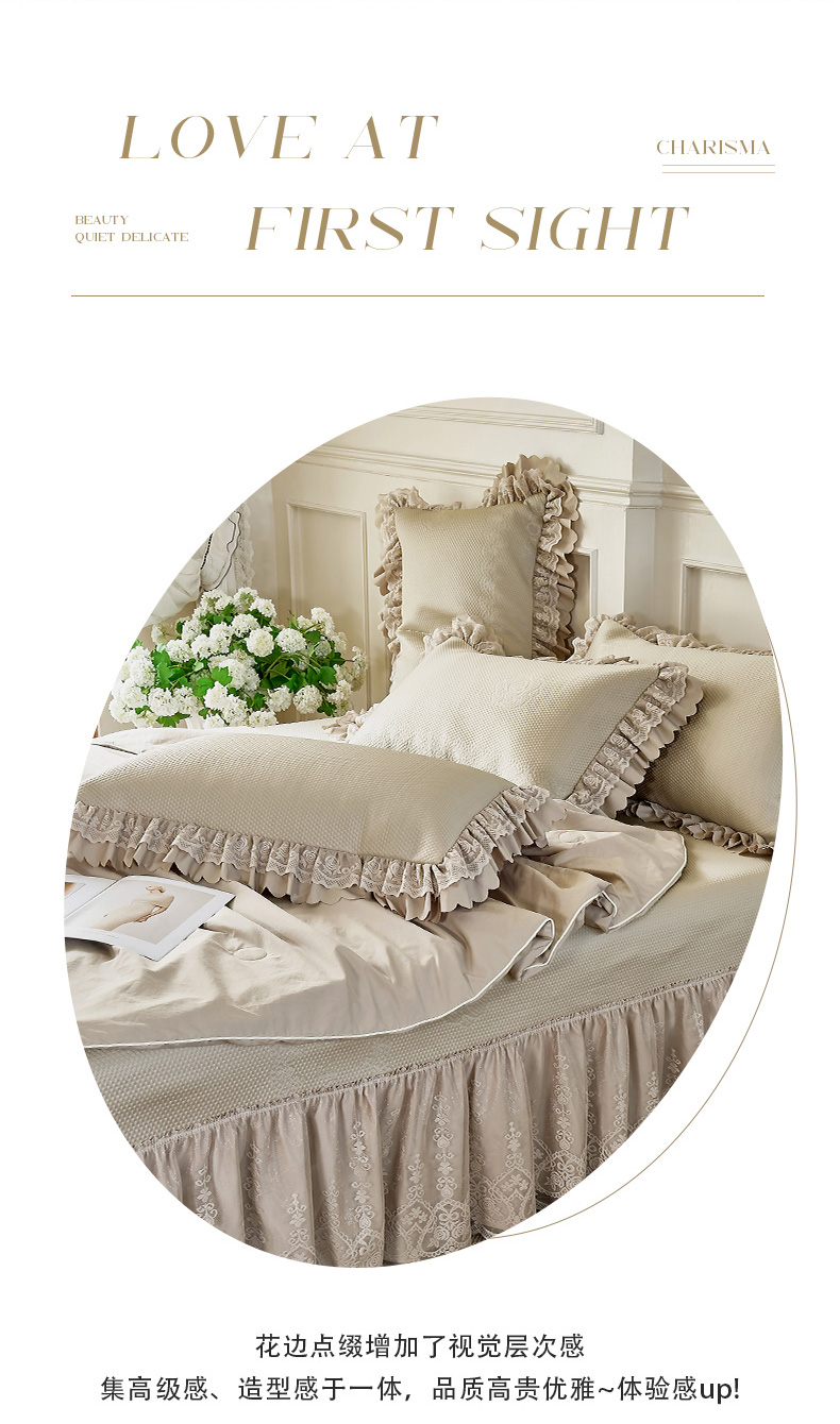 (总)乐朵家居 2025新款 25-1 芯语 蕾丝床裙,豆沙,灰,卡其,绿,米,紫