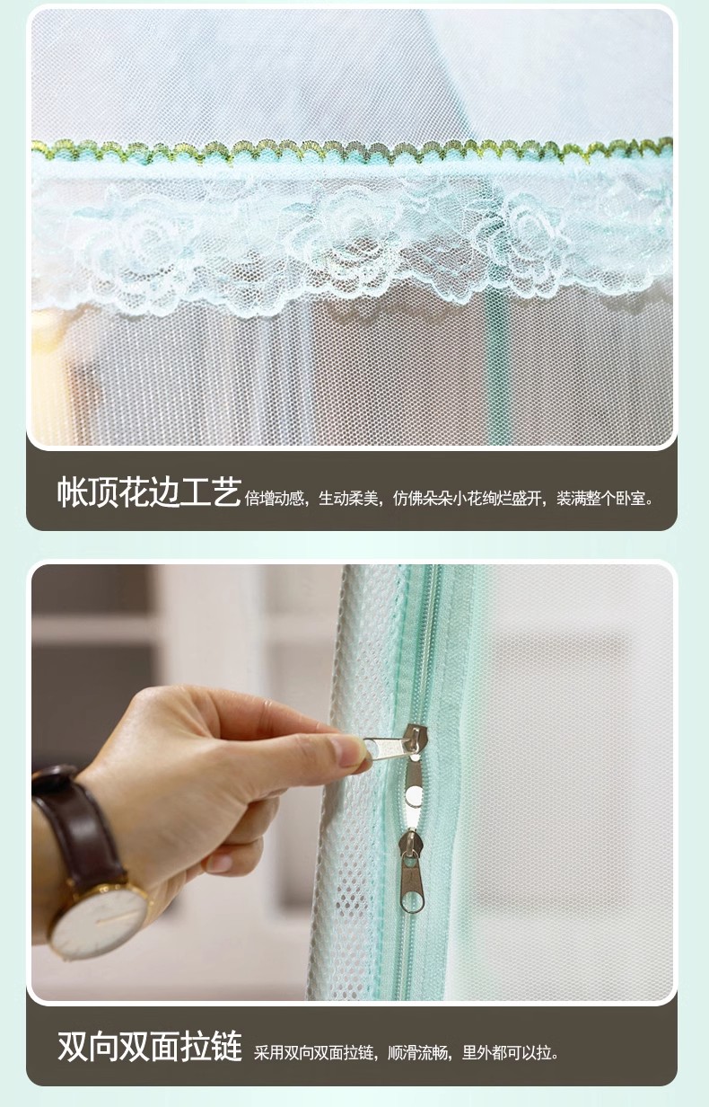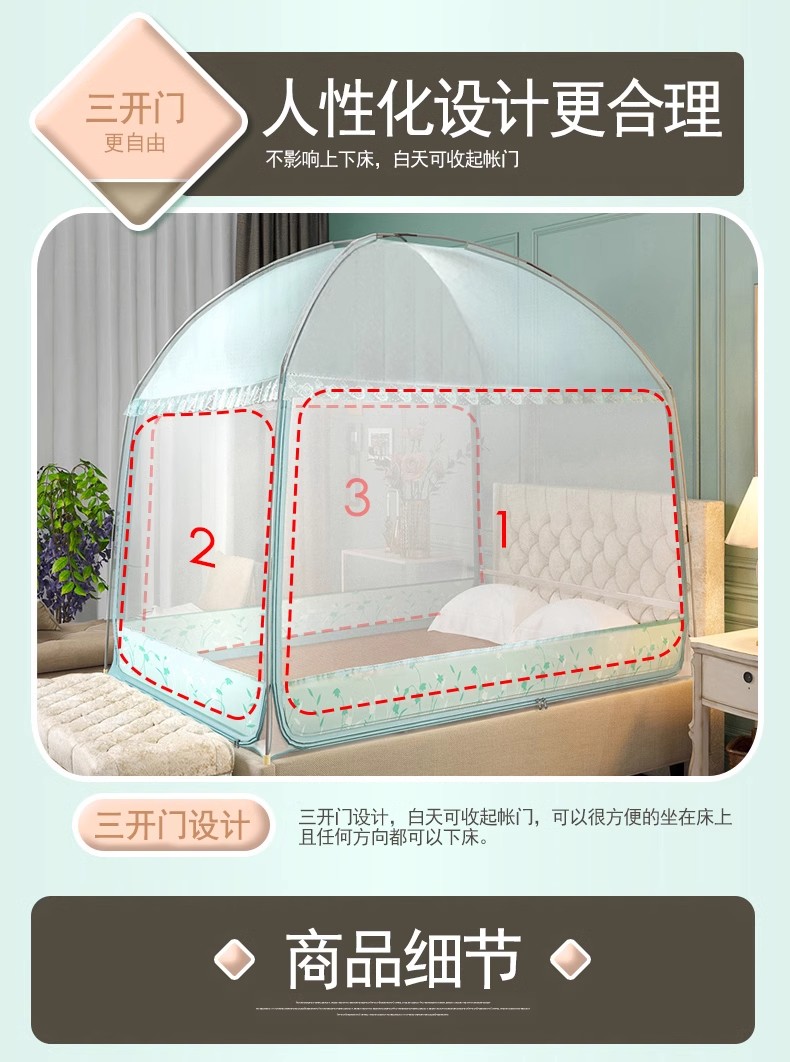 (总)2024新款蒙古包三开门防蚊布拉链坐床式蚊帐,粉色,米黄,水绿,紫色