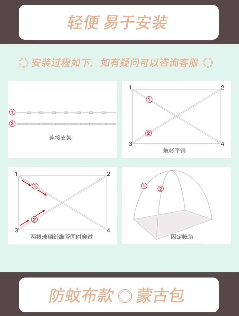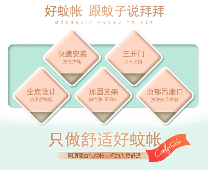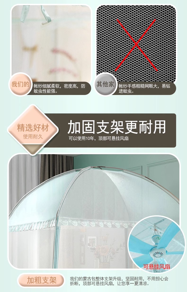 商品名称:(总)无瑕家居 2025新款防蚊安装蒙古包蚊帐全底蒙古包坐床蚊帐