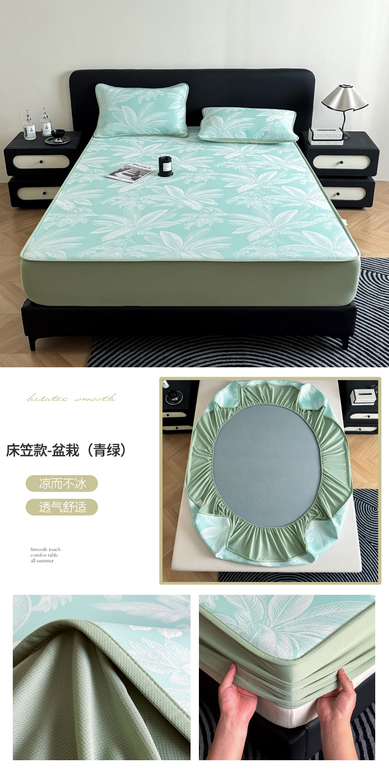 商品名称:九花鹿 2025新款A类PE凉感提花床笠款冰丝凉席软凉席可机洗可水洗 盆栽(米灰)