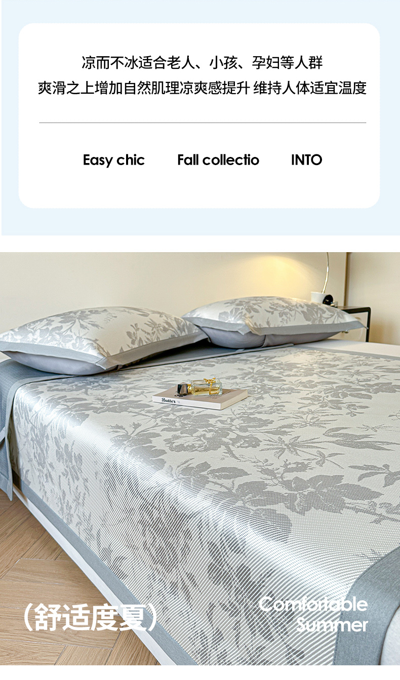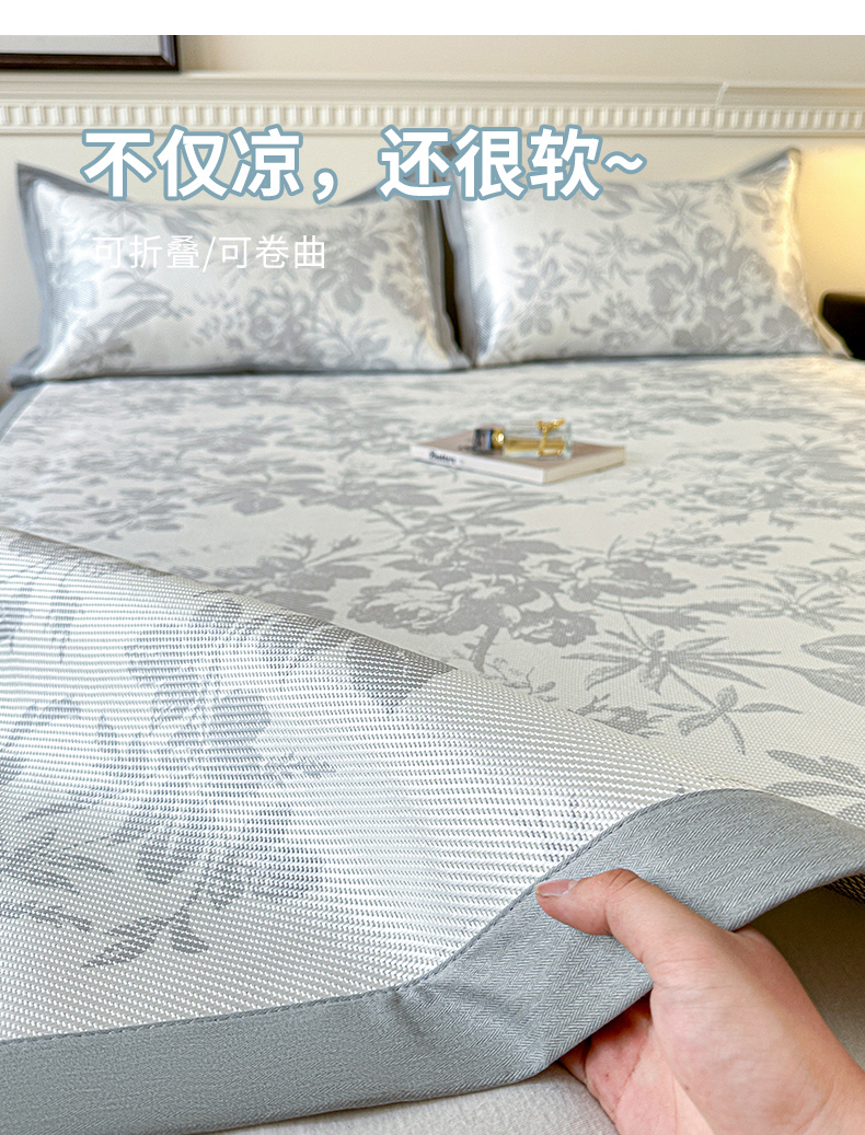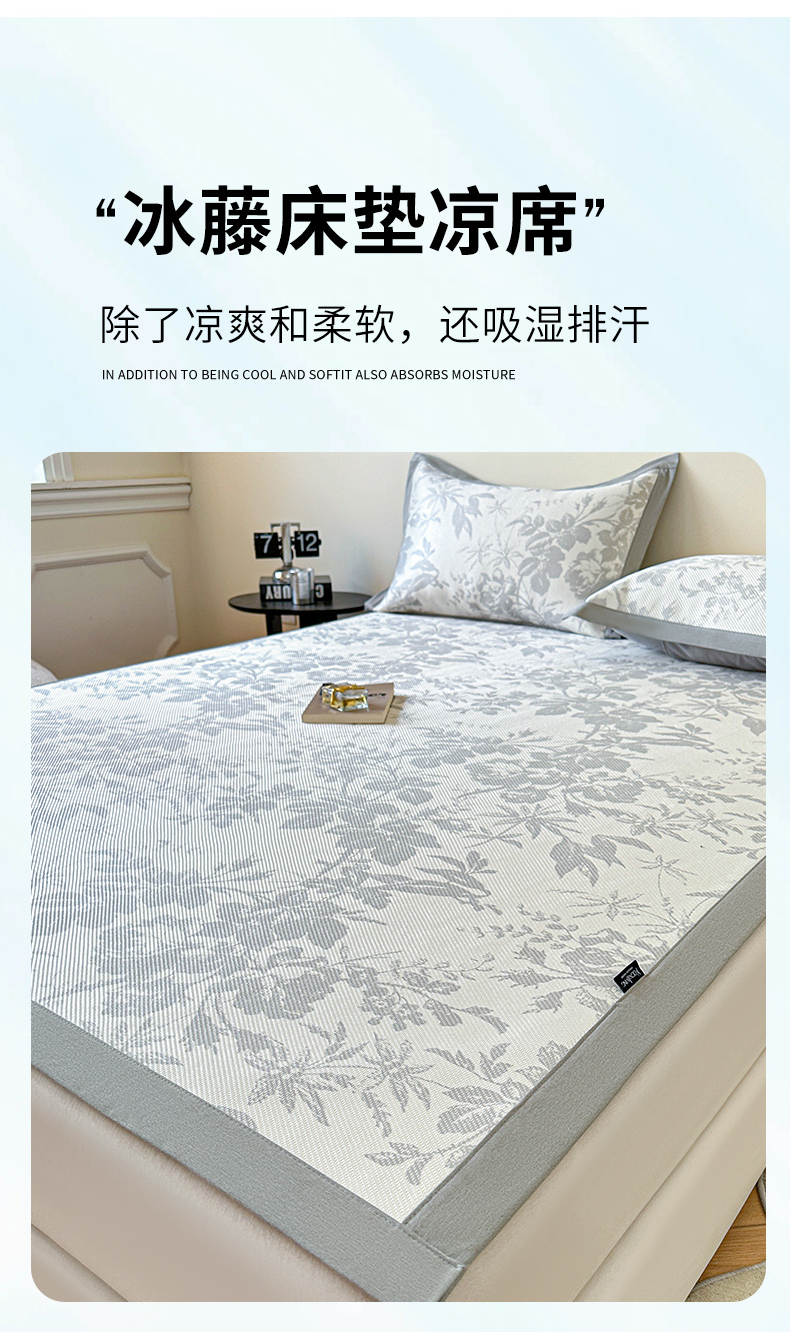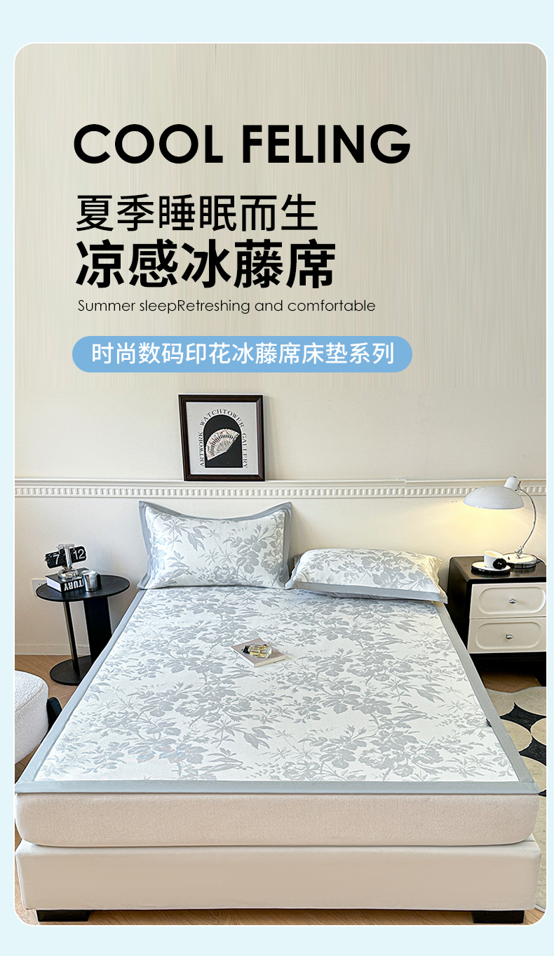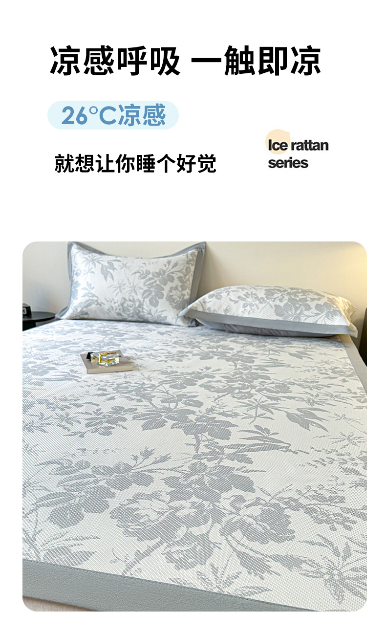 宜代光年 2025新款数码印花冰藤席-床席款 冰藤繁花 灰