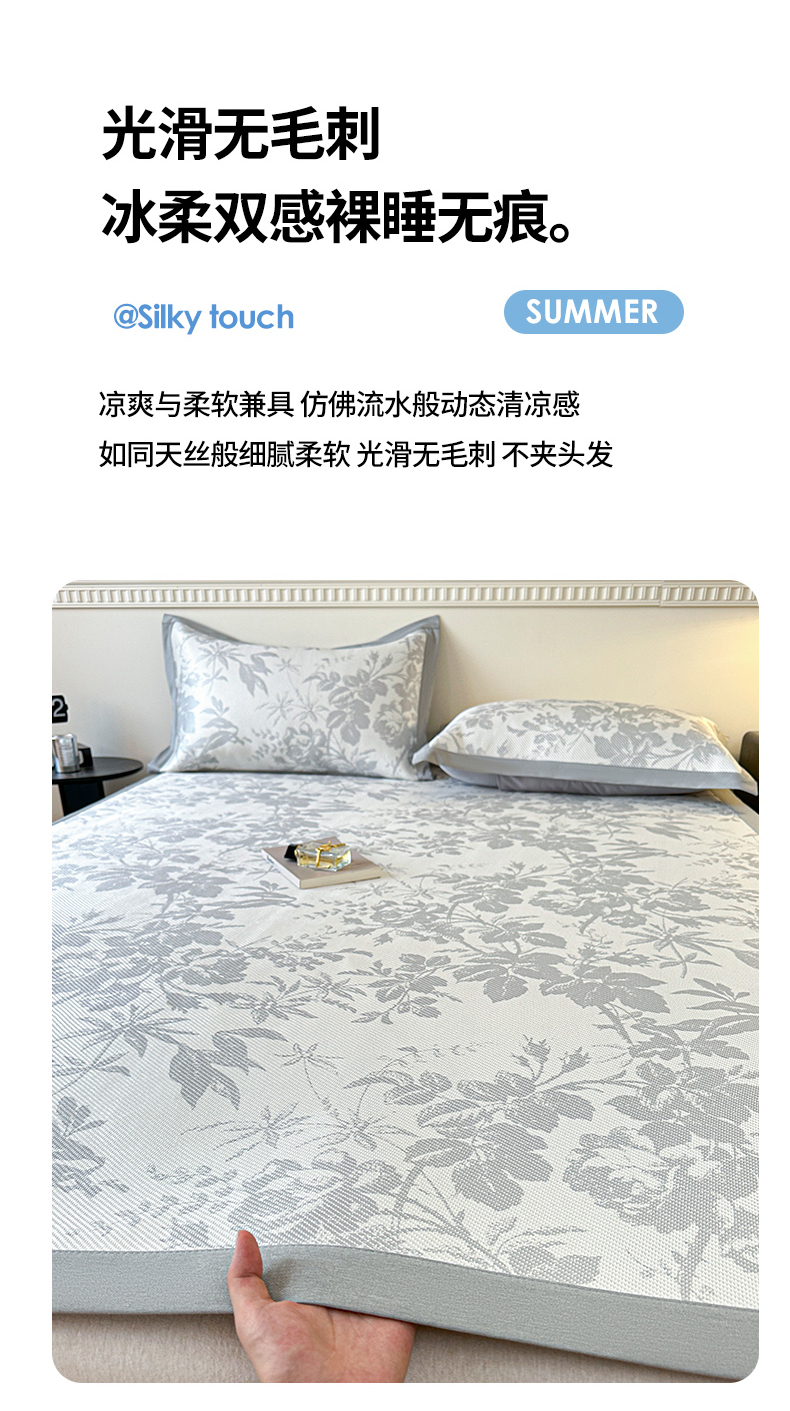 商品名称:宜代光年 2025新款数码印花冰藤席-床席款 冰藤繁花 灰
