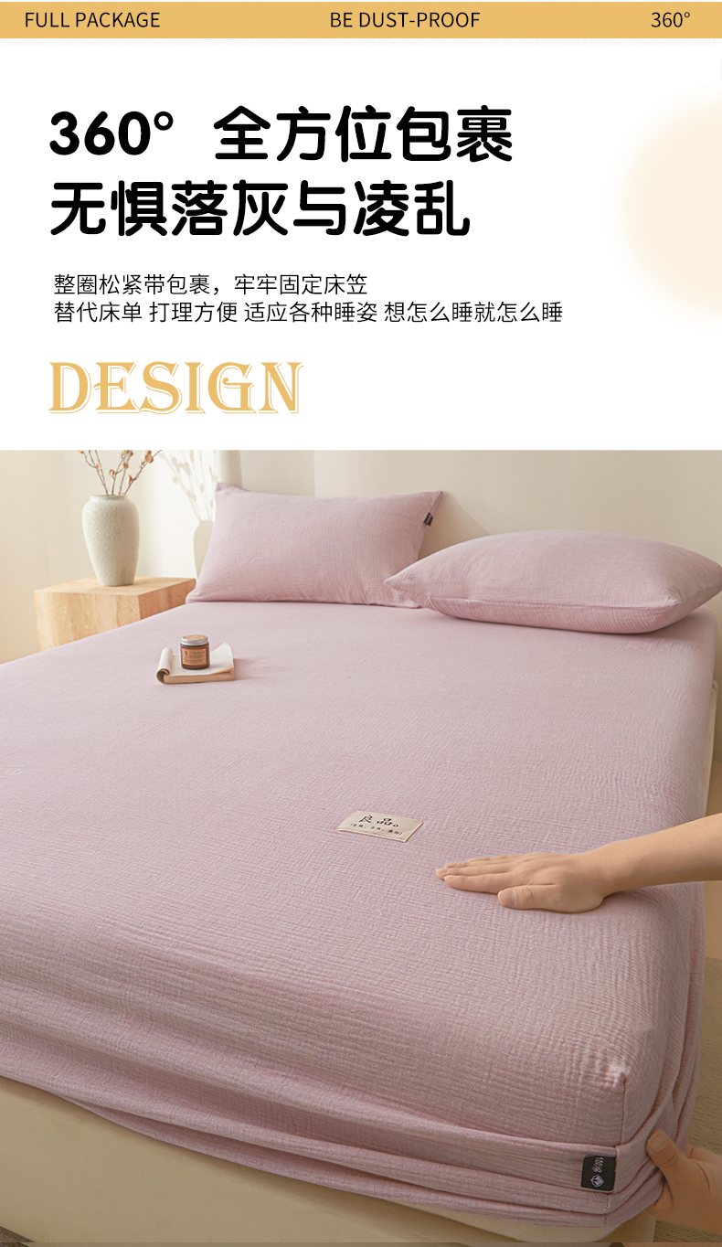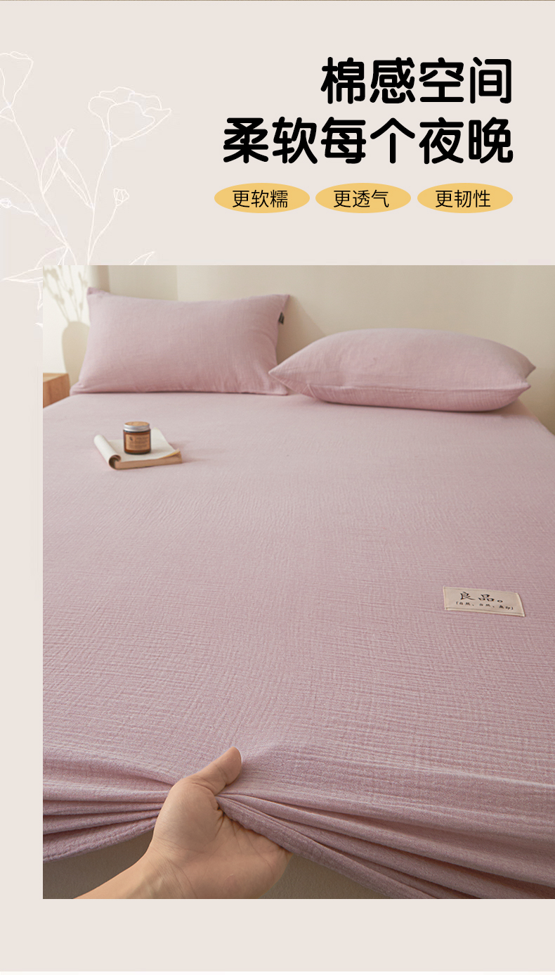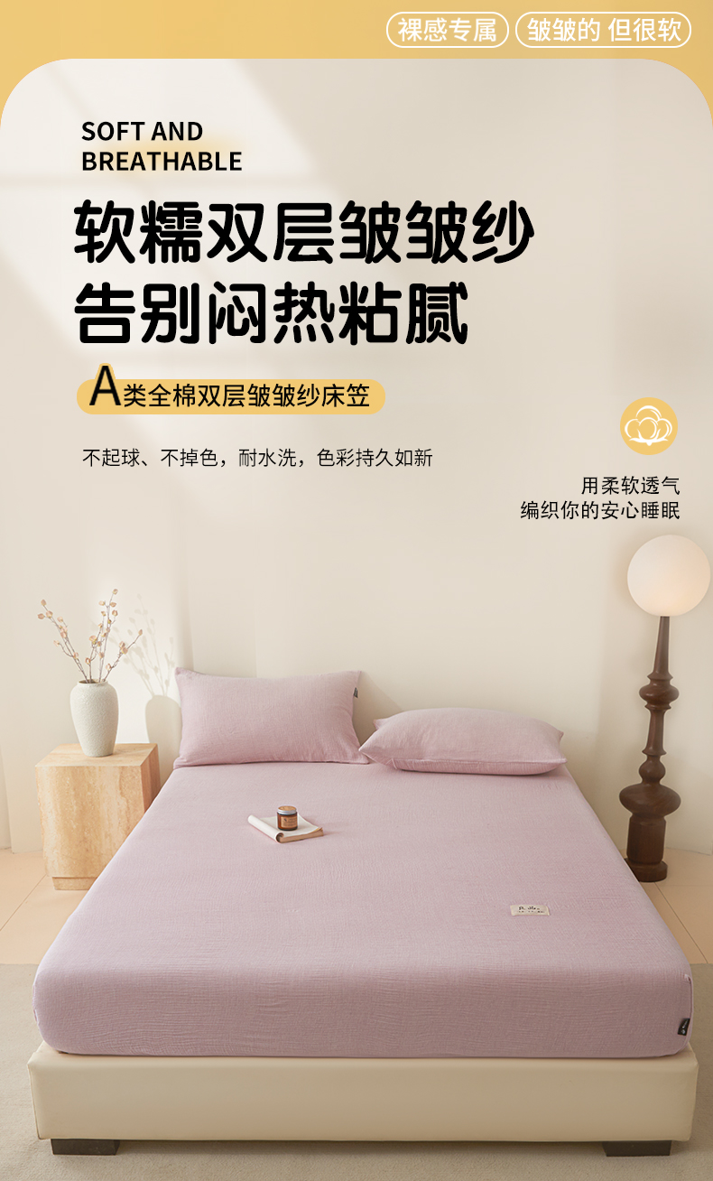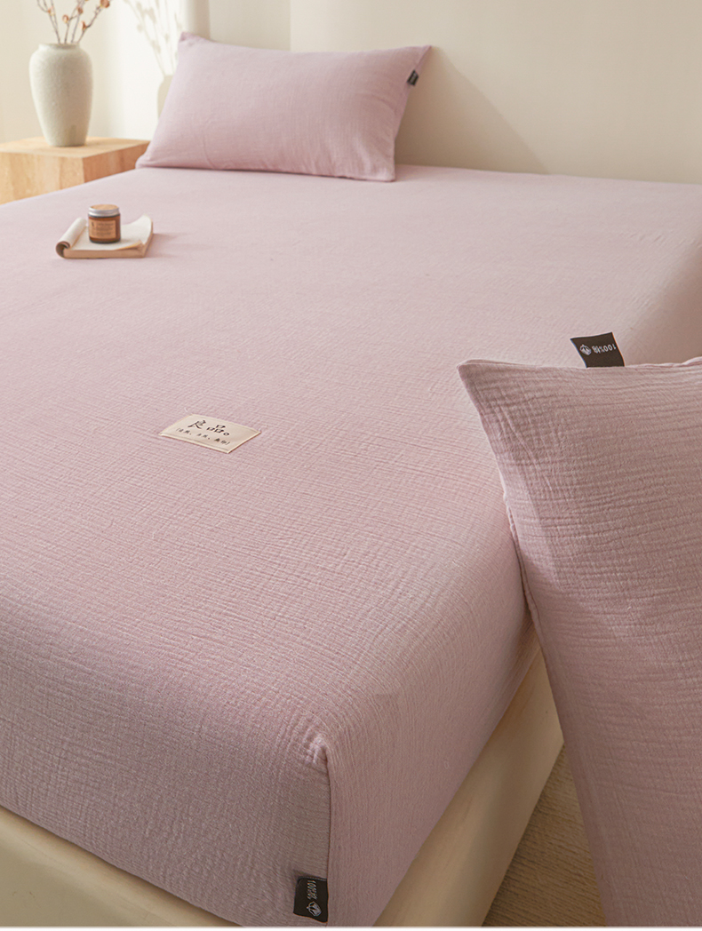 • 91家纺网 家纺一手货源 找家纺 鑫钰 2025新款纯色系列全棉双层皱皱纱床单-床笠 香妃紫-床笠