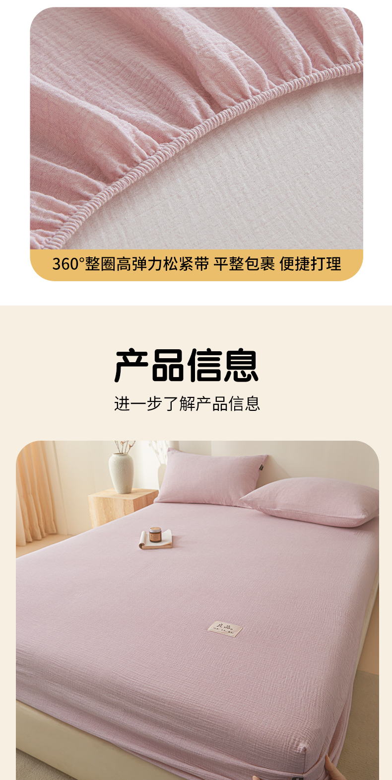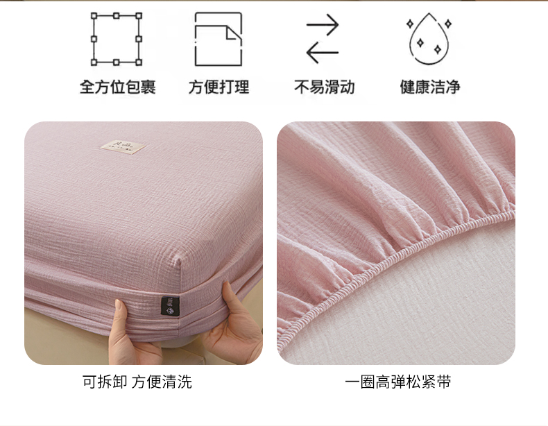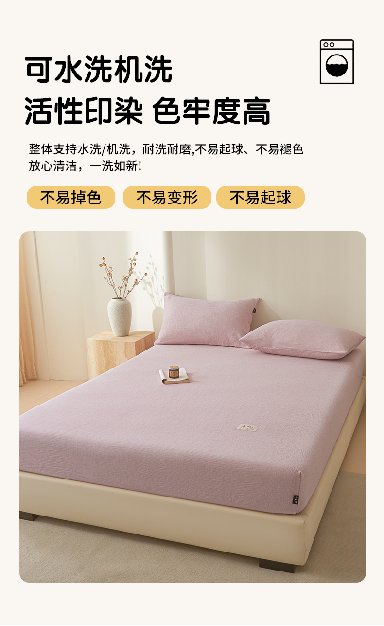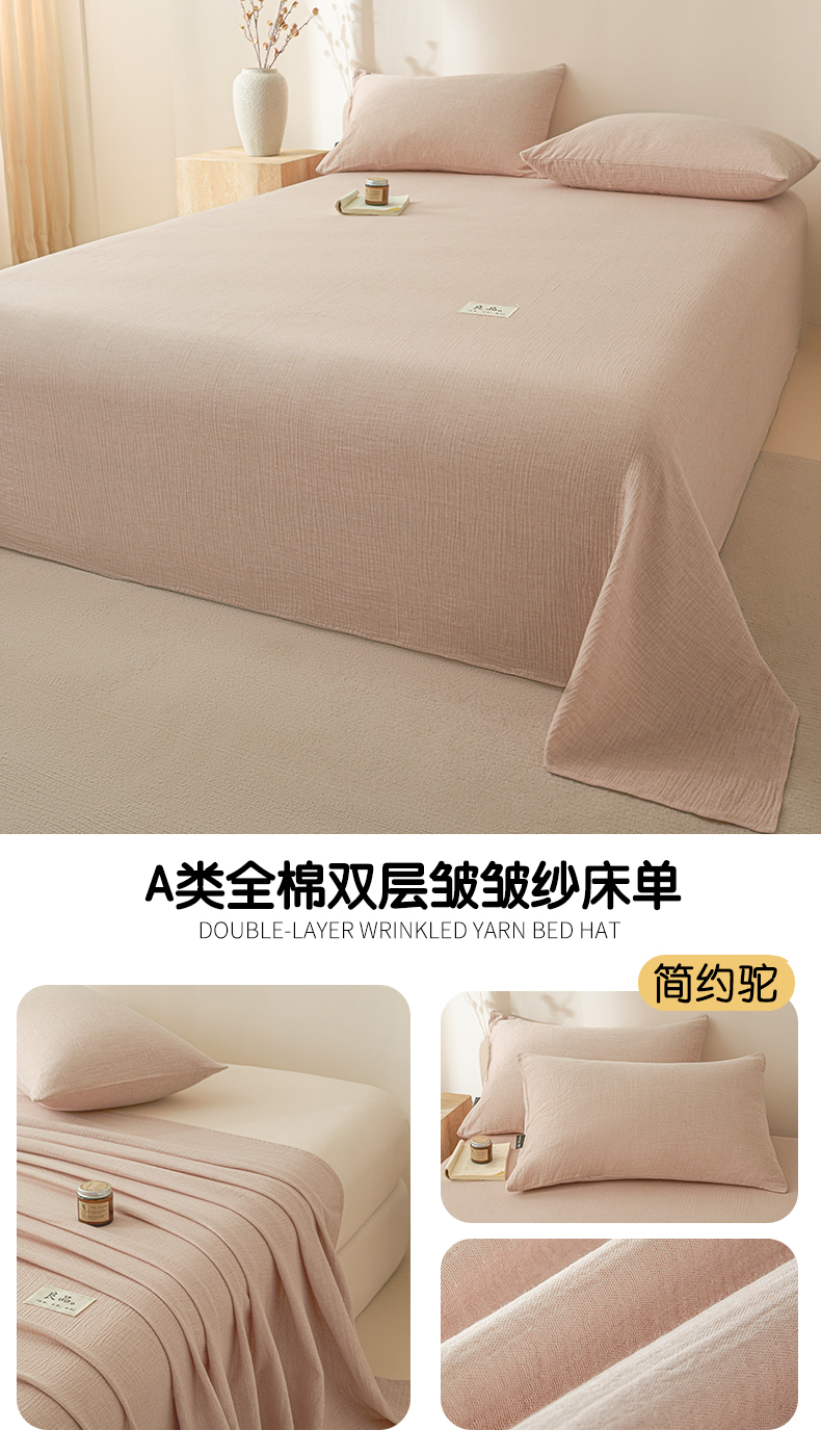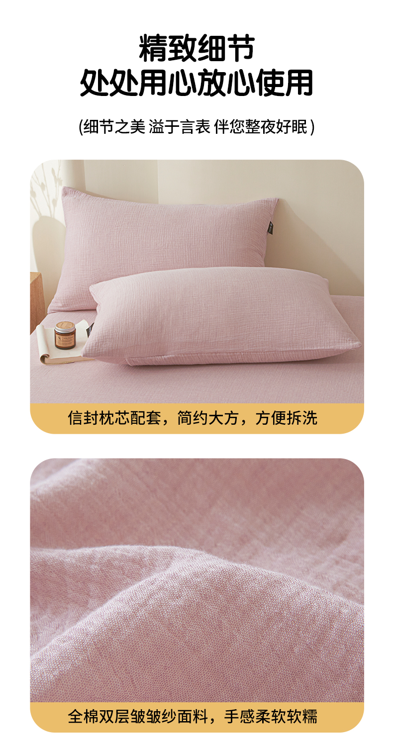 • 91家纺网 家纺一手货源 找家纺 鑫钰 2025新款纯色系列全棉双层皱皱纱床单-床笠 香妃紫-床笠