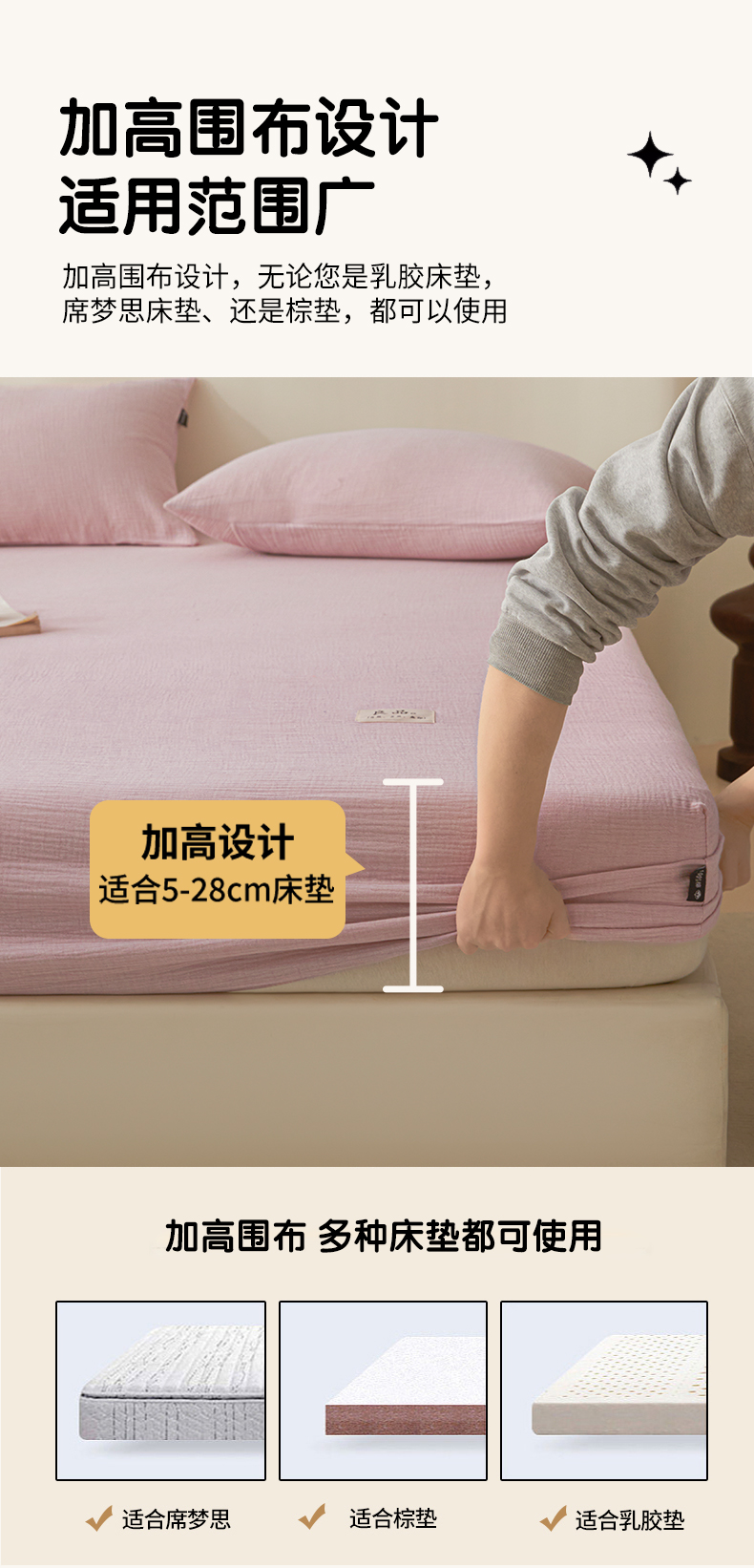 鑫钰 2025新款纯色系列全棉双层皱皱纱床单-床笠 香妃紫-床笠