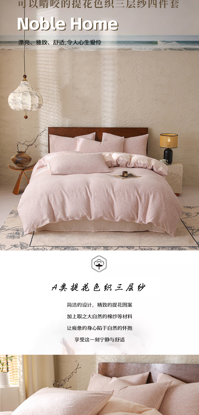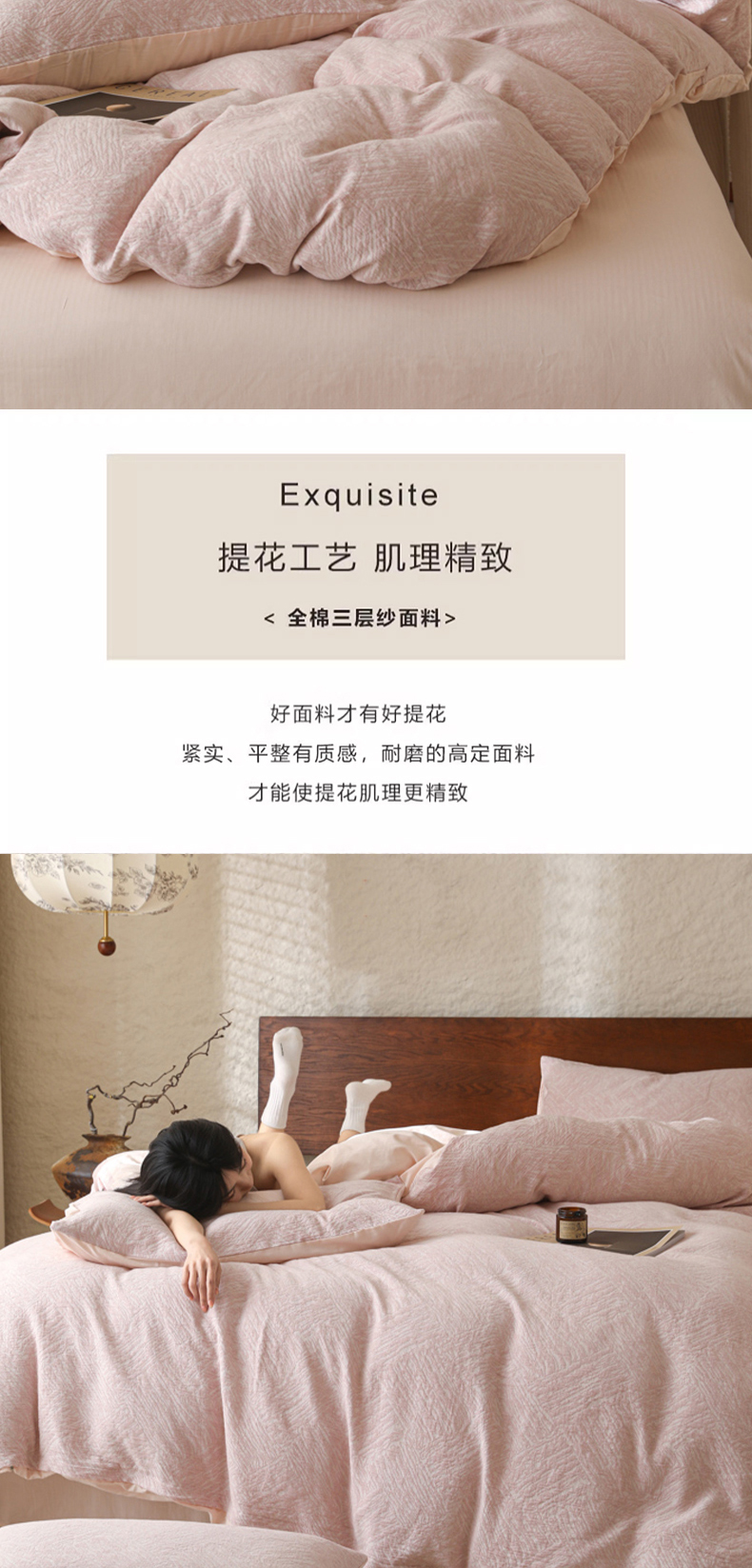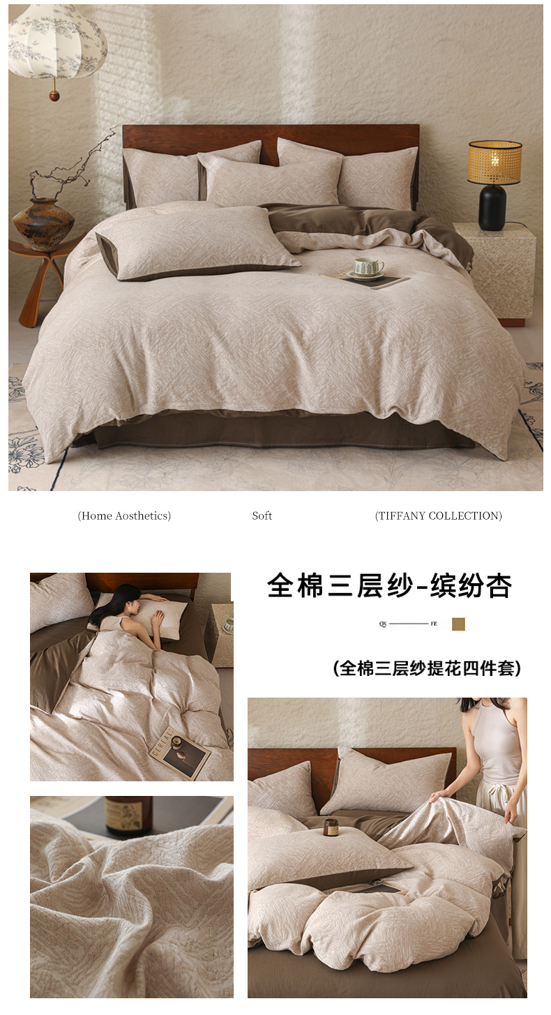 (总)眠博士 2025新款轻奢简约A类全棉纯棉提花色织三层纱四件套
