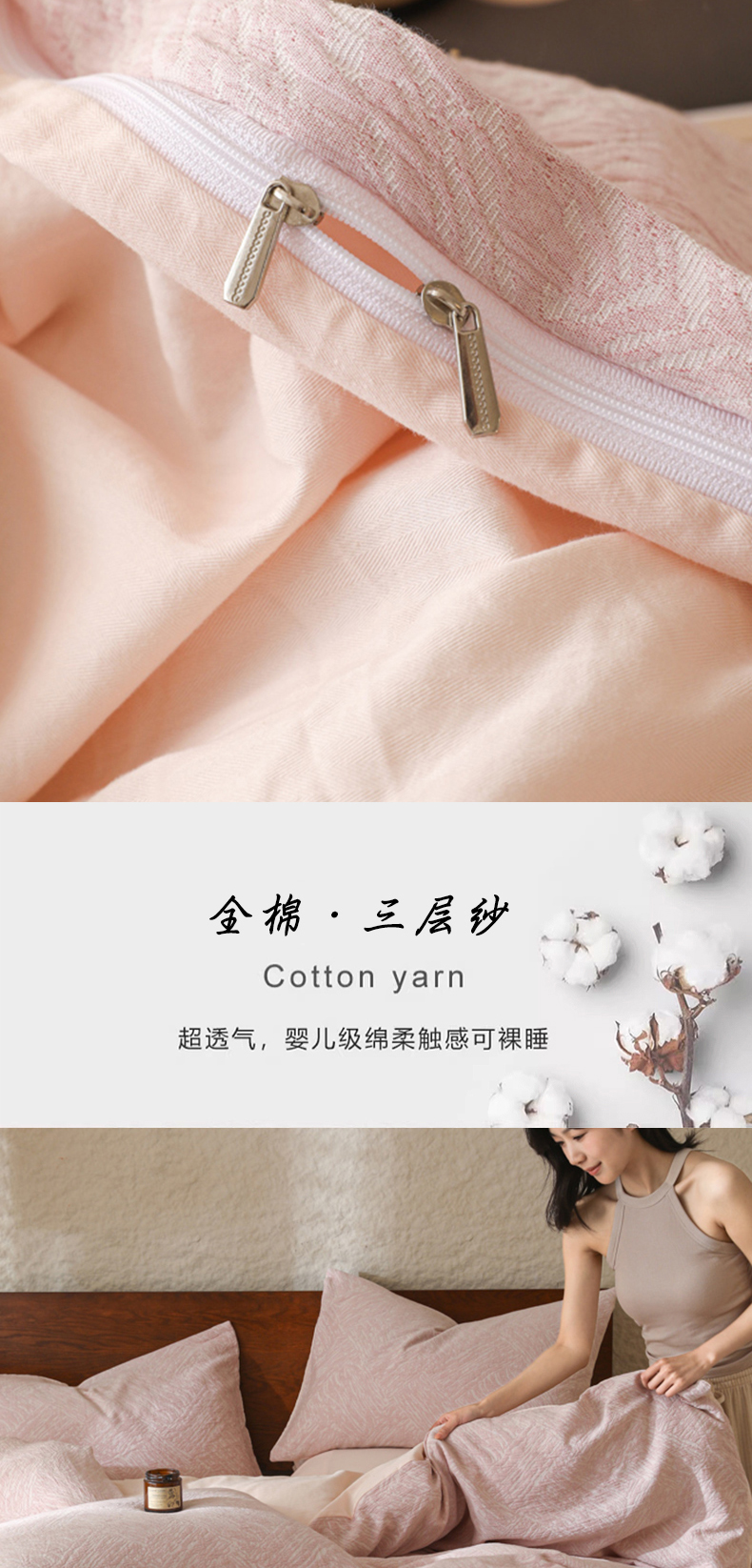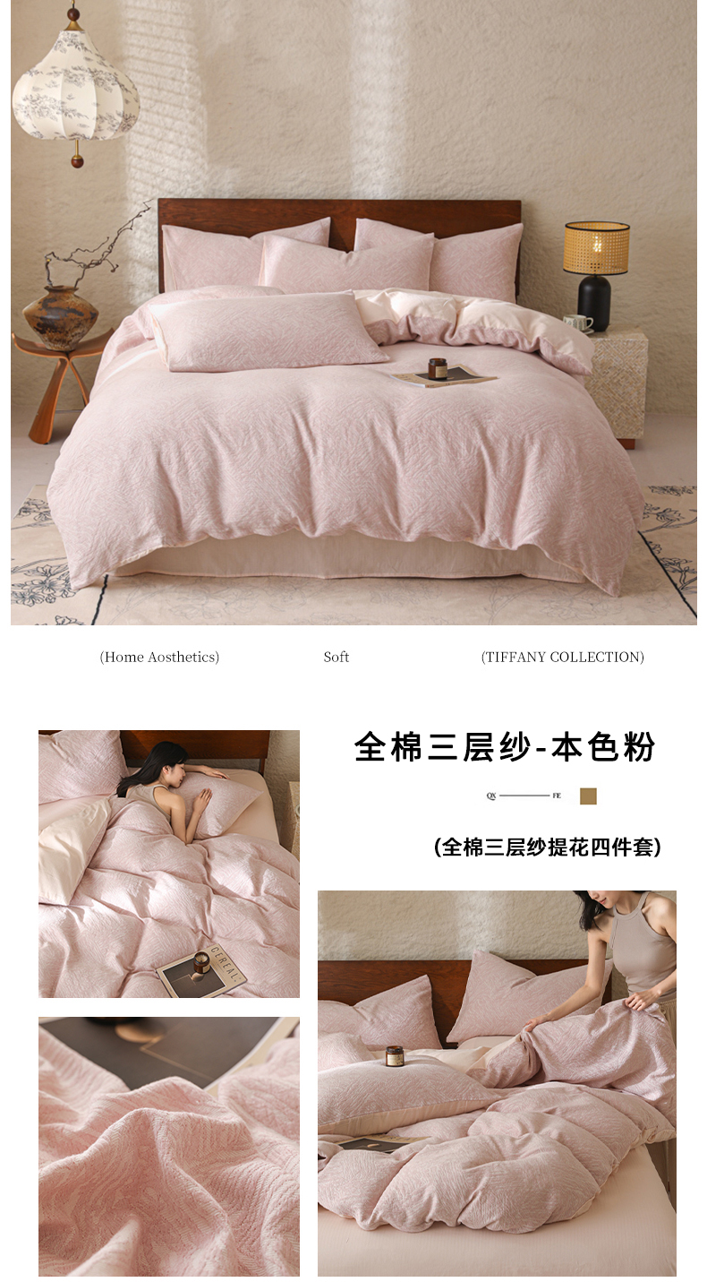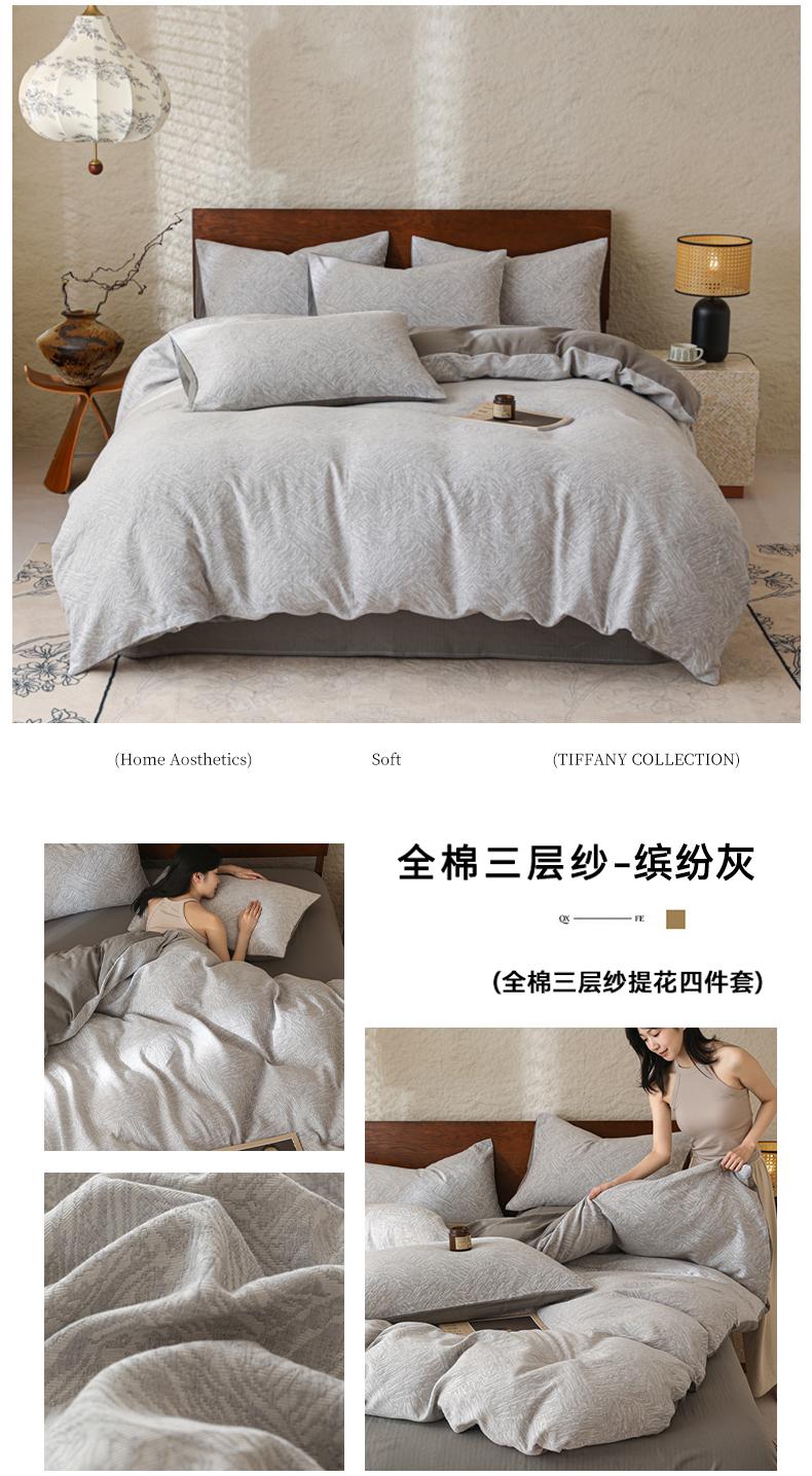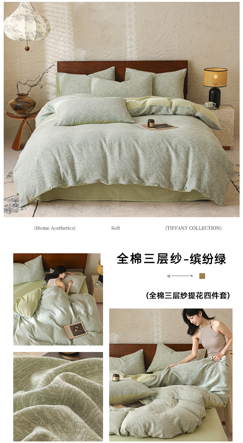 (总)眠博士 2025新款轻奢简约A类全棉纯棉提花色织三层纱四件套