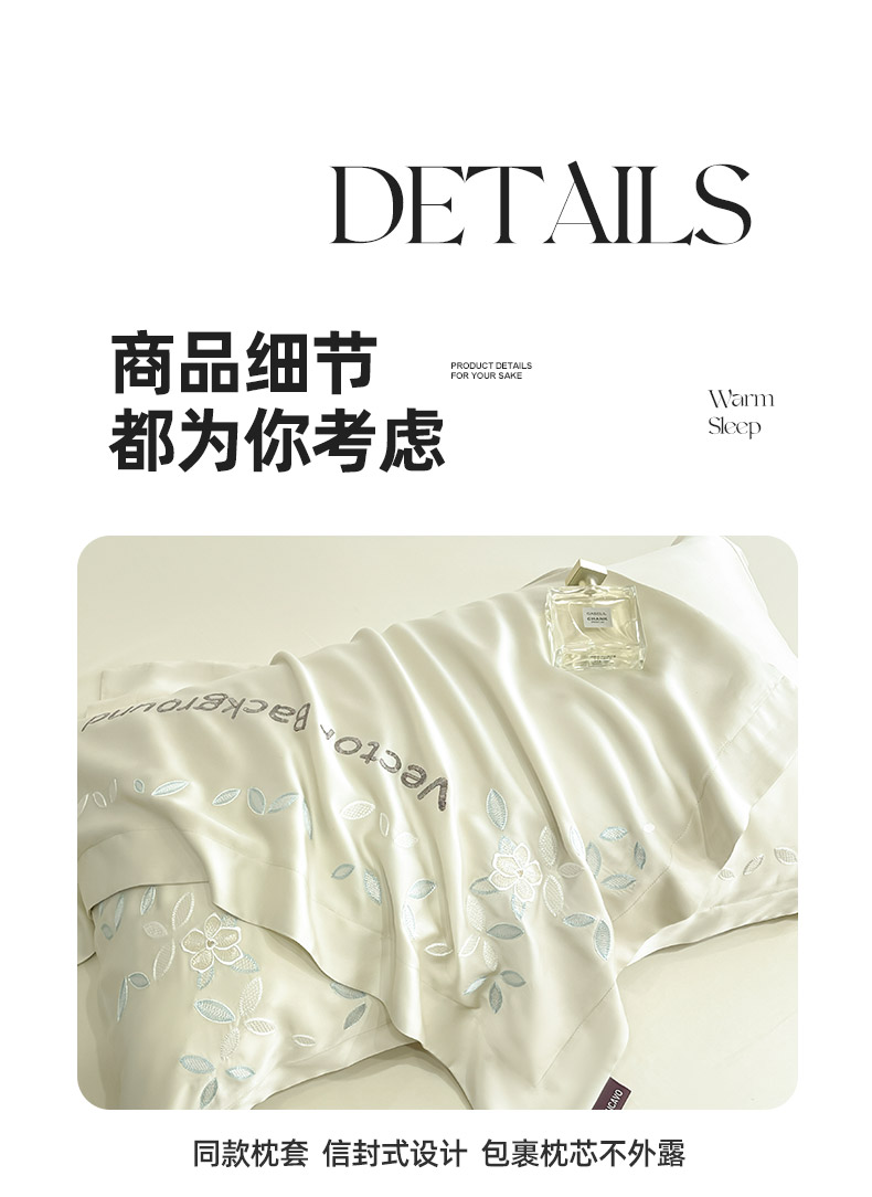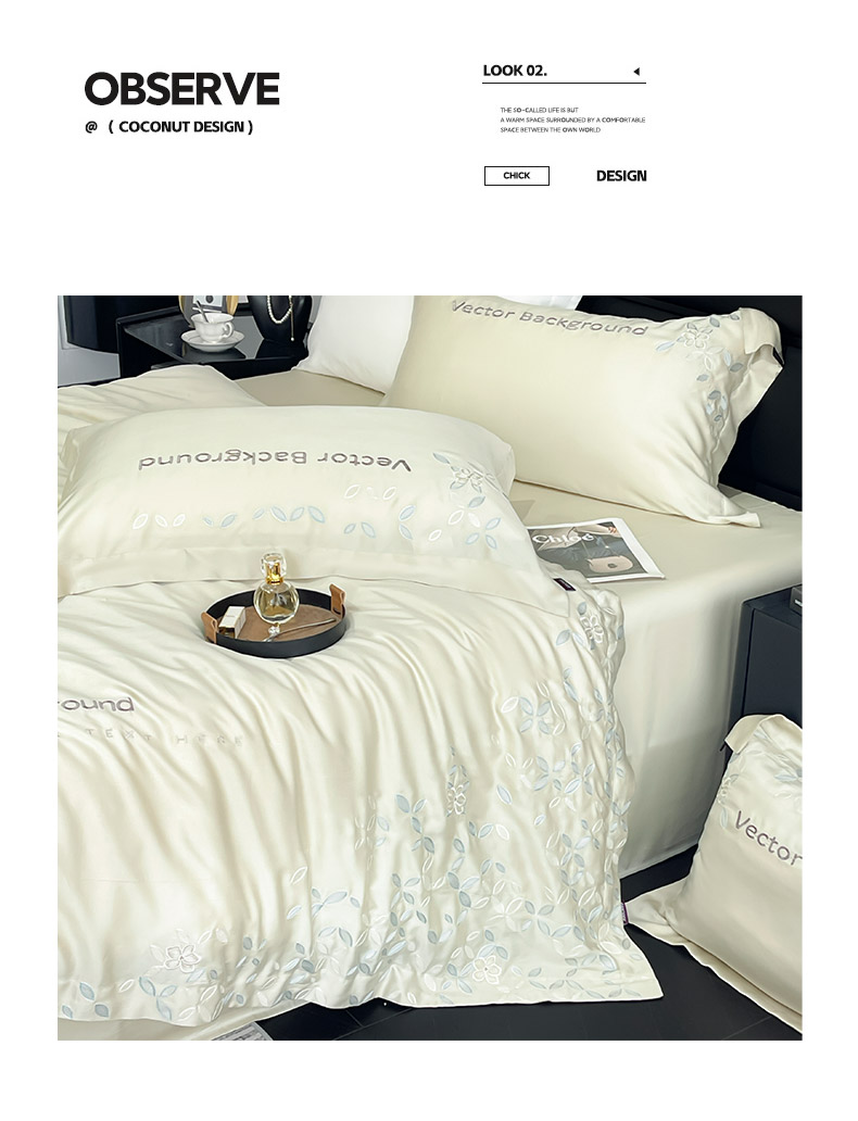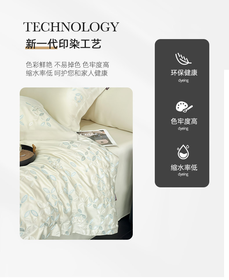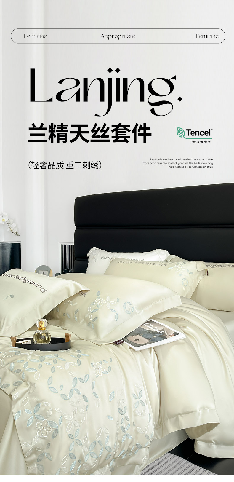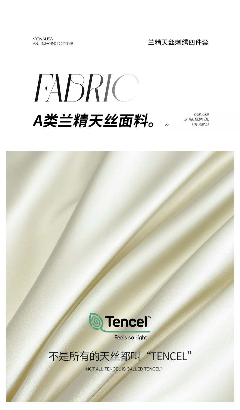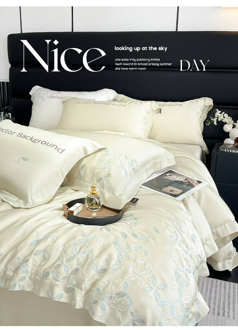 商品名称:2025新款床上用品【夏季爆款】A类兰精天丝四件套真丝重工刺绣被套高端轻奢风纯色 唐云-香草杏