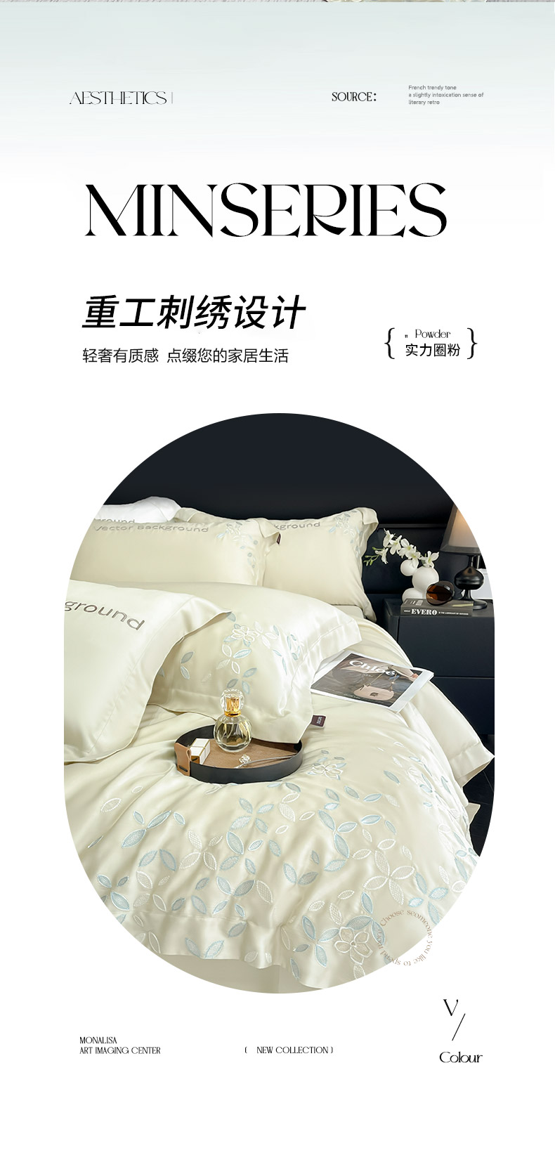 (总)2025新款轻奢风A类100支长绒棉四件套全棉纯棉重工刺绣床单床笠夹棉床笠床盖款高端床上用品-星慕,白粉,白蓝,茶绿,黛紫,慕蓝,奶玉,颜粉