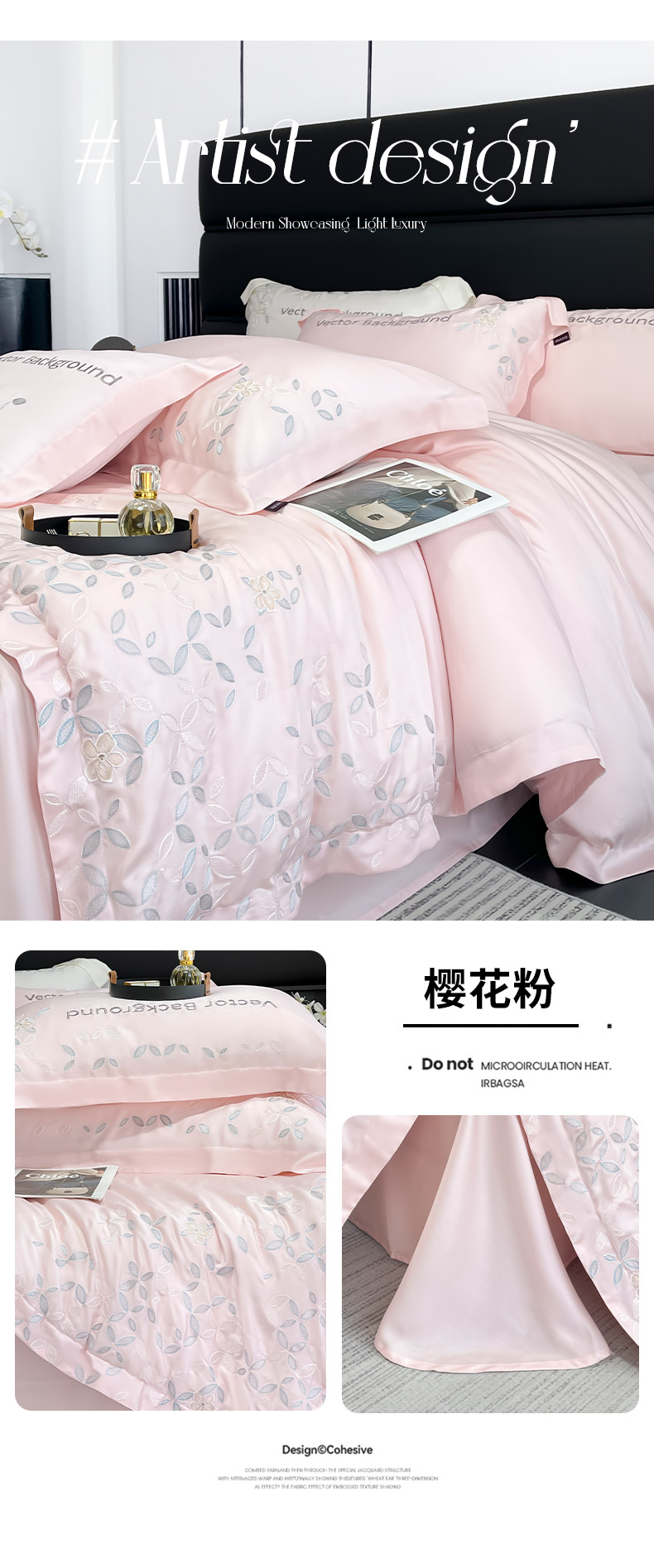(总) 2025春夏长绒棉四件套纯棉全棉轻奢风床单被套重工刺绣床上用品,芊羽梦-白粉,芊羽梦-茶绿,芊羽梦-黛紫,芊羽梦-慕蓝,芊羽梦-颜粉