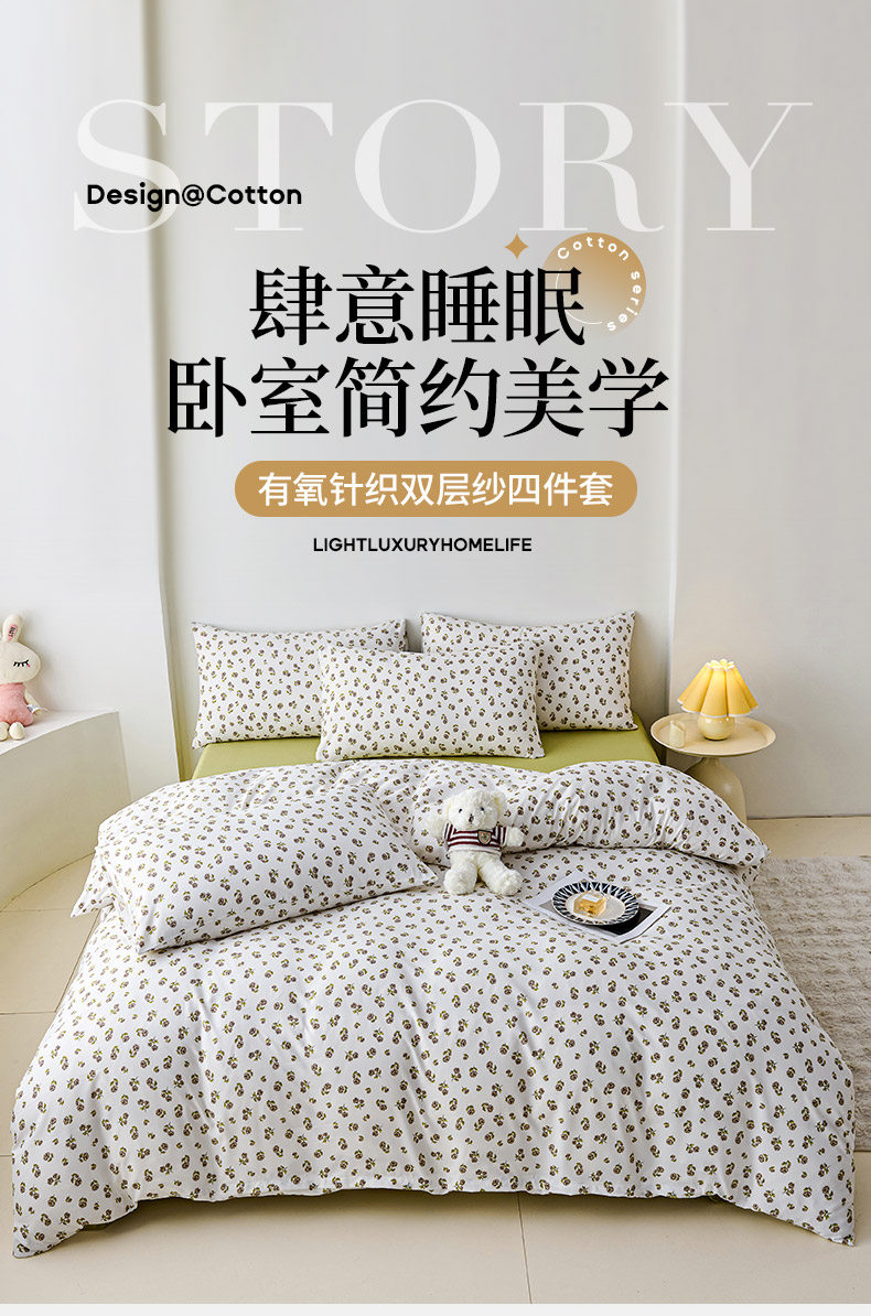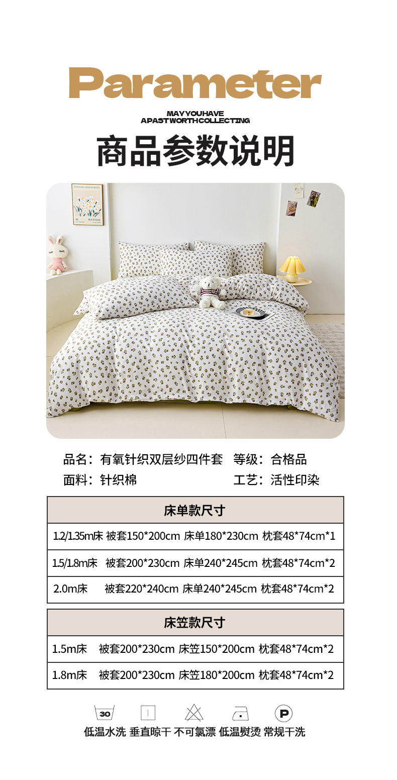 商品名称:爱诗诺家纺 2025新款有氧高克重针织棉双层纱四件套 余笙