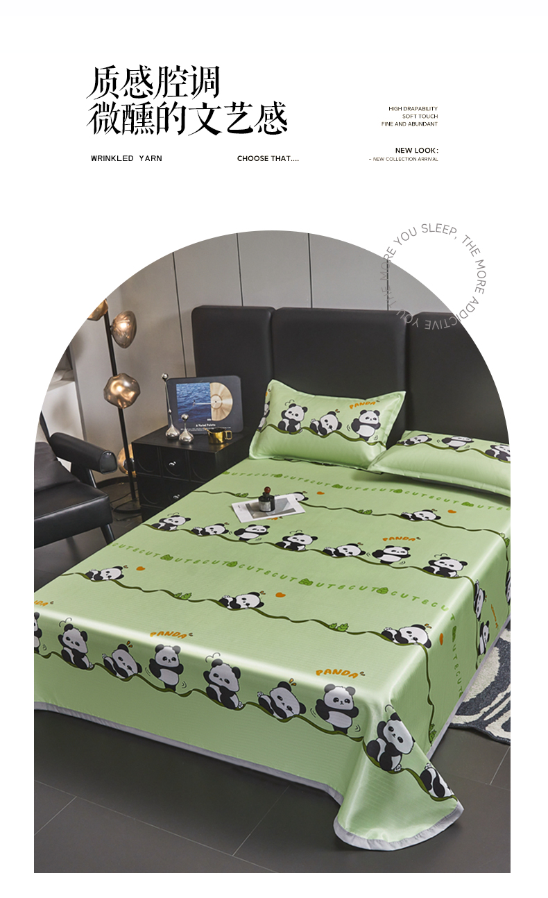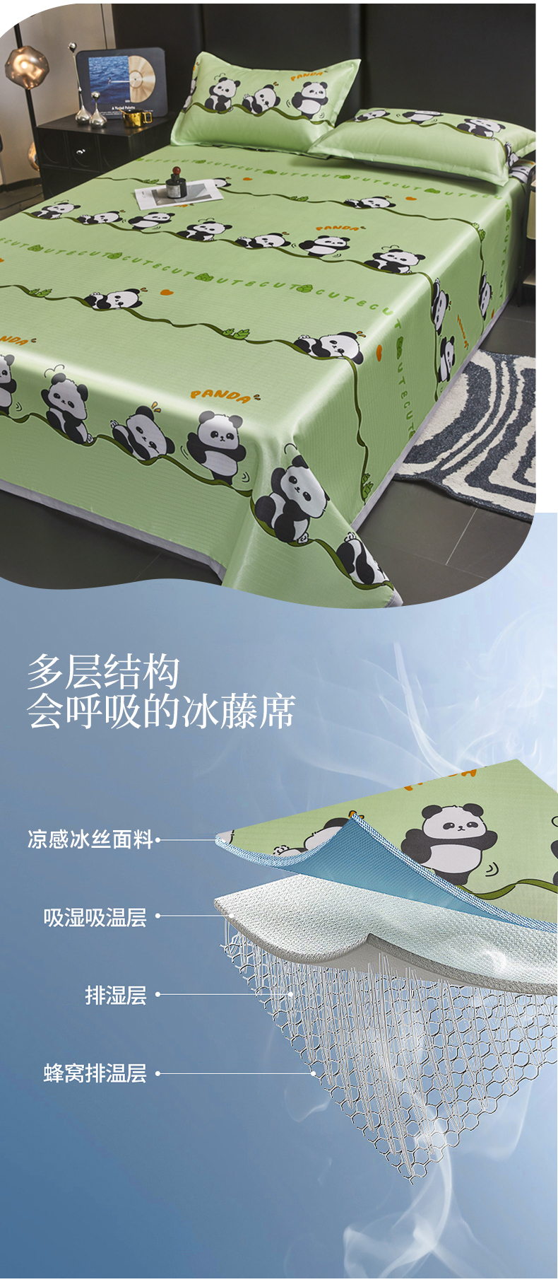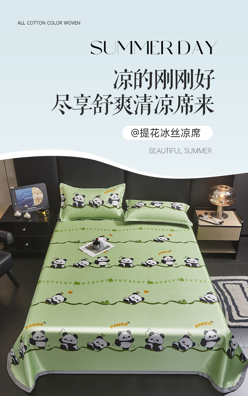 商品名称:悦织湾家纺2025新款斜纹提花冰丝席三件套夏季凉感冰丝席子枕套1对夏凉席床单 熊猫-绿