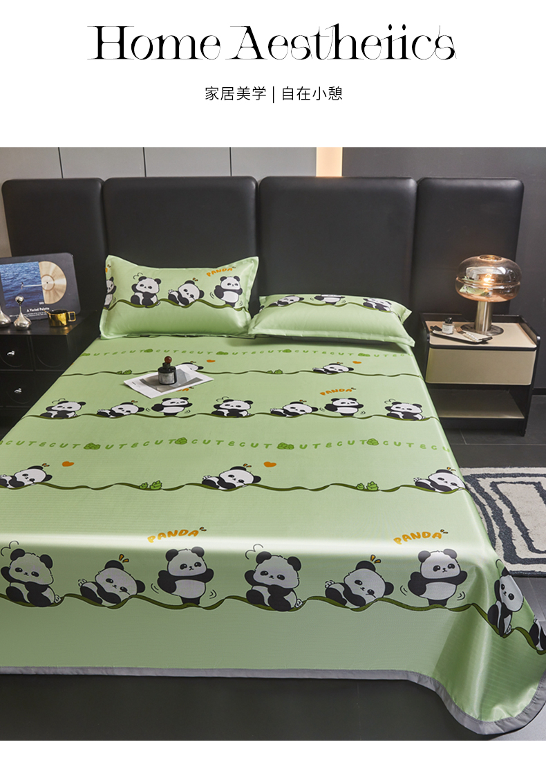 悦织湾家纺2025新款斜纹提花冰丝席三件套夏季凉感冰丝席子枕套1对夏凉席床单 熊猫-绿