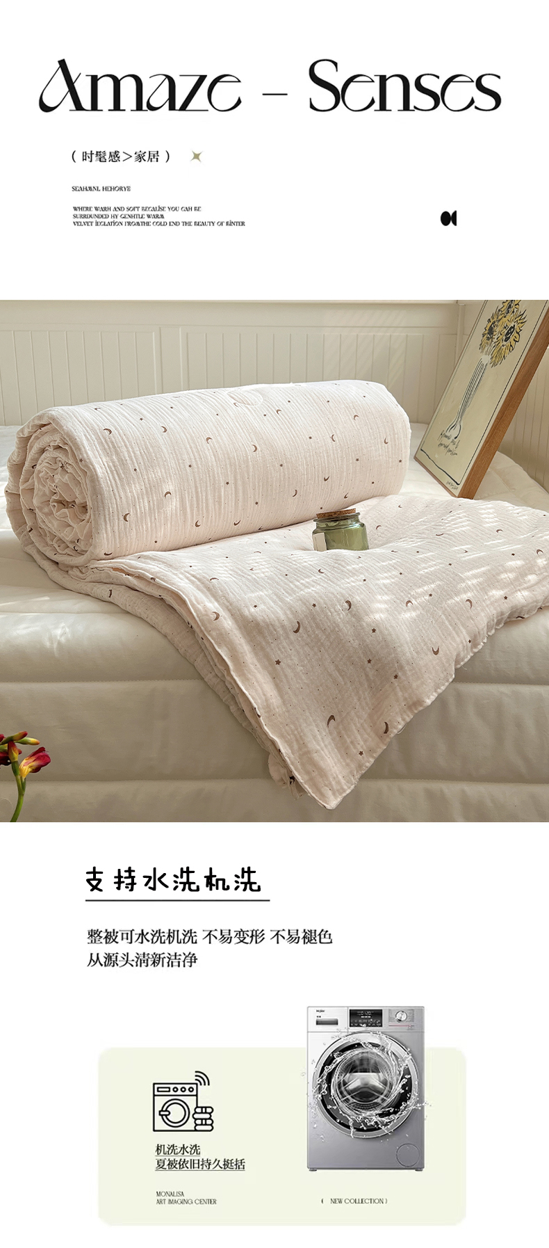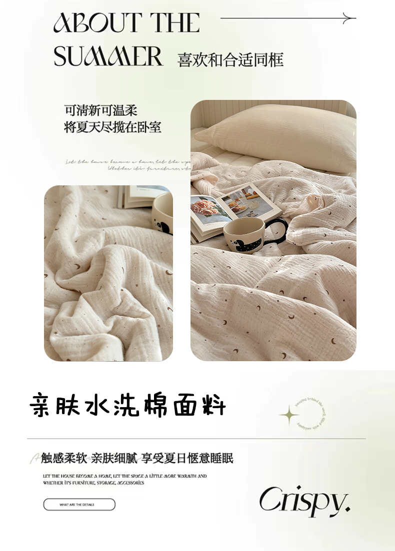繁花家居 2025新款AA版水洗棉超软夏被直播热款 星月