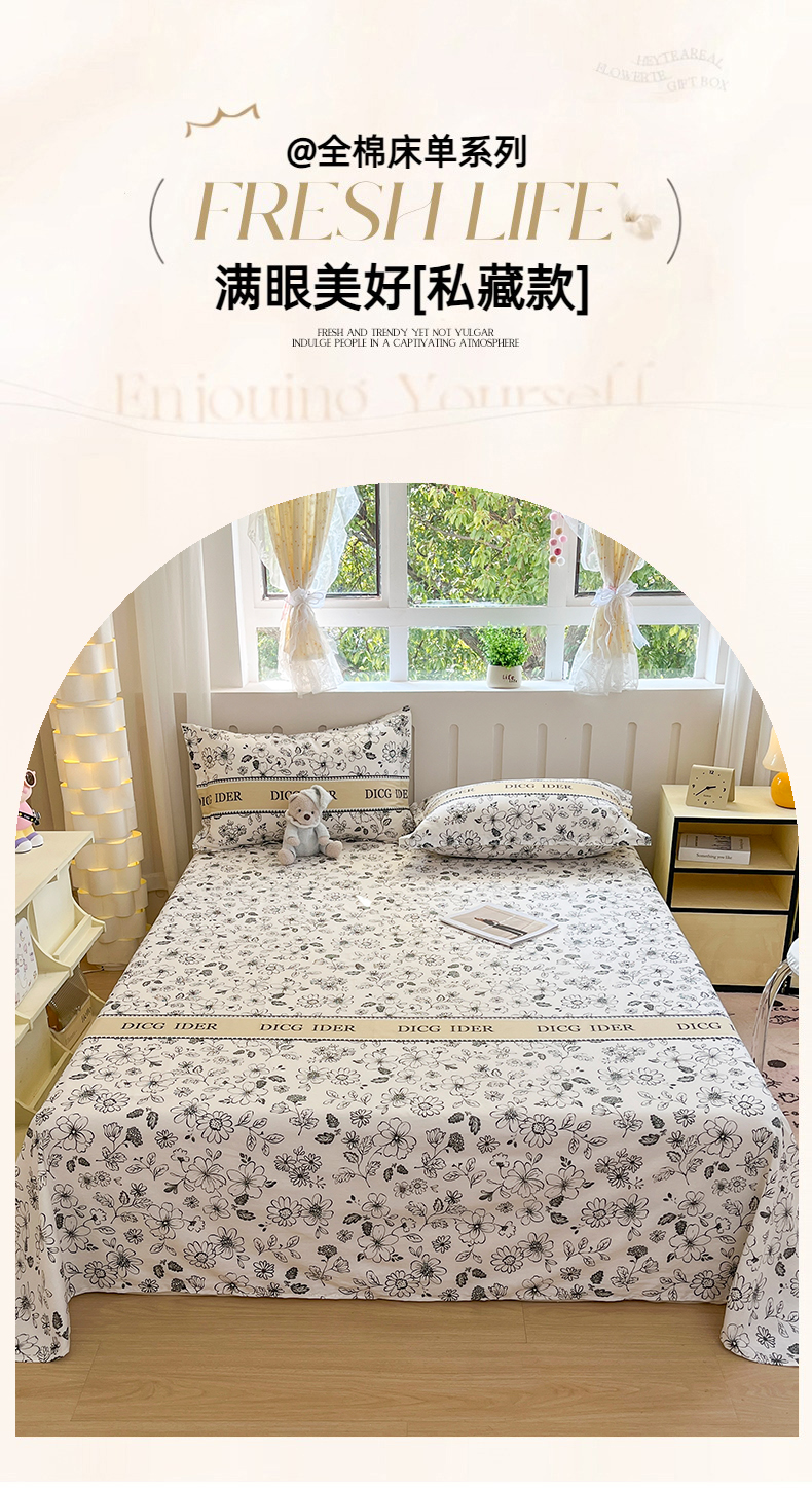 • 91家纺网 家纺一手货源 找家纺 大吉 2025新款亲肤舒适全棉纯棉喷气小清新印花系列单床单床单单件单品床单 赫本