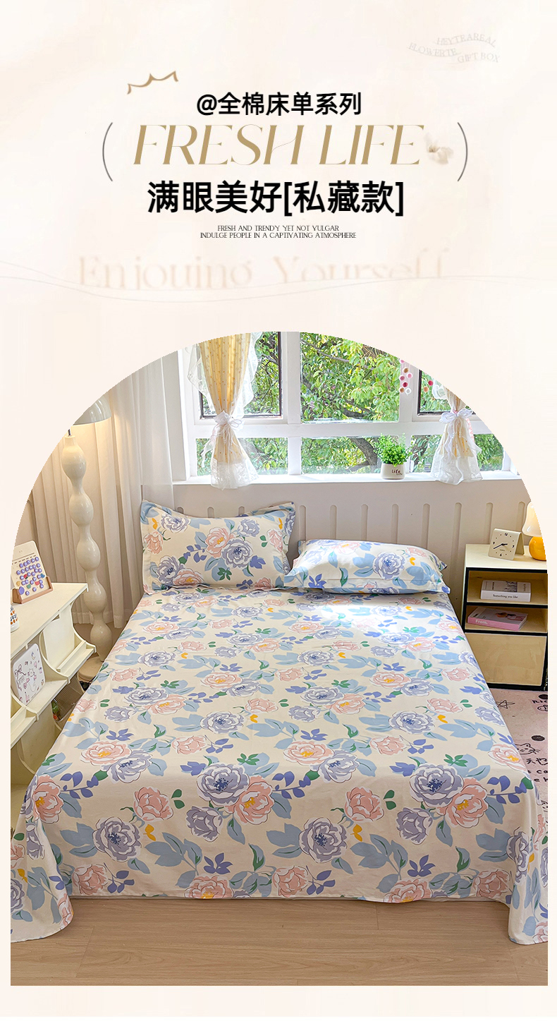 (总)大吉 2025新款亲肤舒适全棉纯棉喷气小清新印花系列单床单床单单件单品床单,巴洛克,初夏,春日,法南玫瑰,法式庄园,繁花,复古向日葵,赫本,花间,花语蔷薇,花园兔,卡迪,蜡笔小象,萌宠日记,萌萌潘达,梦幻花园,秘境,山茶花开,甜梦,童话,向往,小欢喜,小莓好,幸福时光,樱珞,雨落芭蕉,紫薰,紫韵