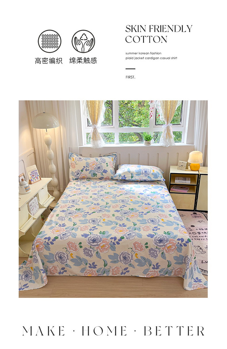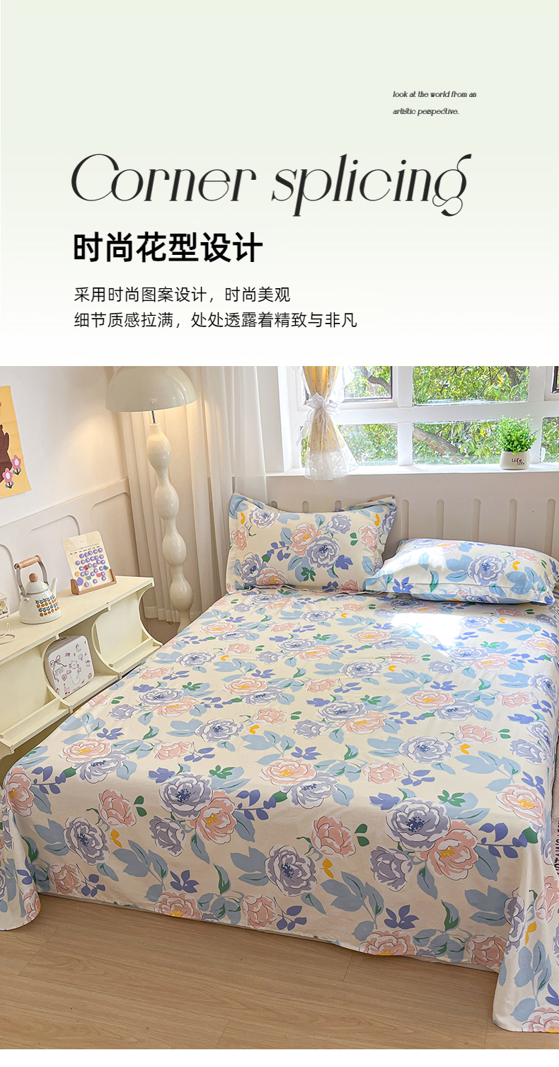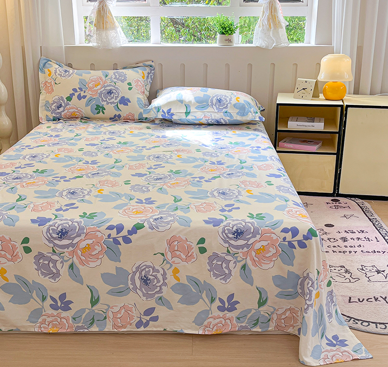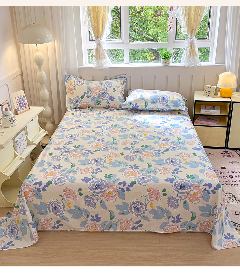 • 91家纺网 家纺一手货源 找家纺 大吉 2025新款亲肤舒适全棉纯棉喷气小清新印花系列单床单床单单件单品床单 山茶花开