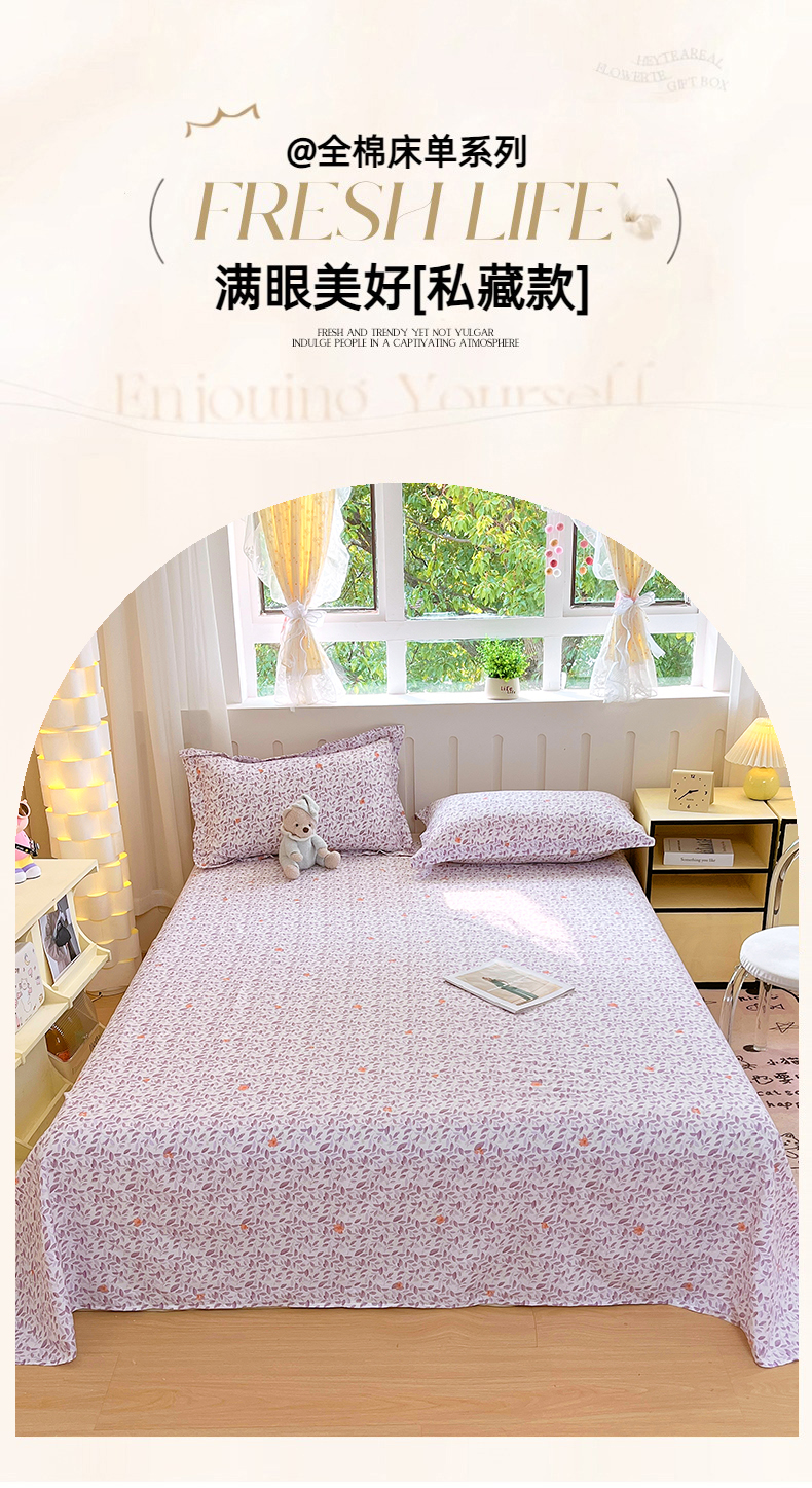 • 91家纺网 家纺一手货源 找家纺 大吉 2025新款亲肤舒适全棉纯棉喷气小清新印花系列单床单床单单件单品床单 紫薰