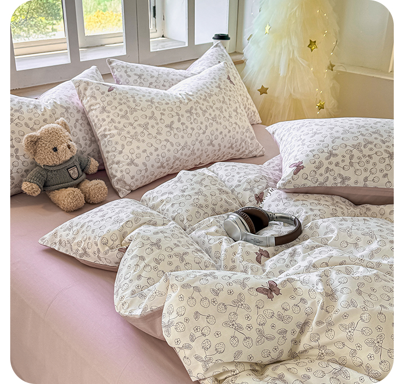 (总)芊寻家居 2025新款13372全棉印花系列四件套,柏拉图,草莓甜心,朵琦,广岛之恋,花丛 粉,幻蝶 粉,兰黛 绿,玫瑰情缘 粉,梦境女孩 米,茉莉清雨 紫,暮云 灰,青柠,如约,盛夏,小时代,小熊日记 棕,雅姿,芷若