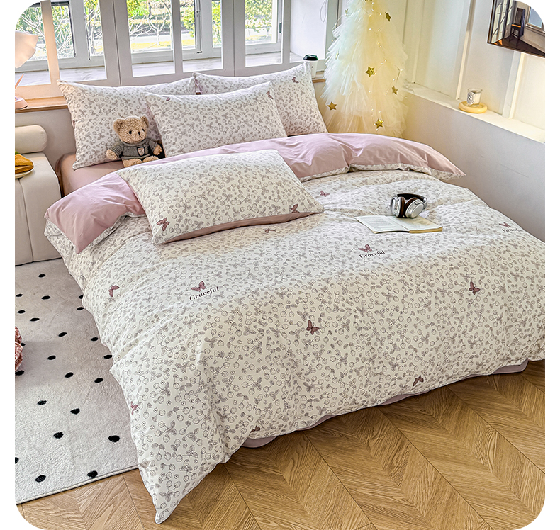 商品名称:芊寻家居 2025新款13372全棉印花系列四件套 幻蝶 粉