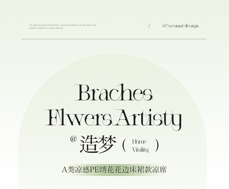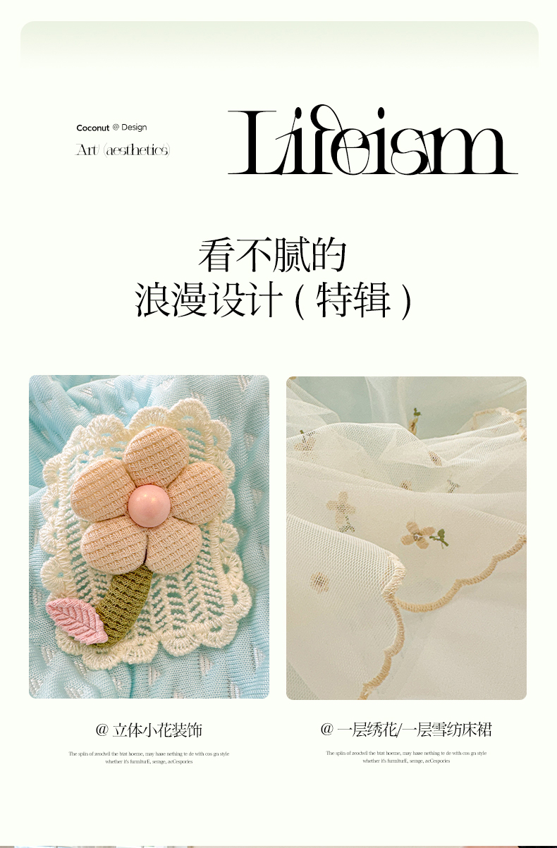 蓝邻家纺 2025春夏新款PE提花雪纺+绣花花边凉席席子 夏花-蓝