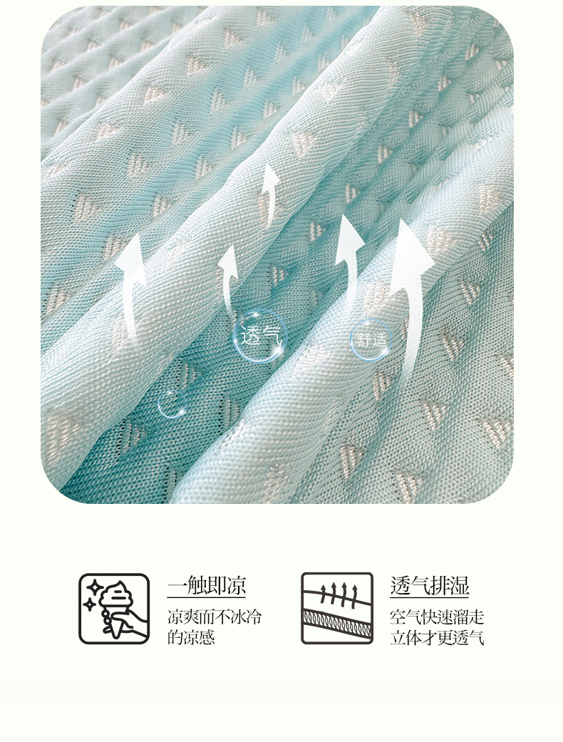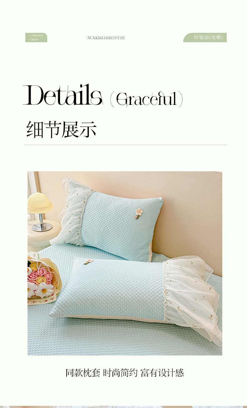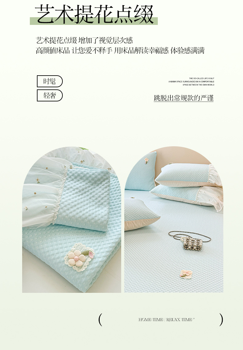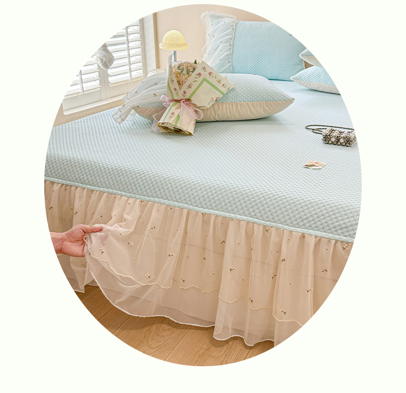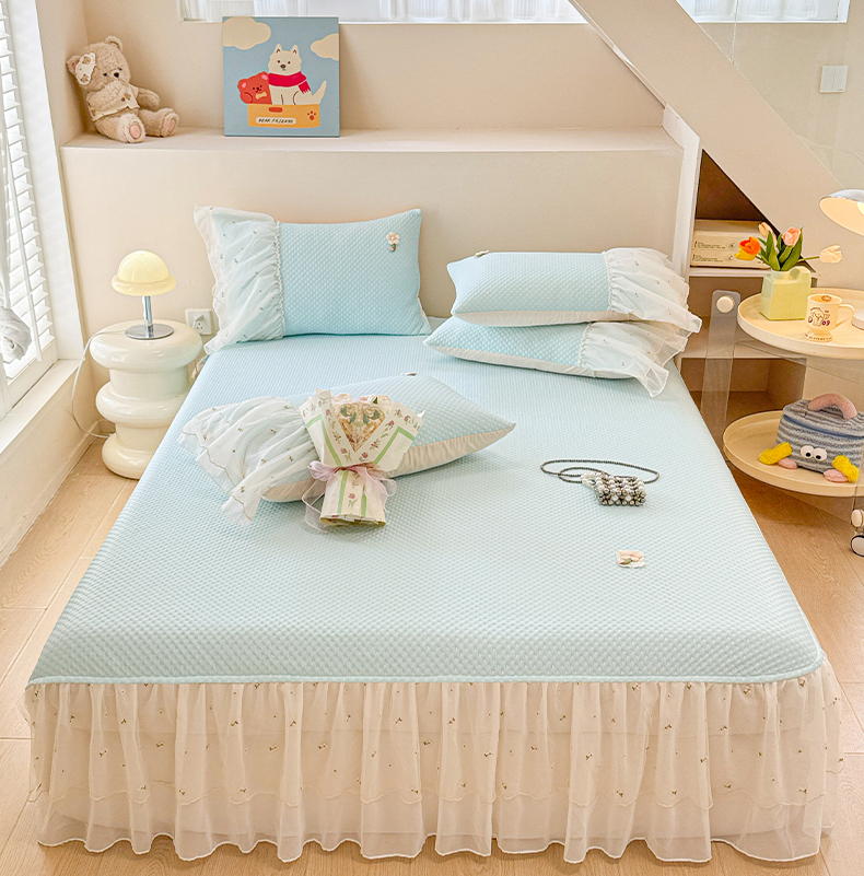 商品名称:蓝邻家纺 2025春夏新款PE提花雪纺+绣花花边凉席席子 夏花-蓝