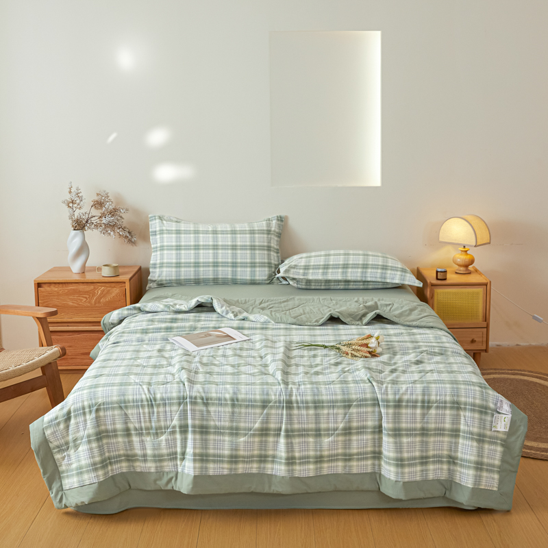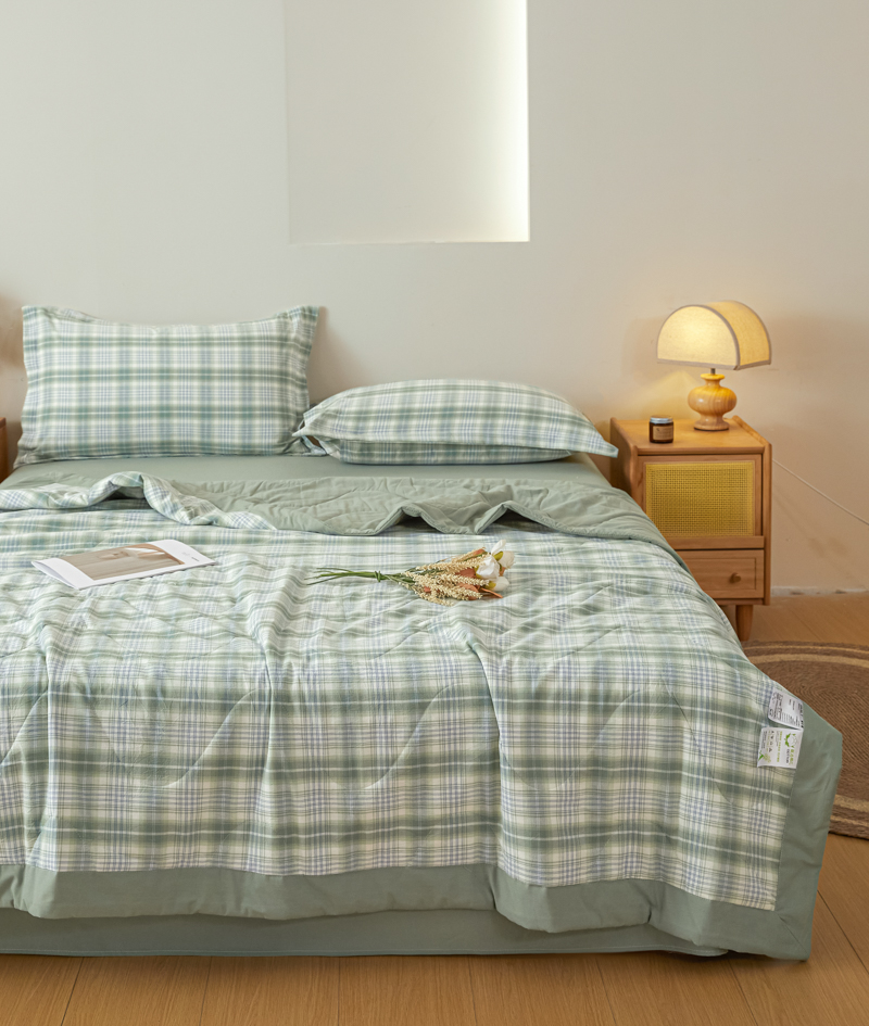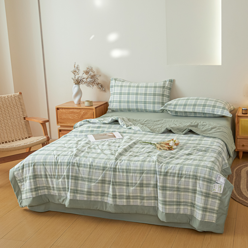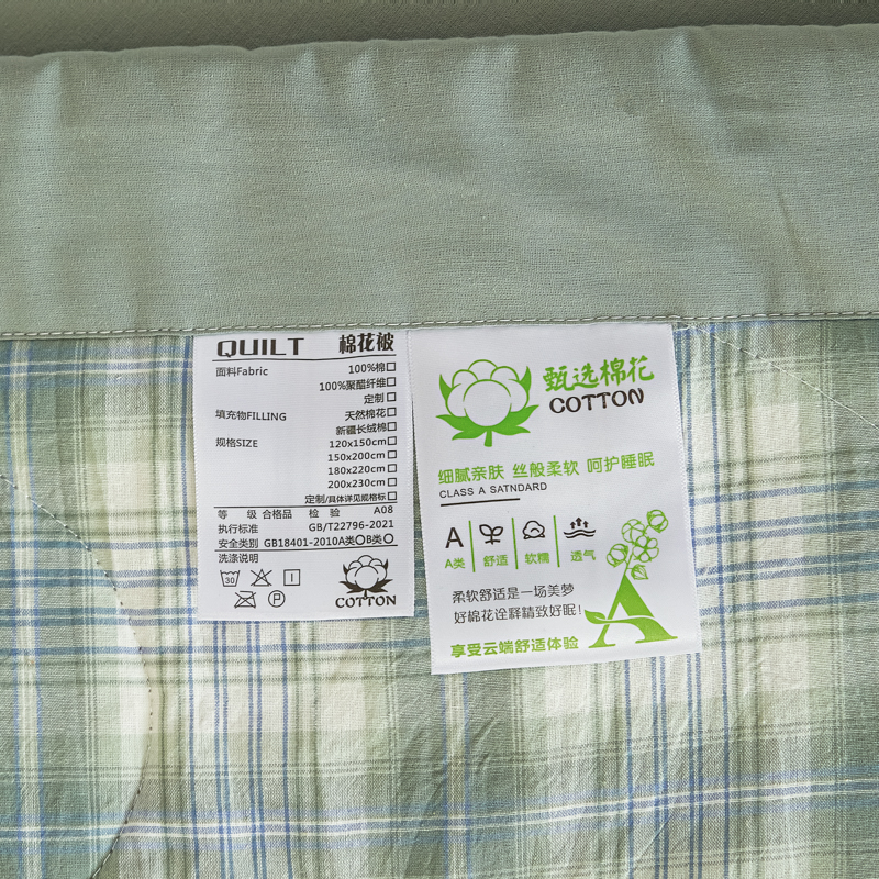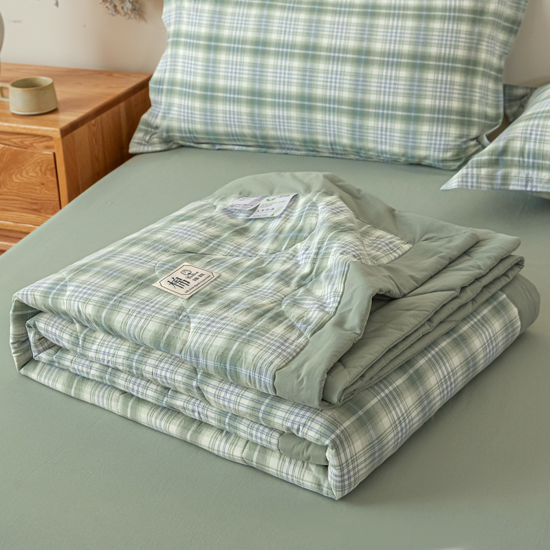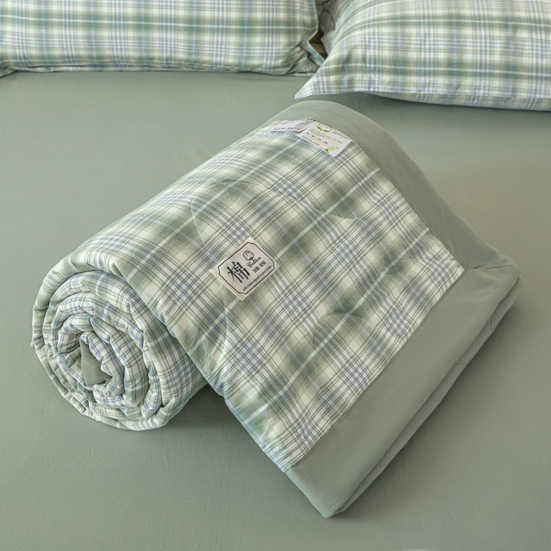 商品名称:2025新款A类色织新疆棉抗菌夏被棉花被 格雅 绿