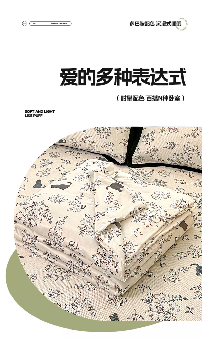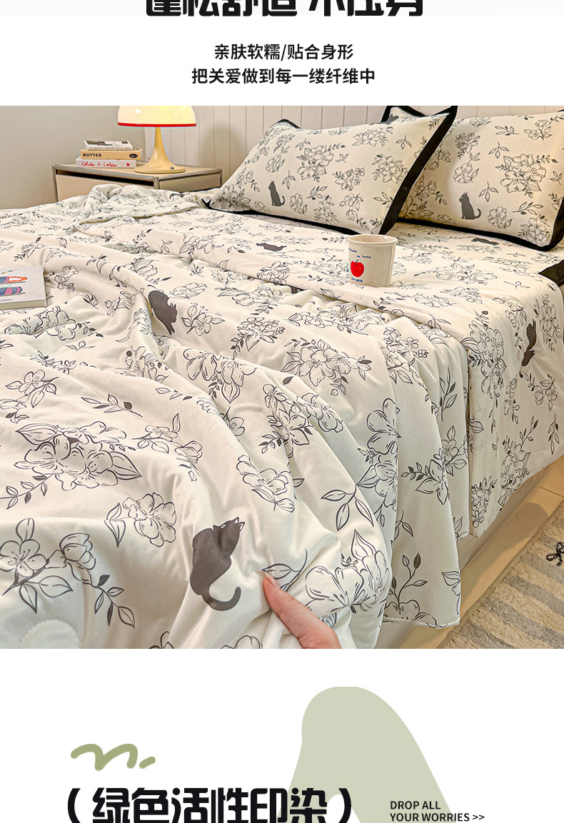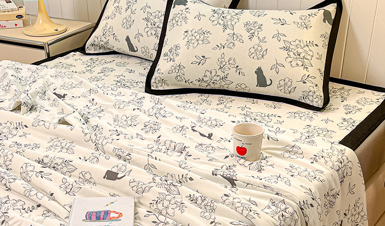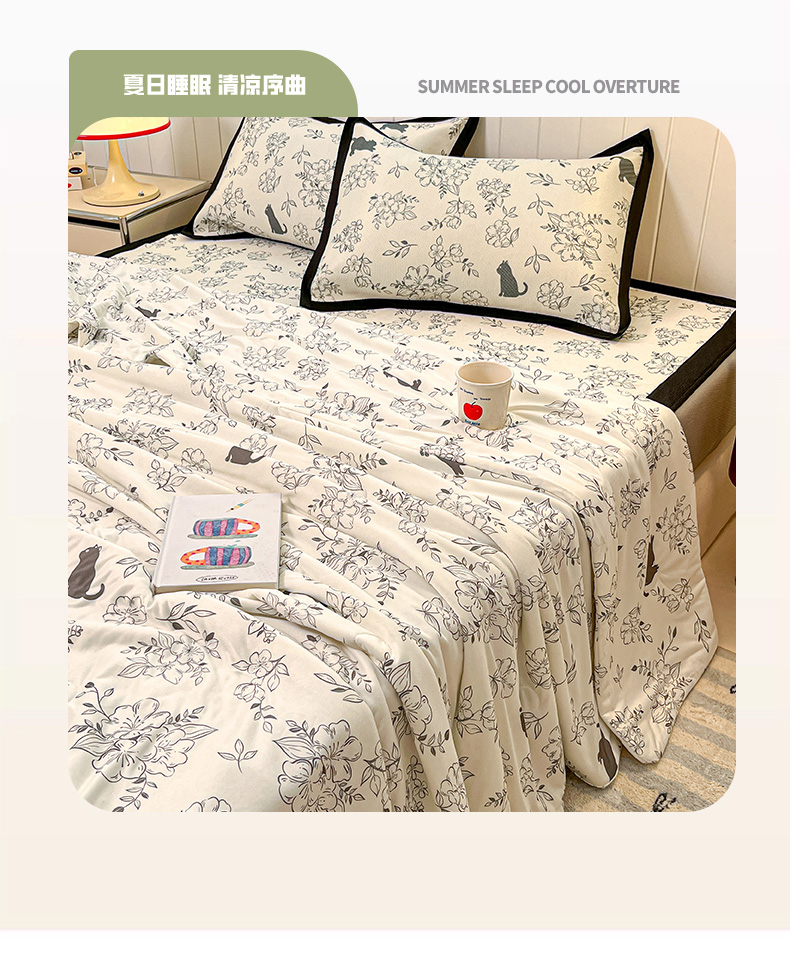 当前位置: 91家纺网 > 商品网购 > 床品套件 > 四件套 > 夏被四件套 > 安哆啦家纺 2025新款A类印花冰藤凉席针织棉牛奶丝夏被夏凉被空调被四件套 猫先生