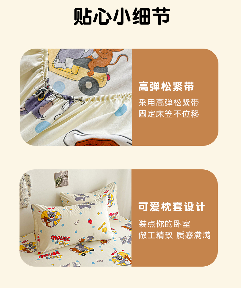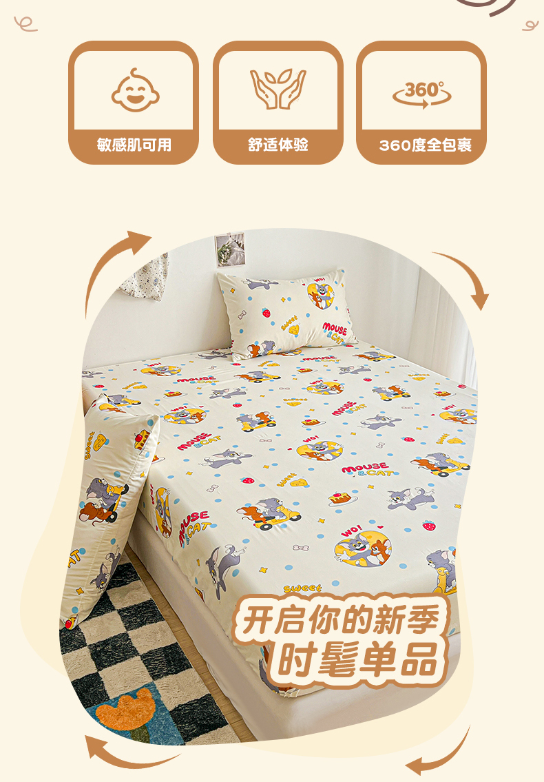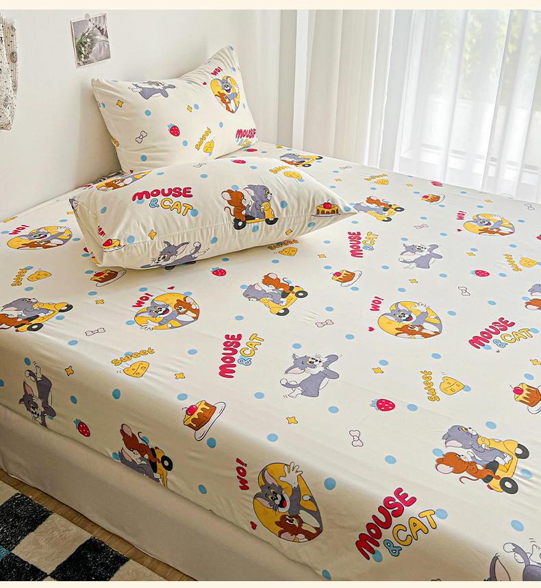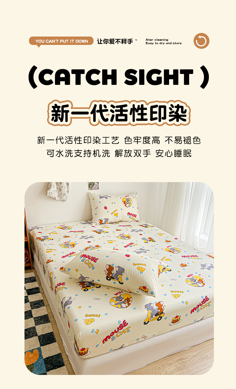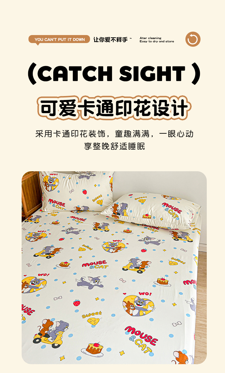 商品名称:罗亿家纺 2025新款卡通水洗云朵棉110g单床笠 小猫和小鼠