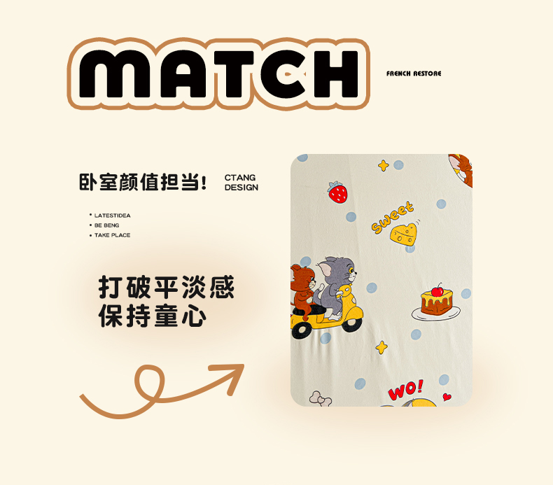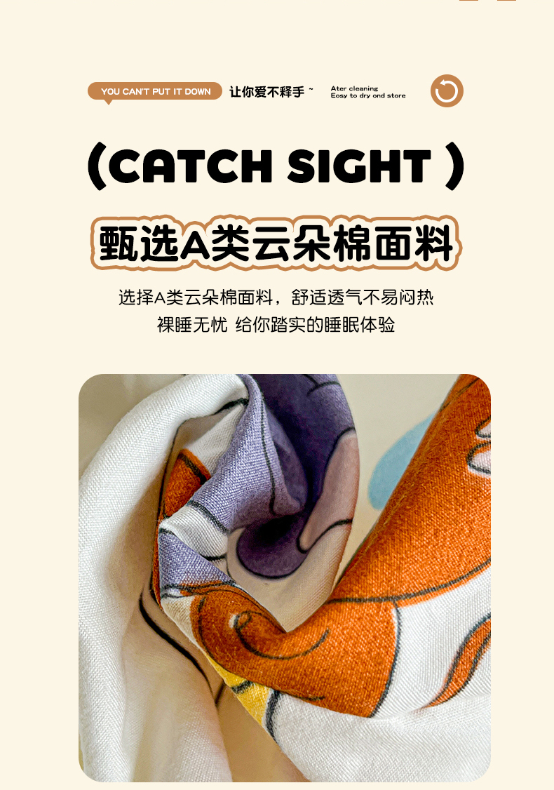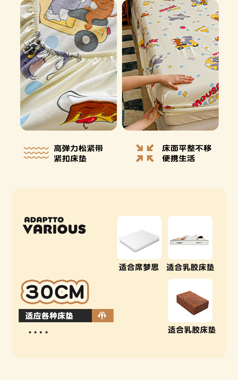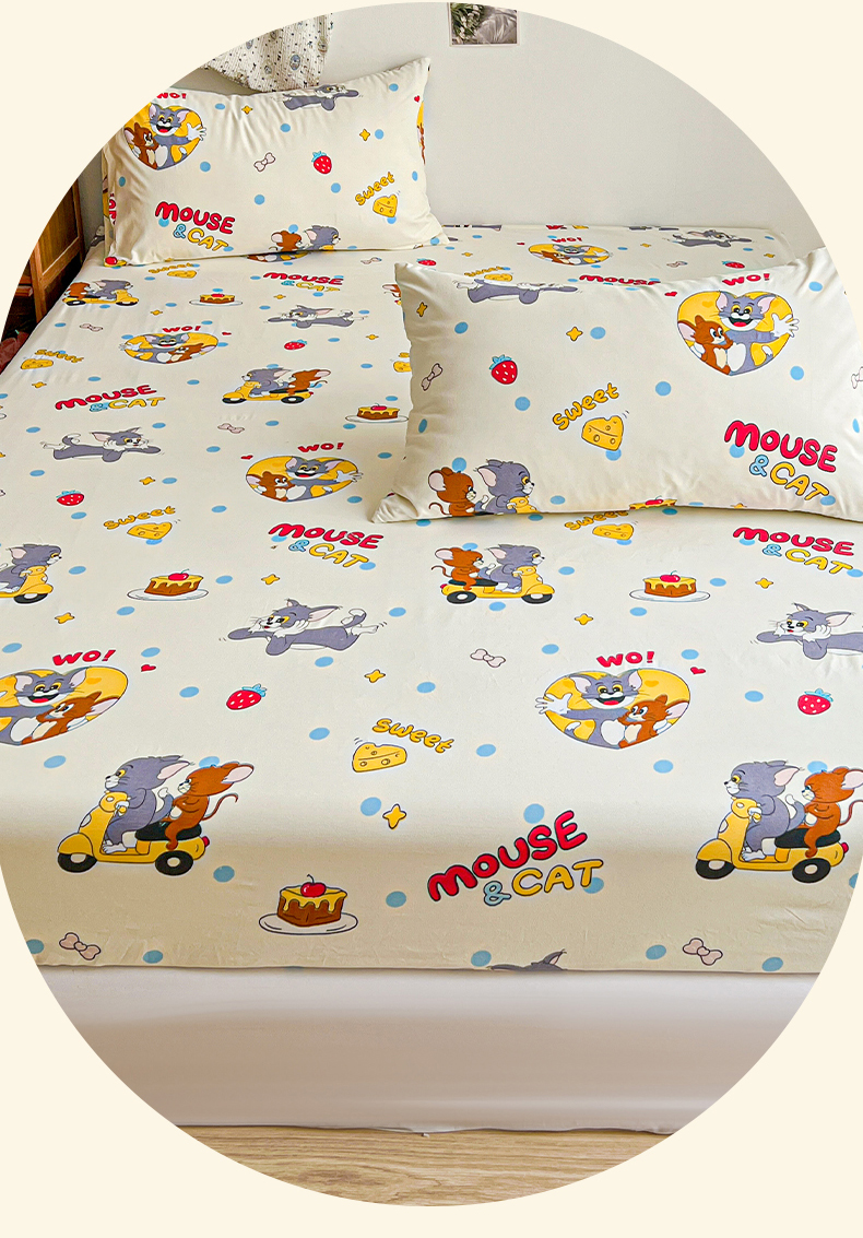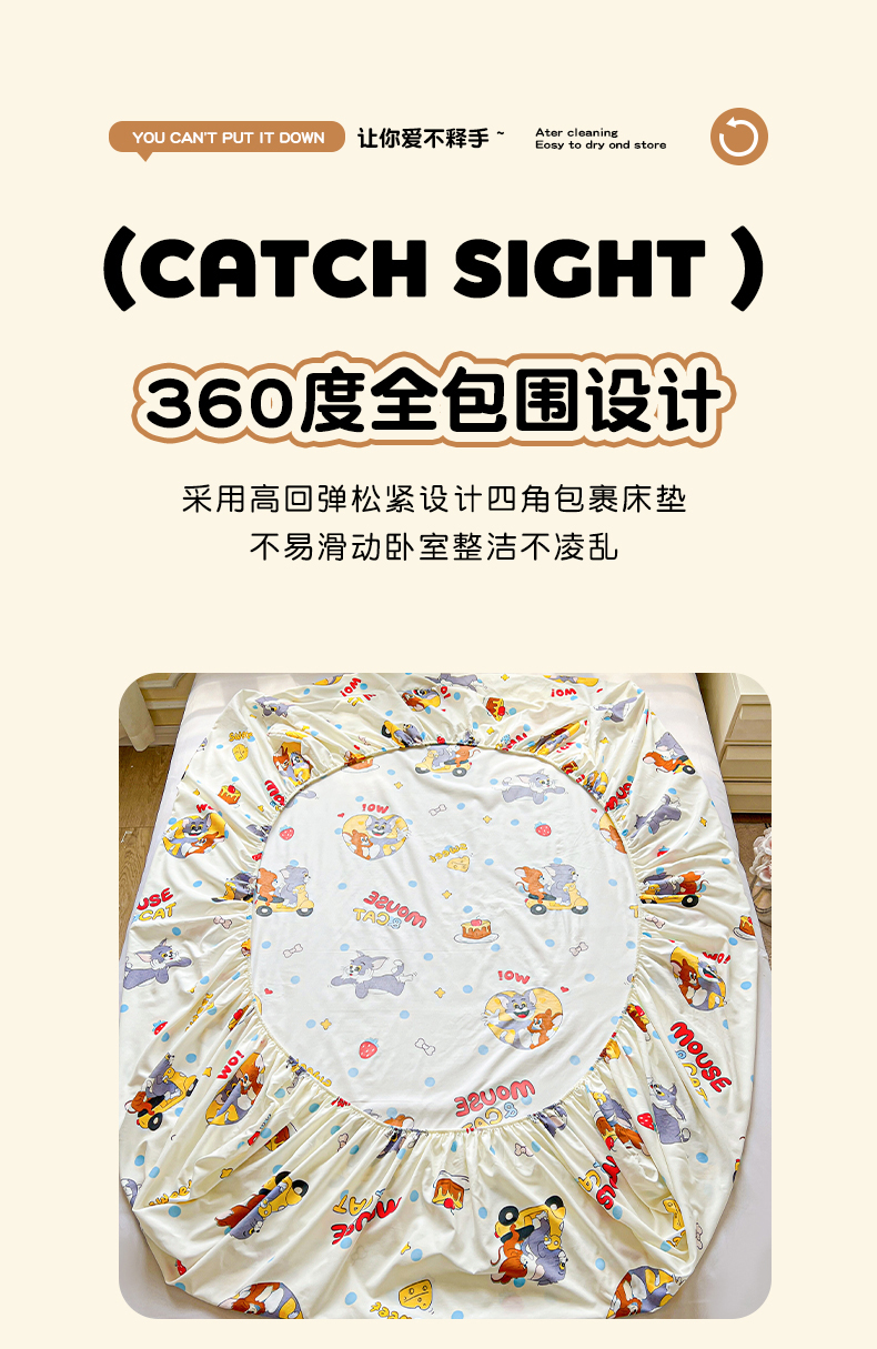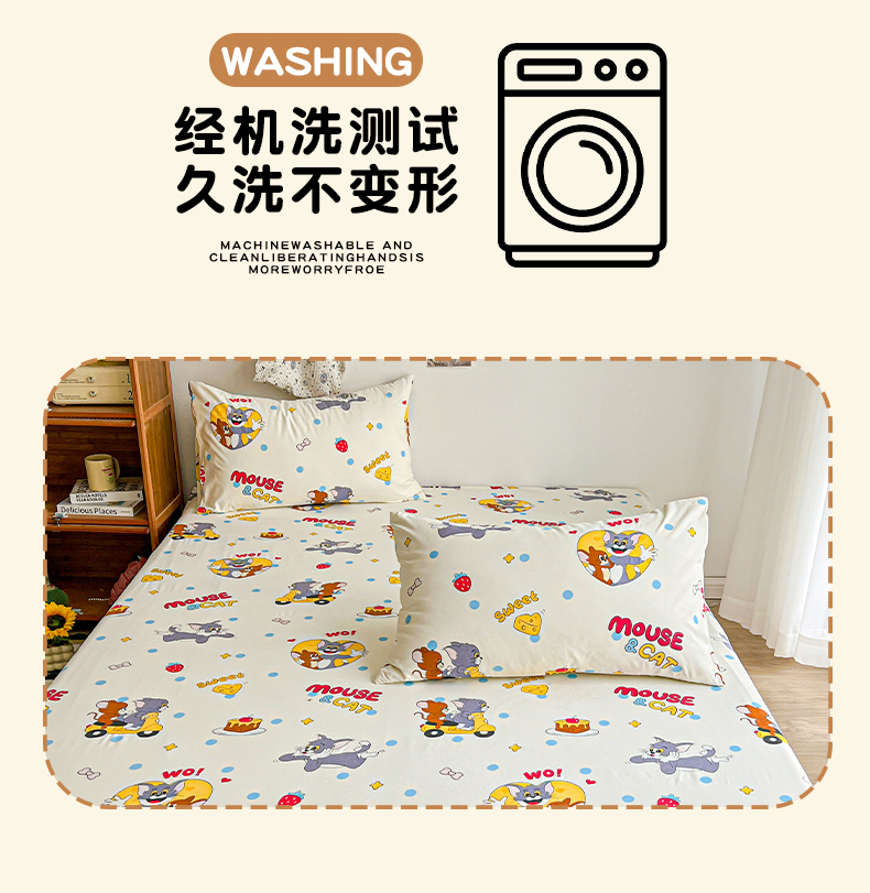 商品名称:罗亿家纺 2025新款卡通水洗云朵棉110g单床笠 小猫和小鼠