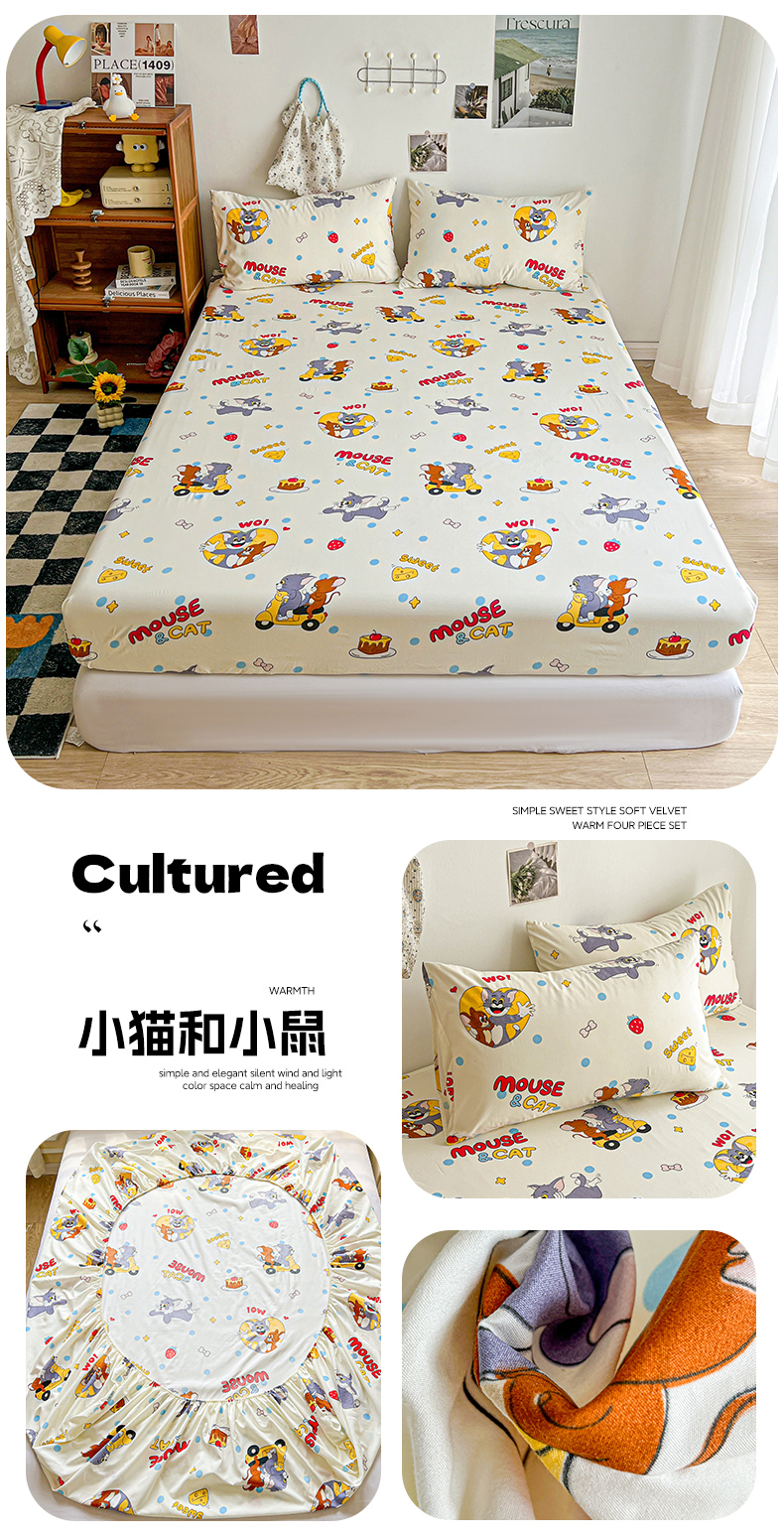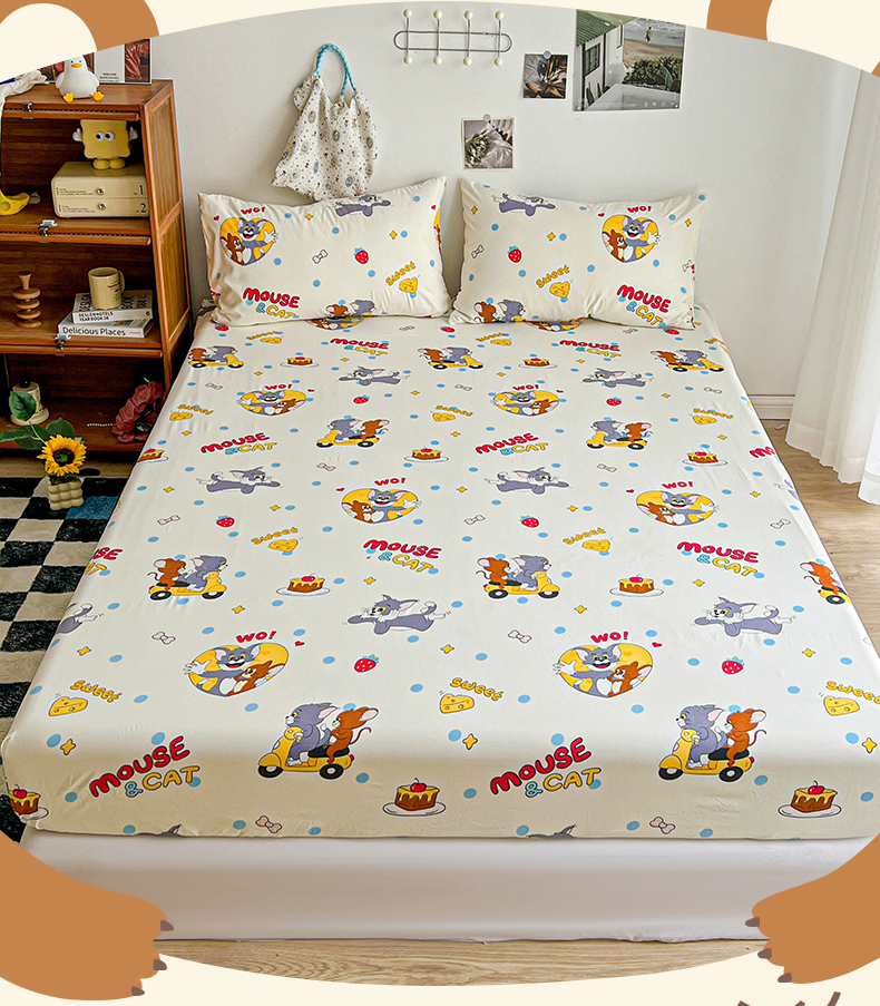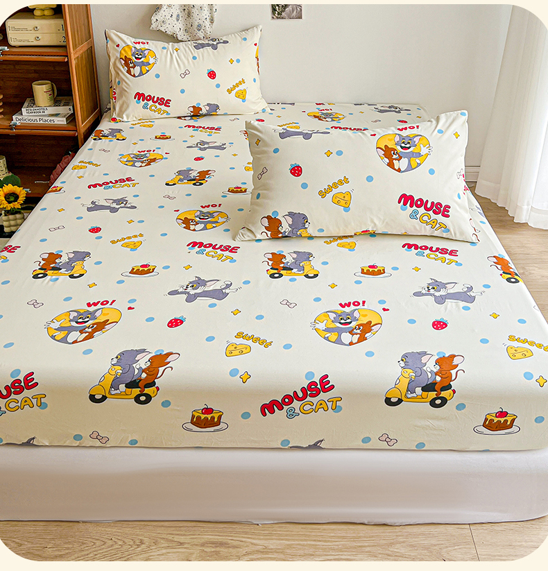 罗亿家纺 2025新款卡通水洗云朵棉110g单床笠 小猫和小鼠