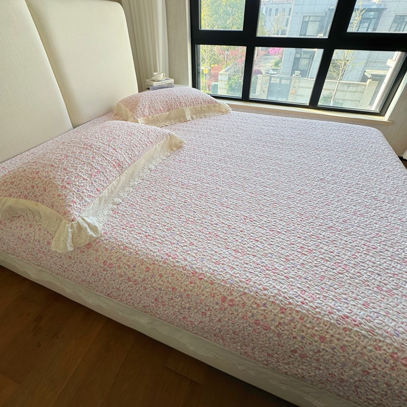 8+8 2025新款全棉双层纱床盖三件套 花镜