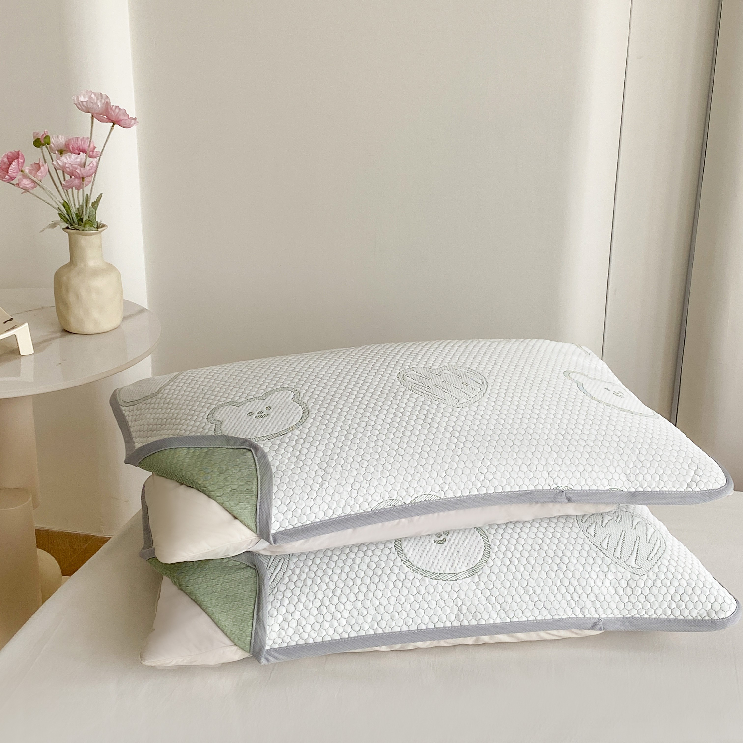 (总)乐嘉盈2025新款四季通用华夫格枕套,绿色,浅蓝,深蓝,粉色,黄色,米咖