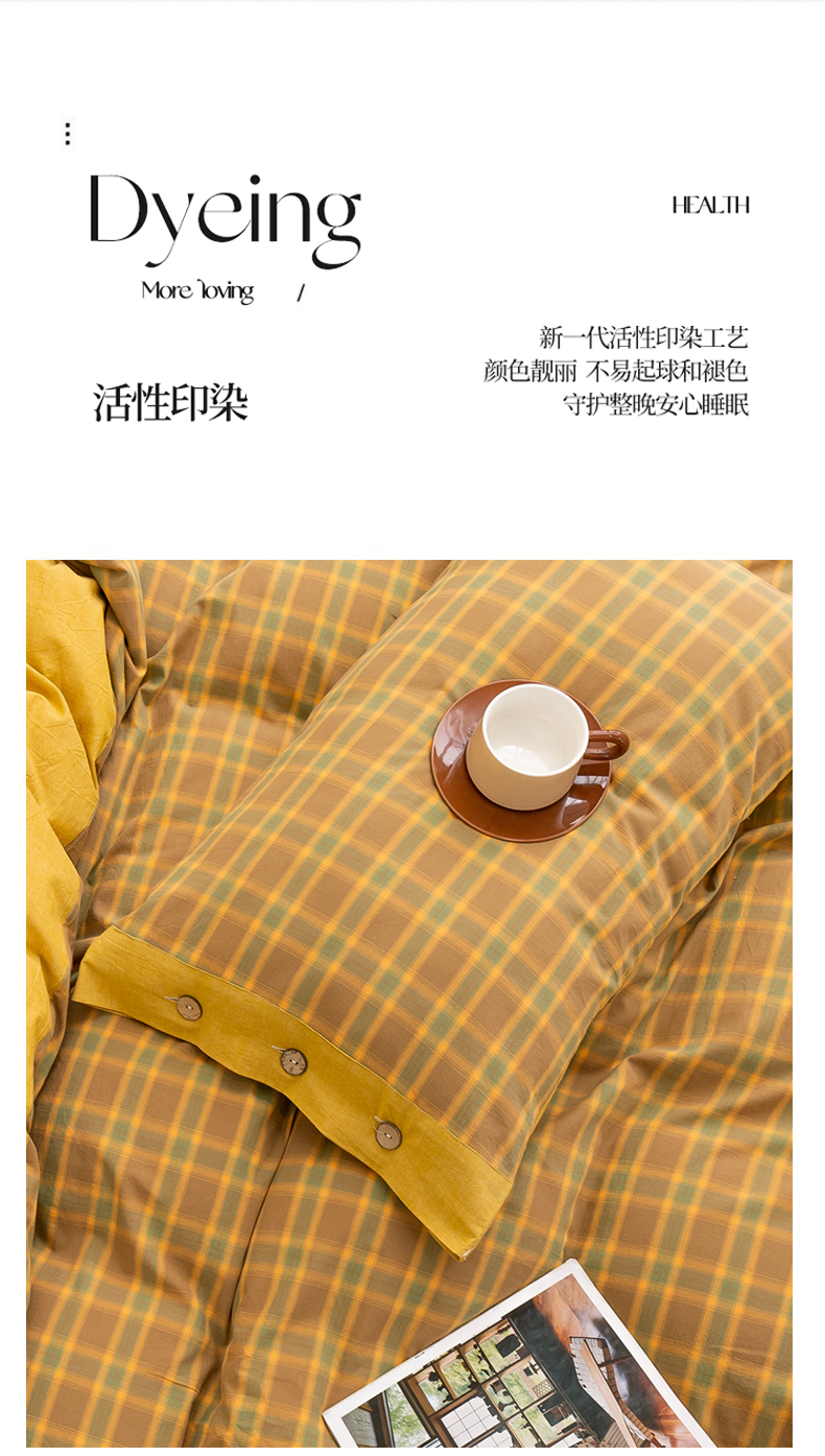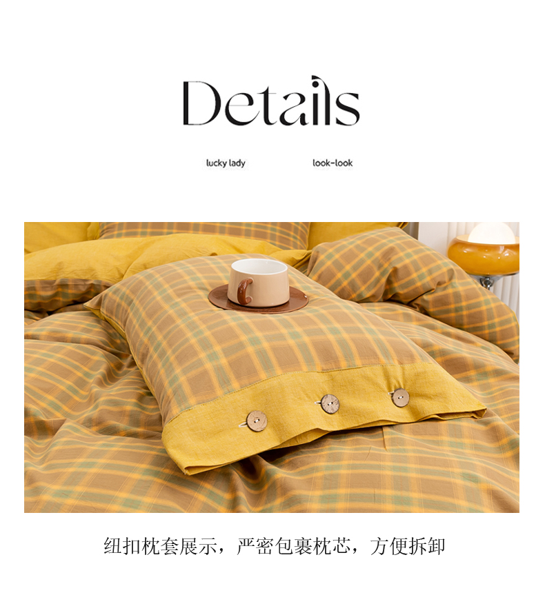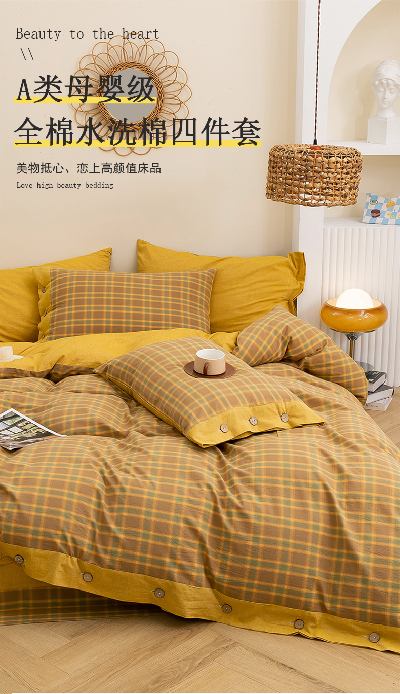 琉宿家纺 2025新款纽扣款水洗棉四件套 舒恋咖,舒恋咖