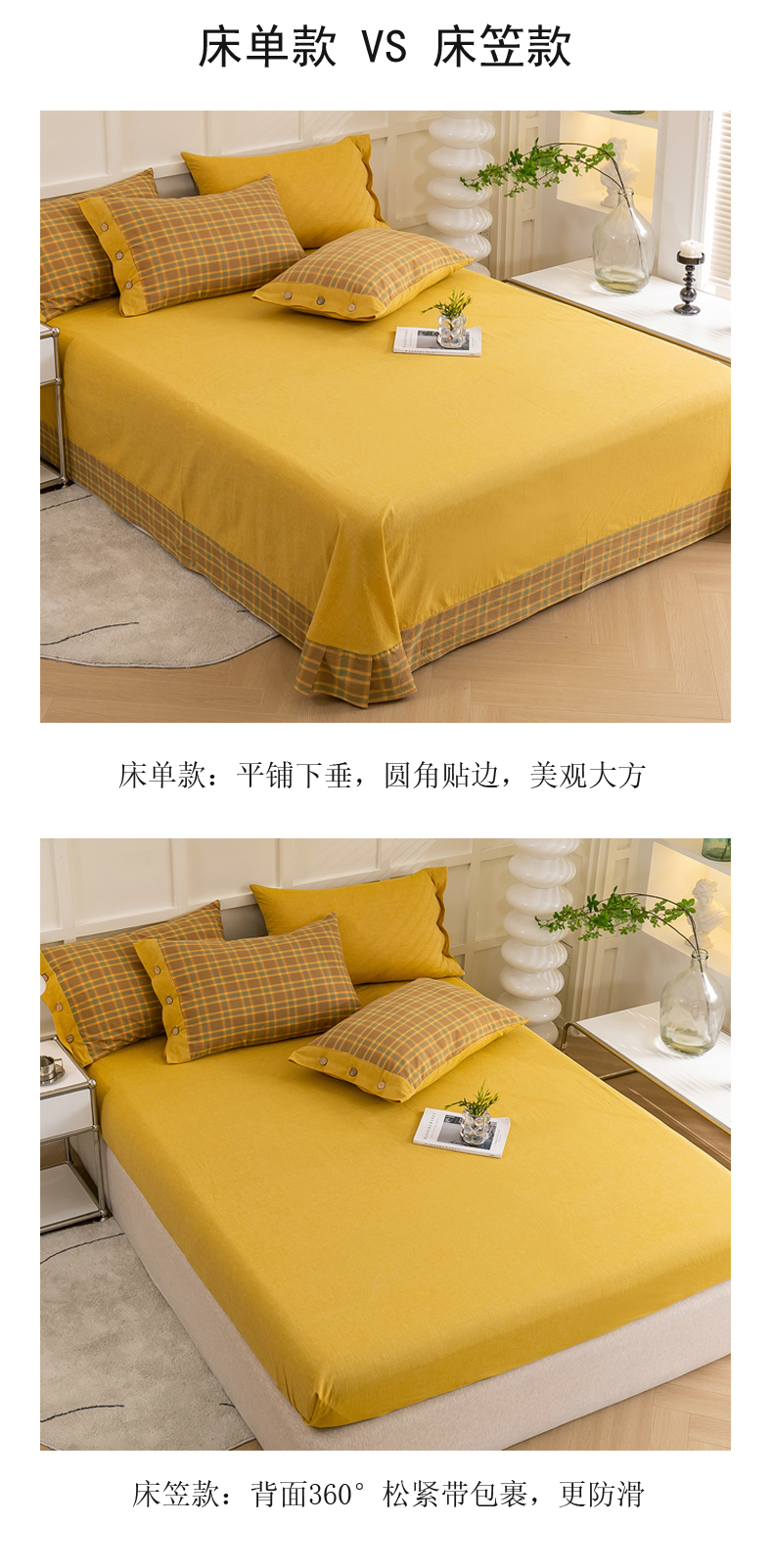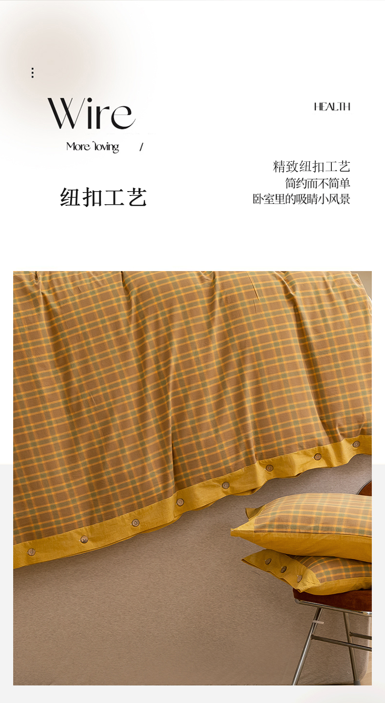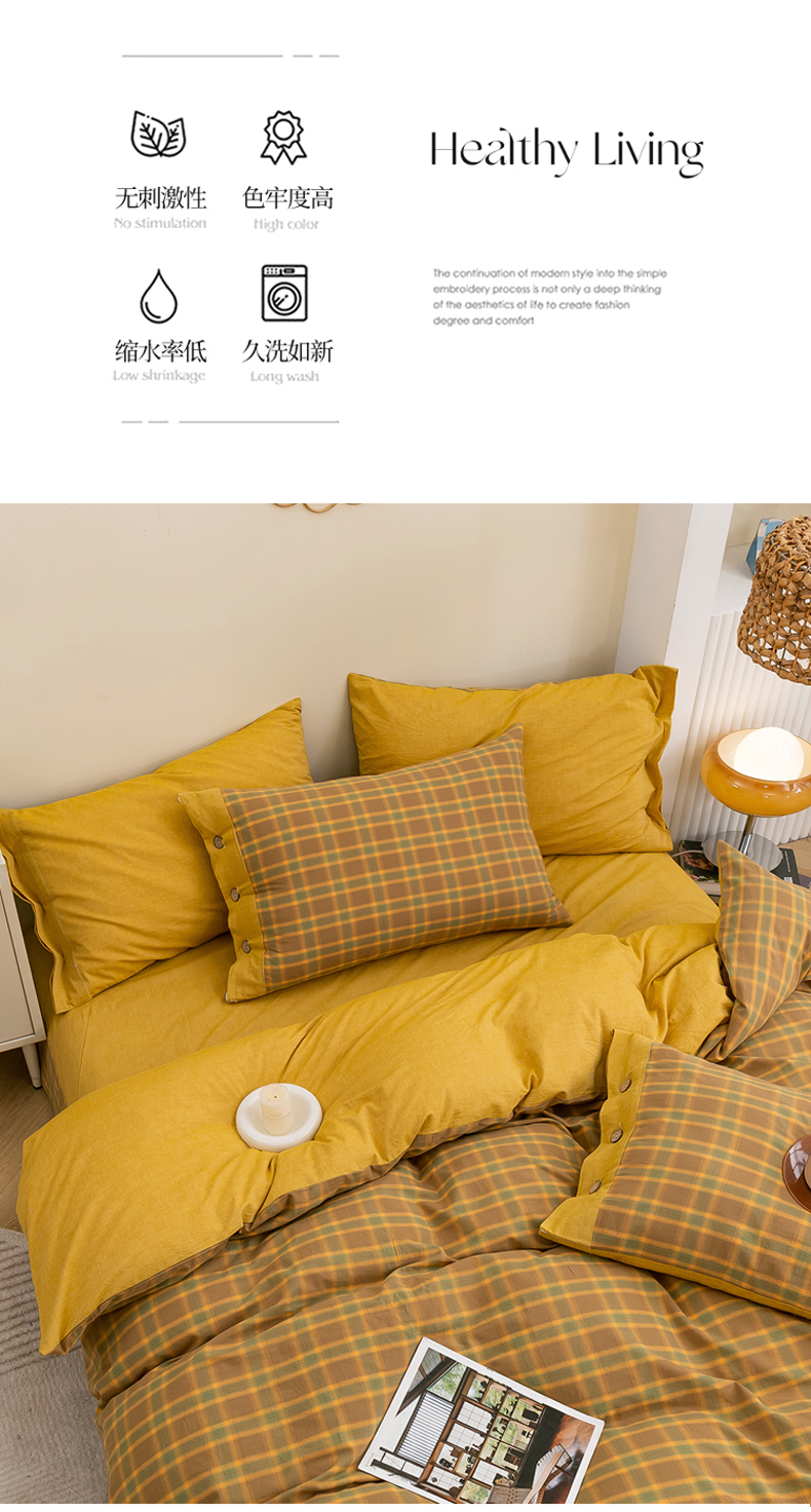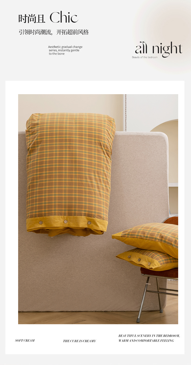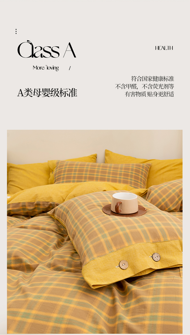 琉宿家纺 2025新款纽扣款水洗棉四件套 千颂咖,千颂咖