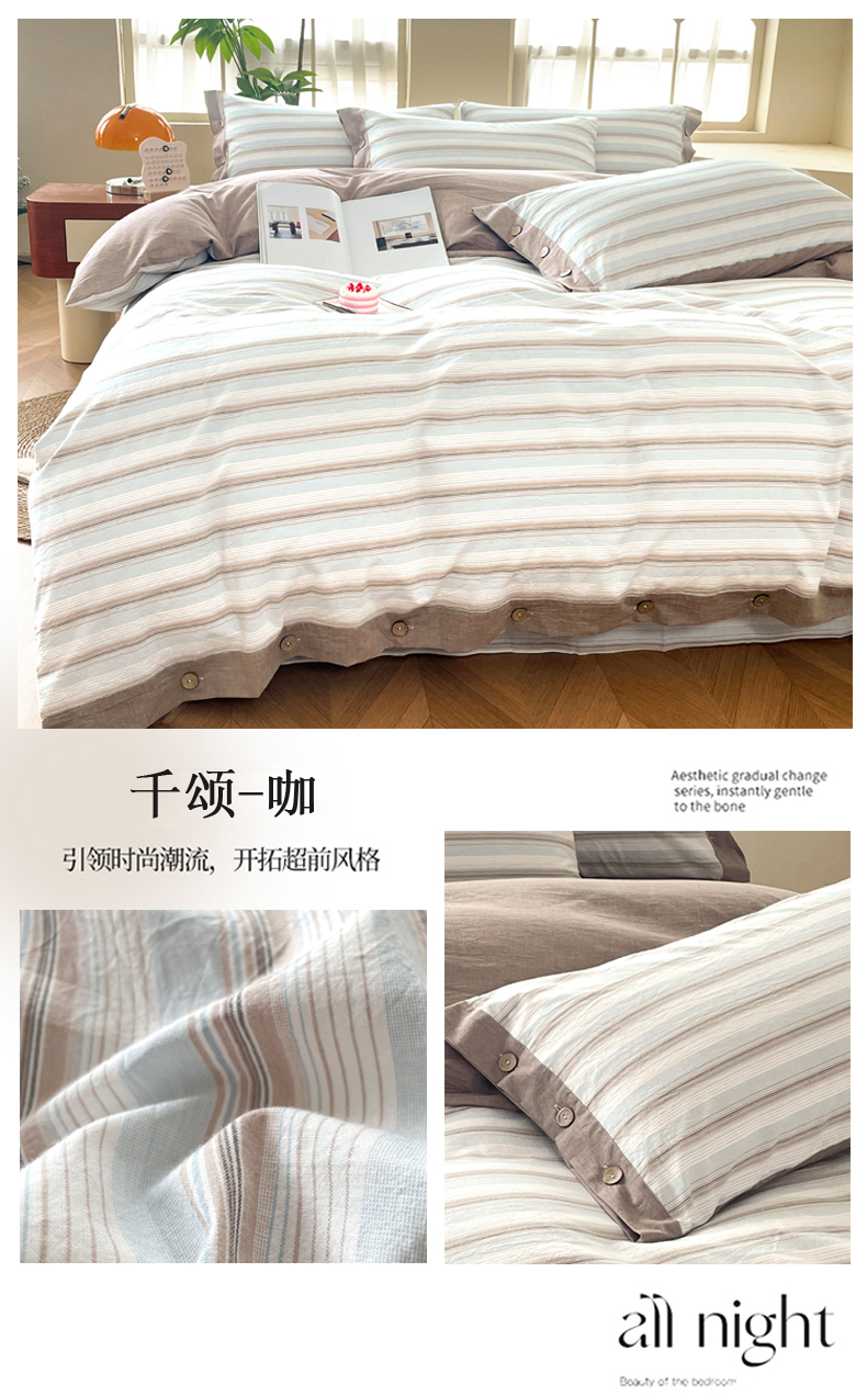 琉宿家纺 2025新款纽扣款水洗棉四件套 千颂咖,千颂咖